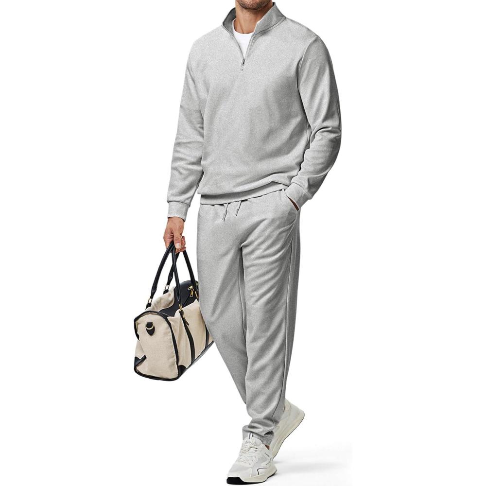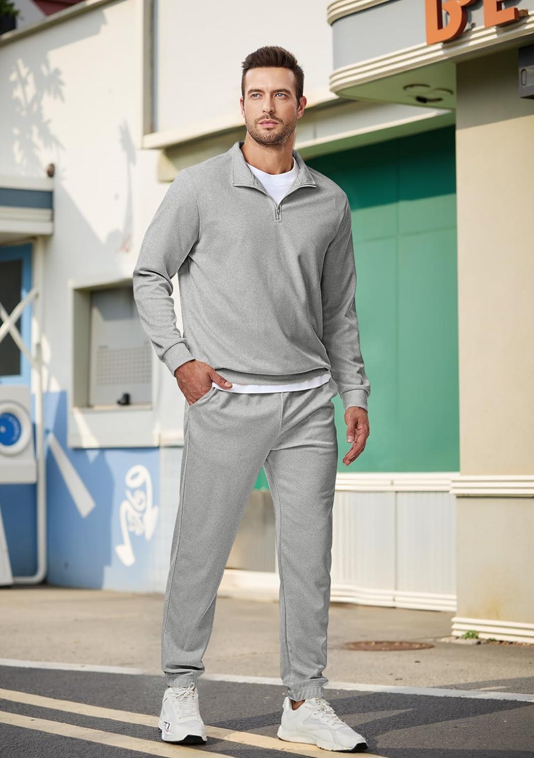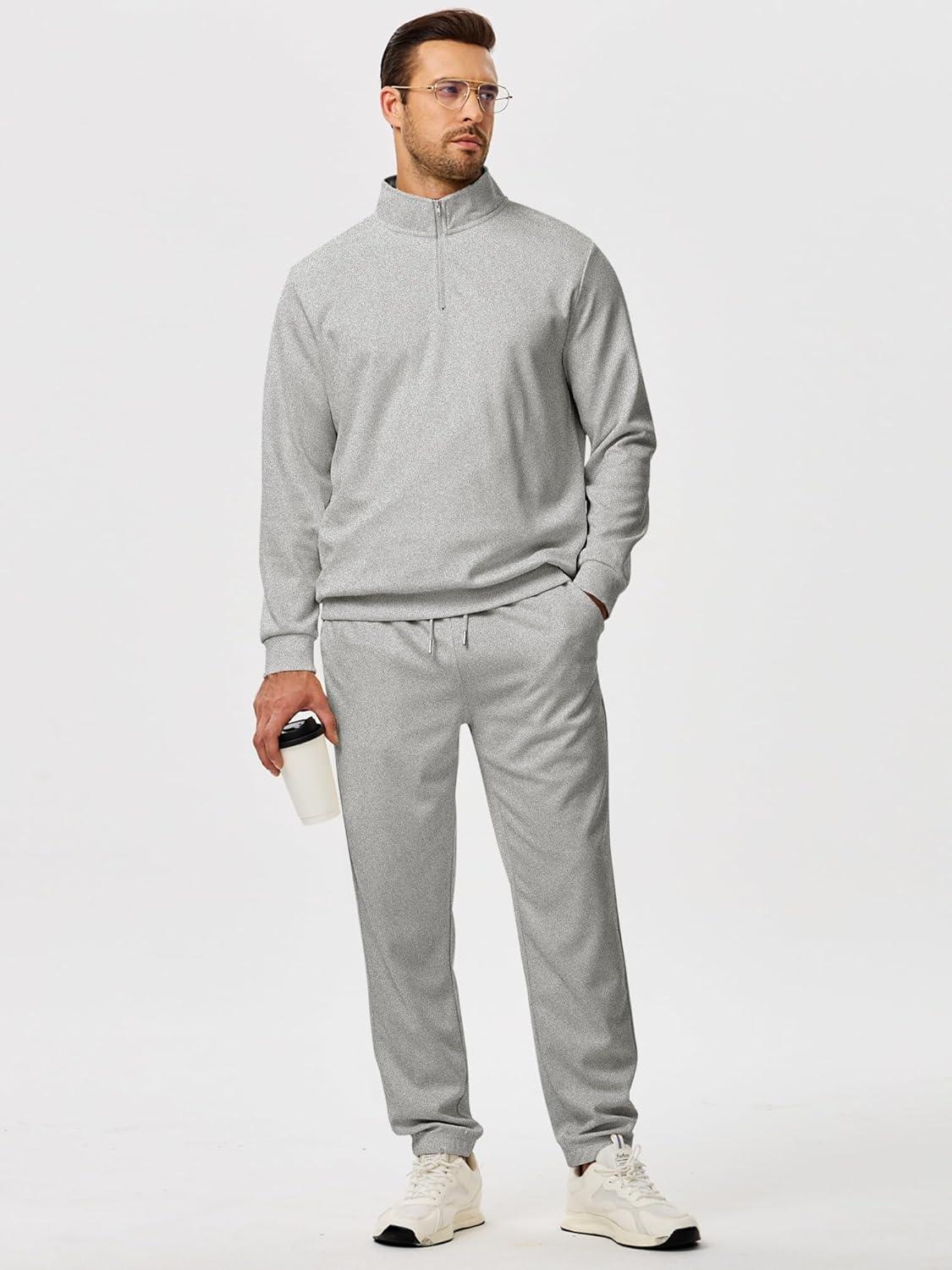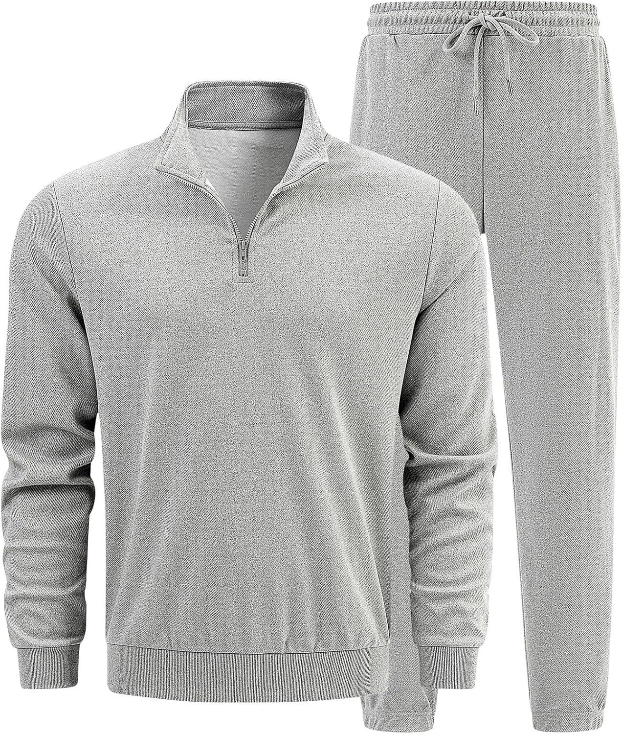 JMIERR 2025 Men Fall Tracksuit 2 Piece Set Old Money Polo Quarter Zip Twill Sweatsuits Jogging Sweatpants Loungewear(A Grey 1)