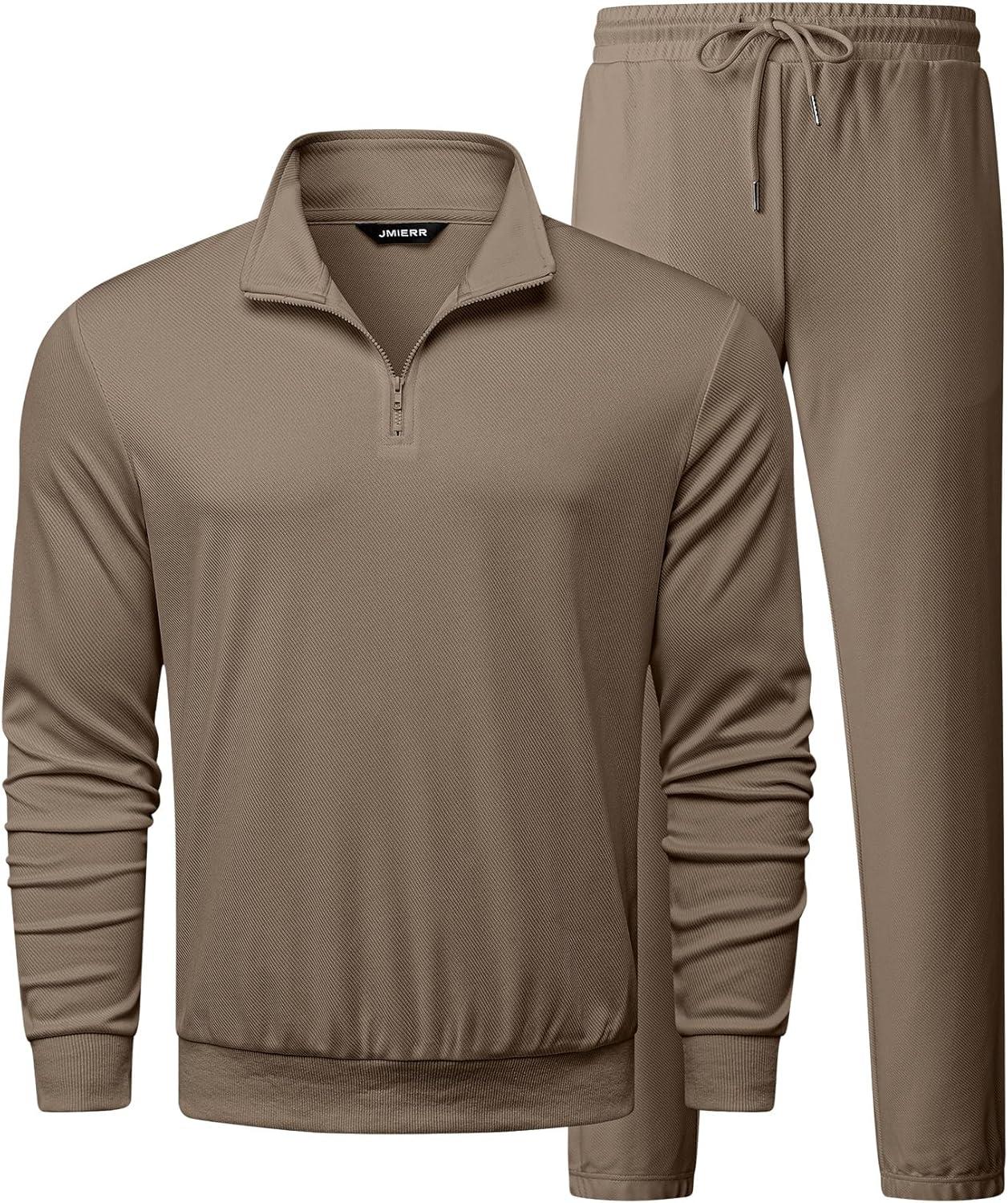 JMIERR 2025 Men Fall Tracksuit 2 Piece Set Old Money Polo Quarter Zip Twill Sweatsuits Jogging Sweatpants Loungewear(Brown)