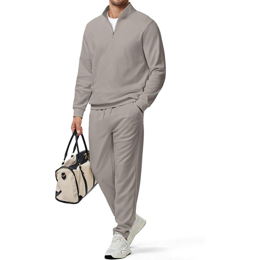 JMIERR 2025 Men Fall Tracksuit 2 Piece Set Old Money Polo Quarter Zip Twill Sweatsuits Jogging Sweatpants Loungewear(D Pure Gray)