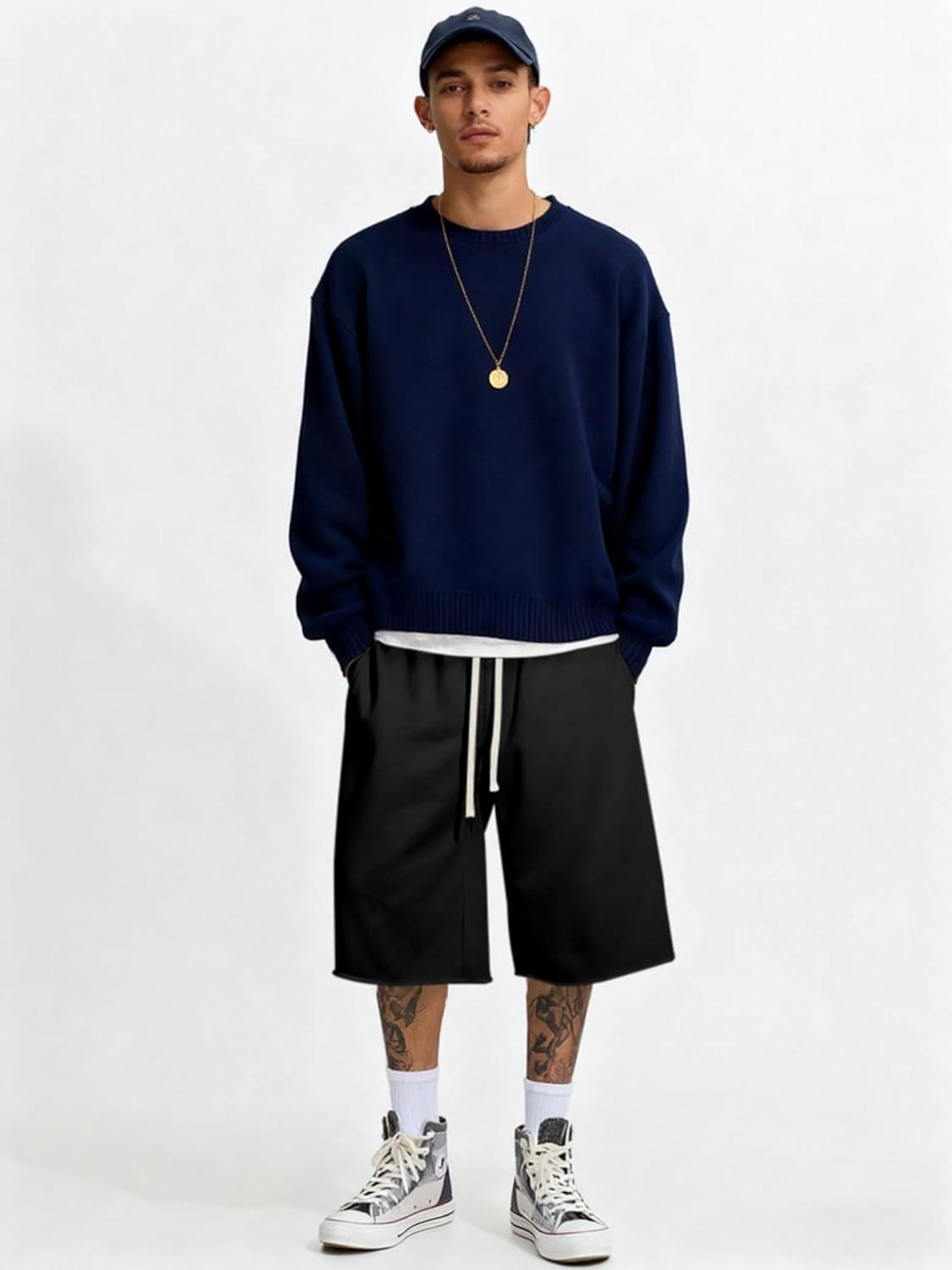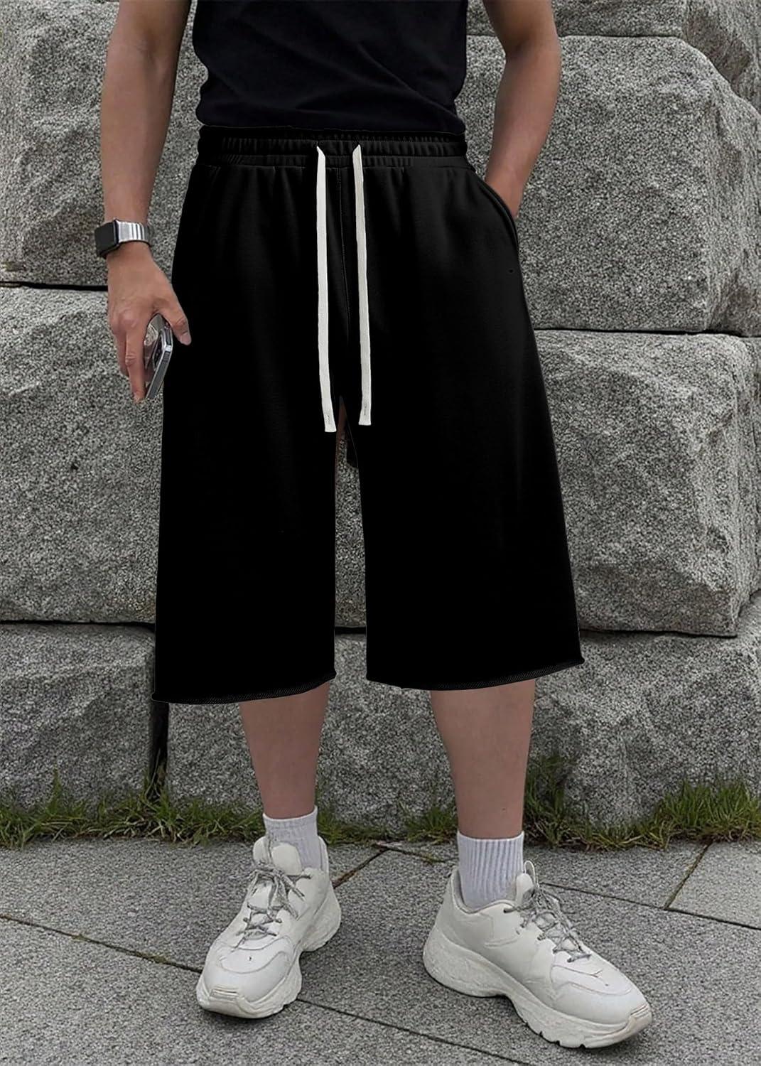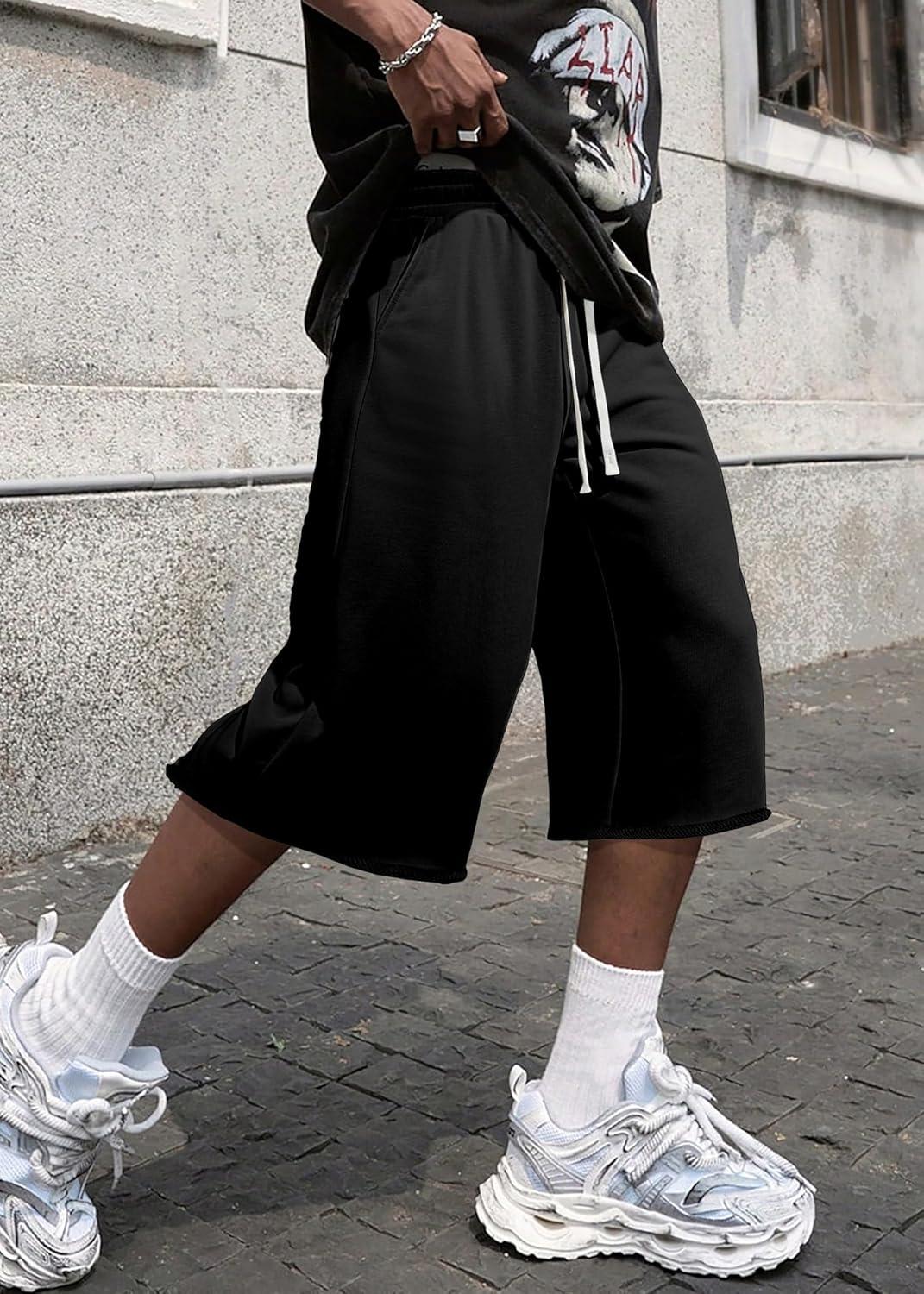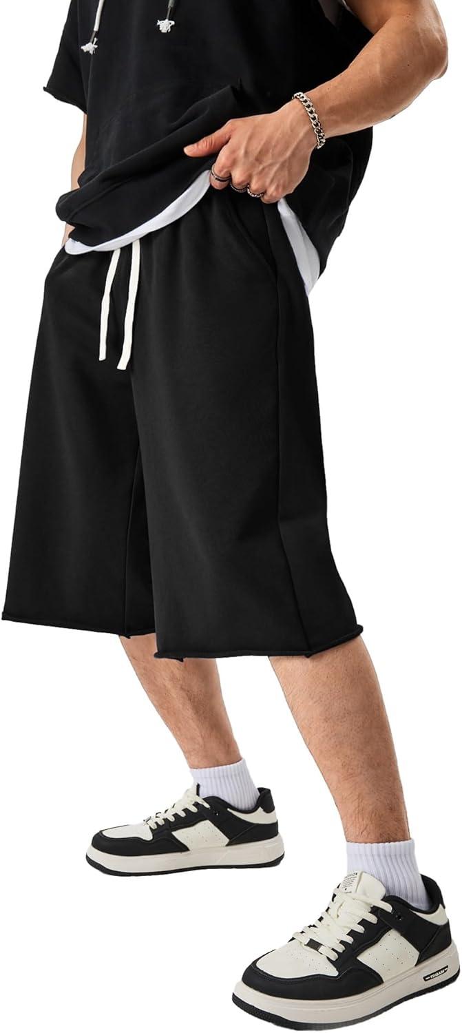 Be the first to review “JMIERR 2026 Men’s Baggy Sweat Shorts Under Knee Shorts Casual Raw Hem Drawstring Waist Y2K Shorts Loose Fit Gym Shorts(Black)” Cancel reply