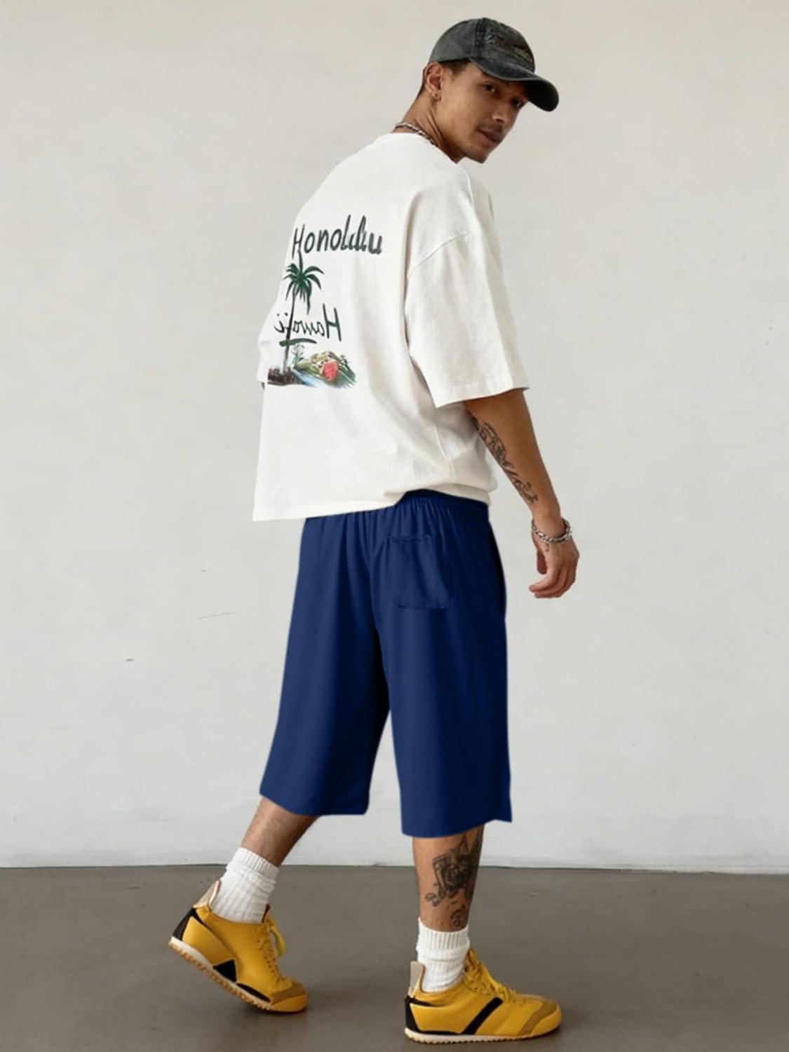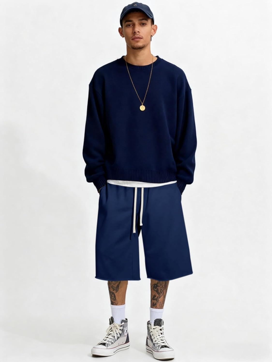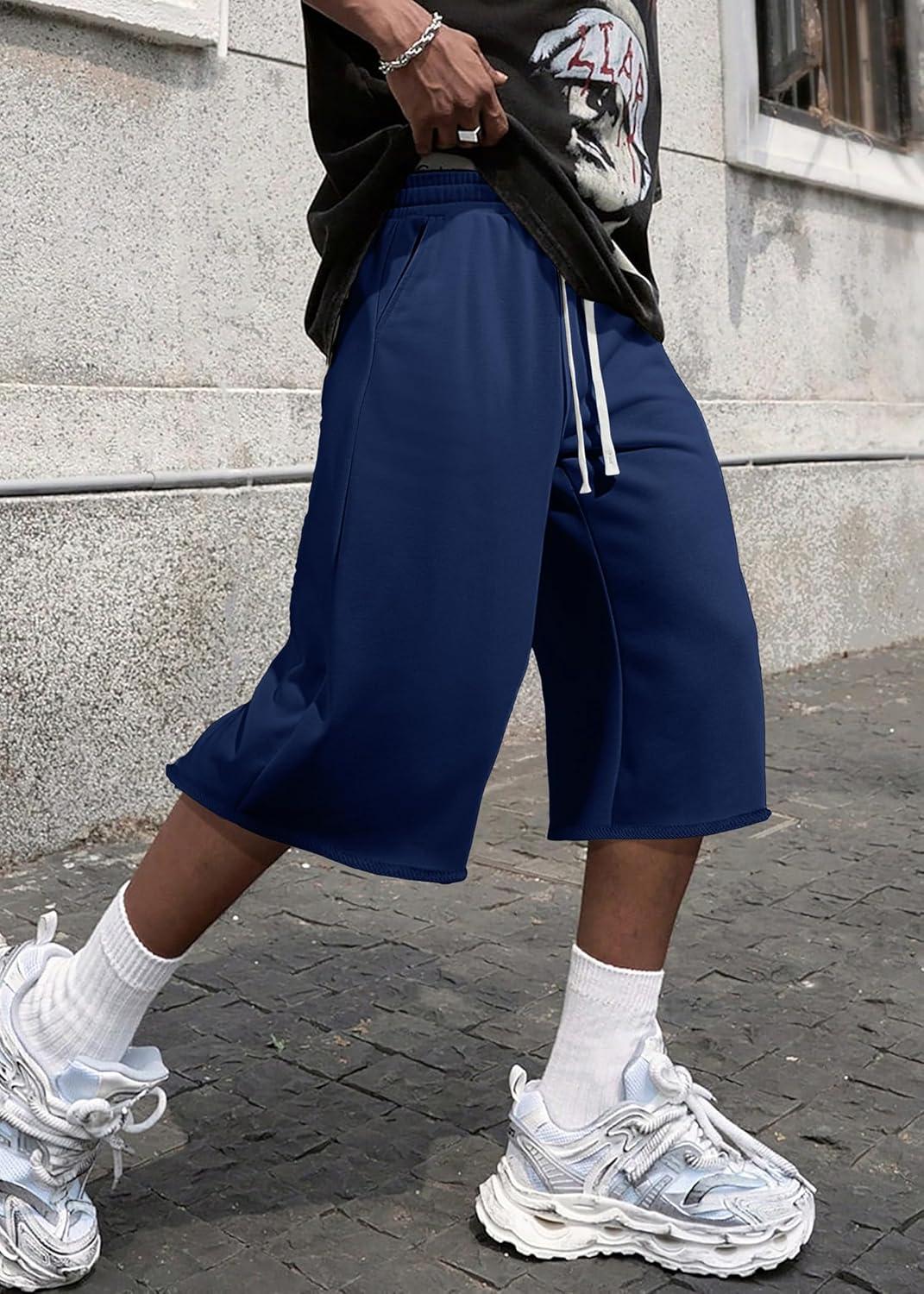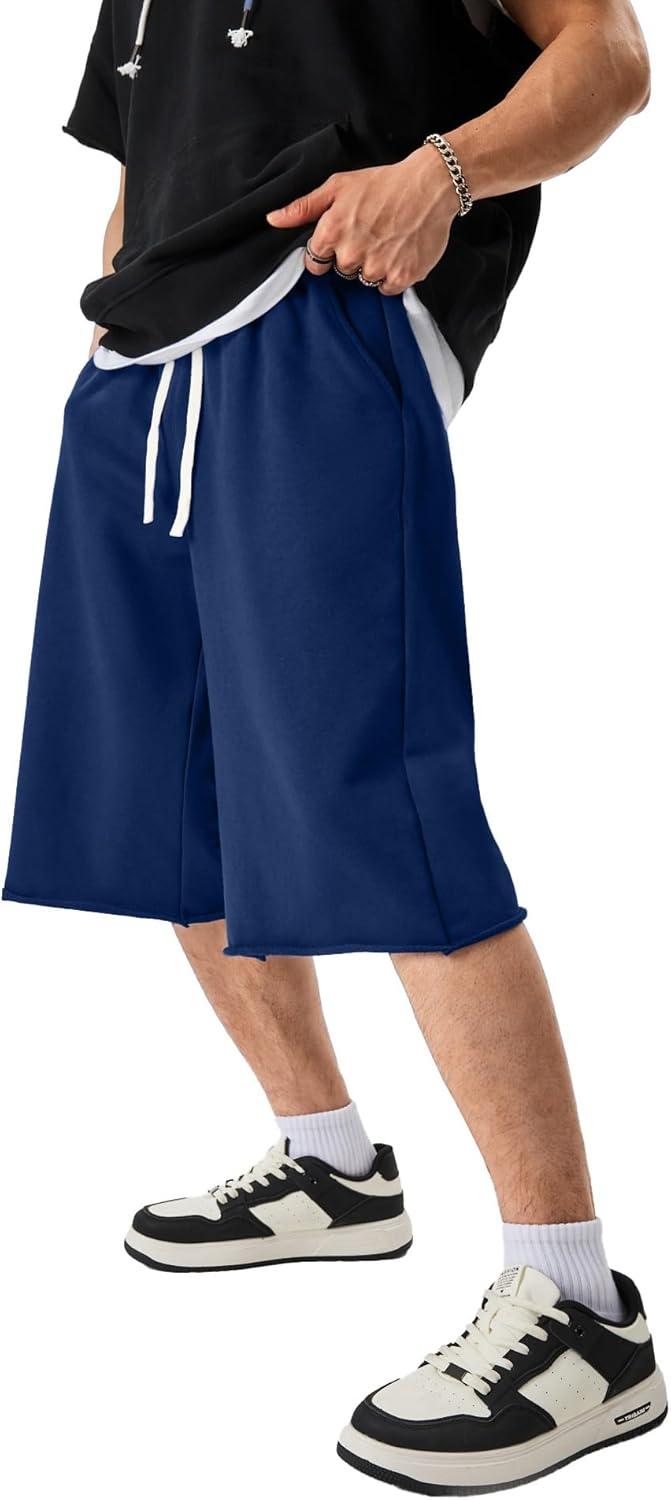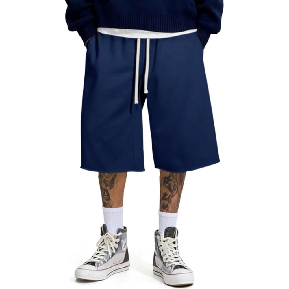 Be the first to review “JMIERR 2026 Men’s Baggy Sweat Shorts Under Knee Shorts Casual Raw Hem Drawstring Waist Y2K Shorts Loose Fit Gym Shorts(Blue)” Cancel reply