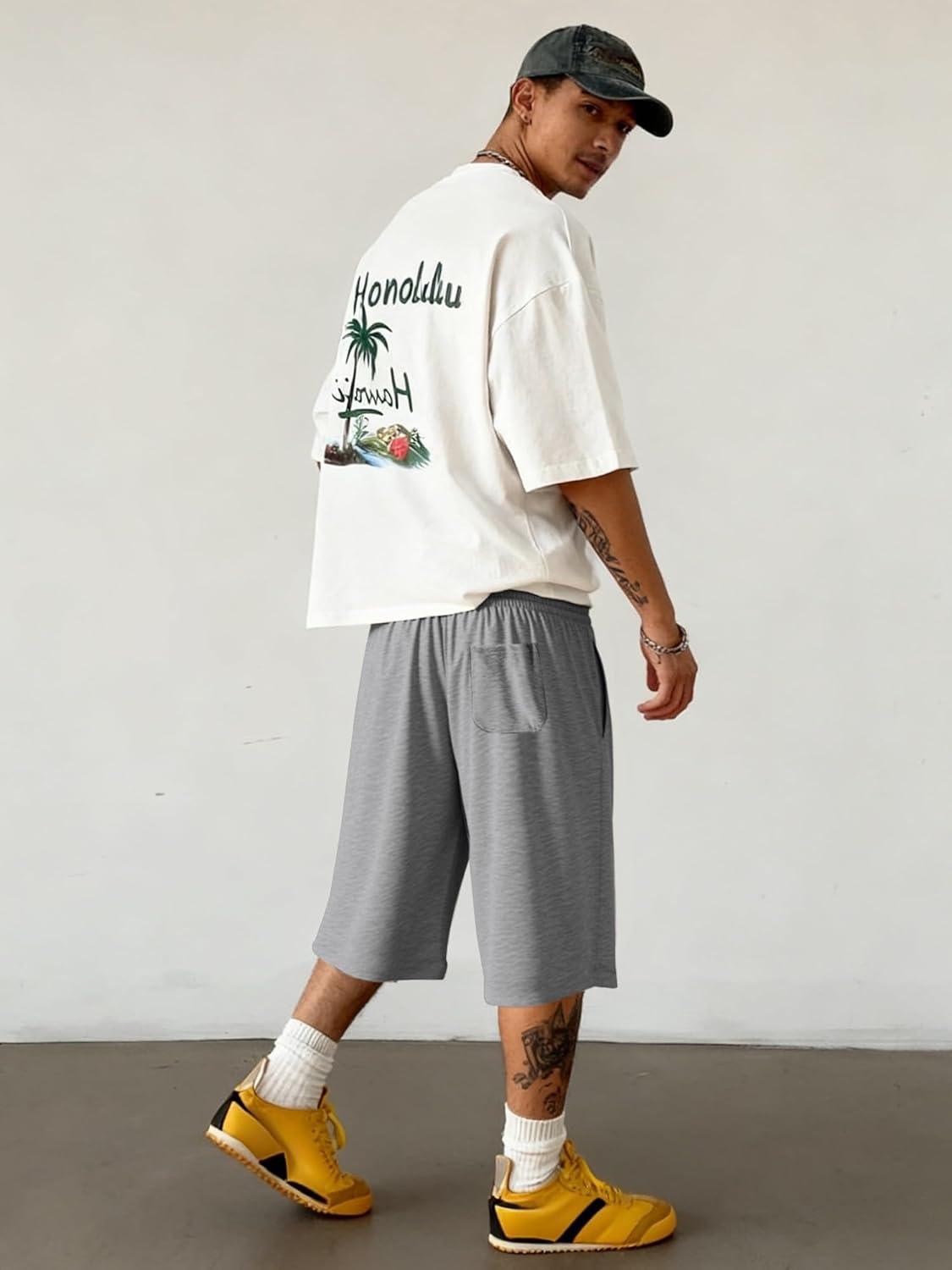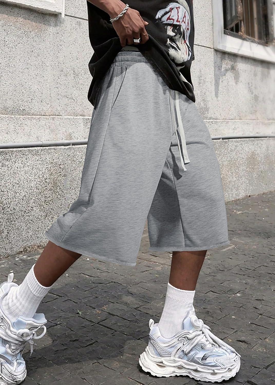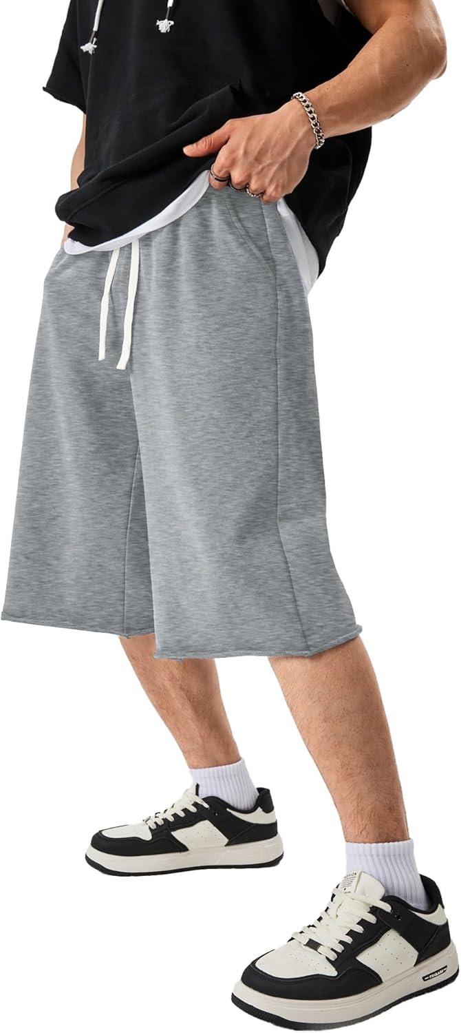 Be the first to review “JMIERR 2026 Men’s Baggy Sweat Shorts Under Knee Shorts Casual Raw Hem Drawstring Waist Y2K Shorts Loose Fit Gym Shorts(Grey)” Cancel reply
