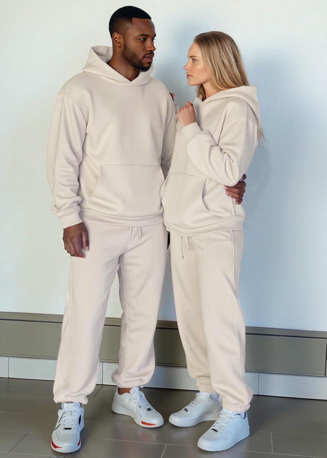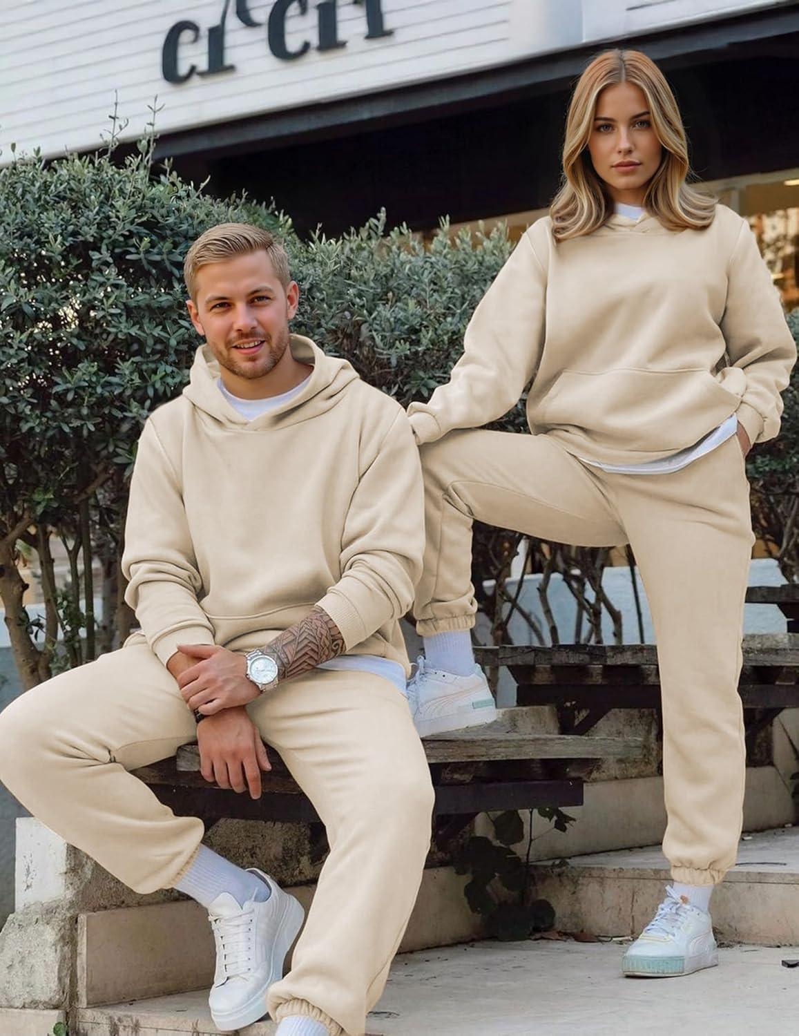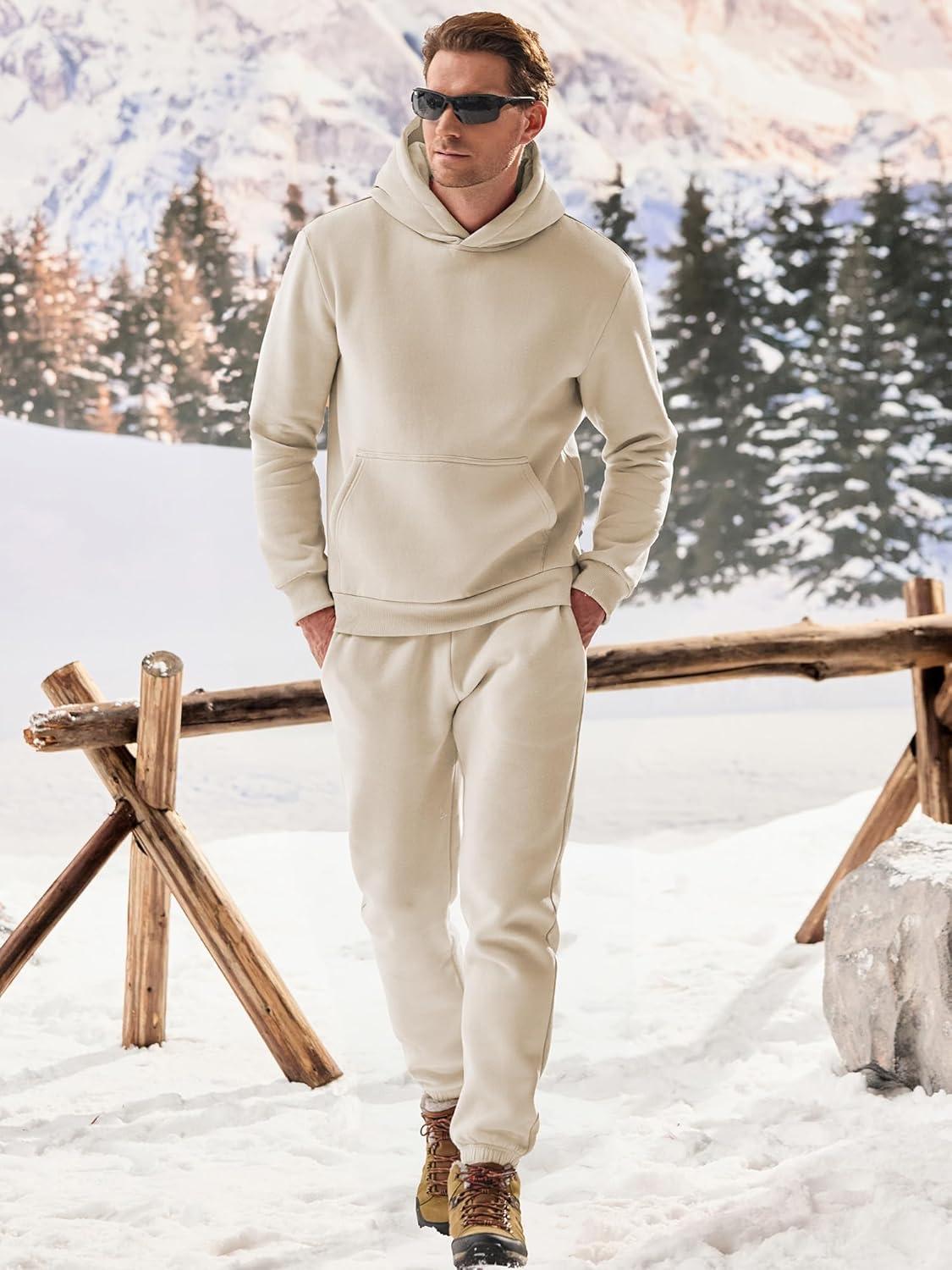 JMIERR Men’s 2 Piece Outfits Hoodie Sweatshirt Tracksuit & Joggers Sweatpants Sweatsuit Set(Cream)