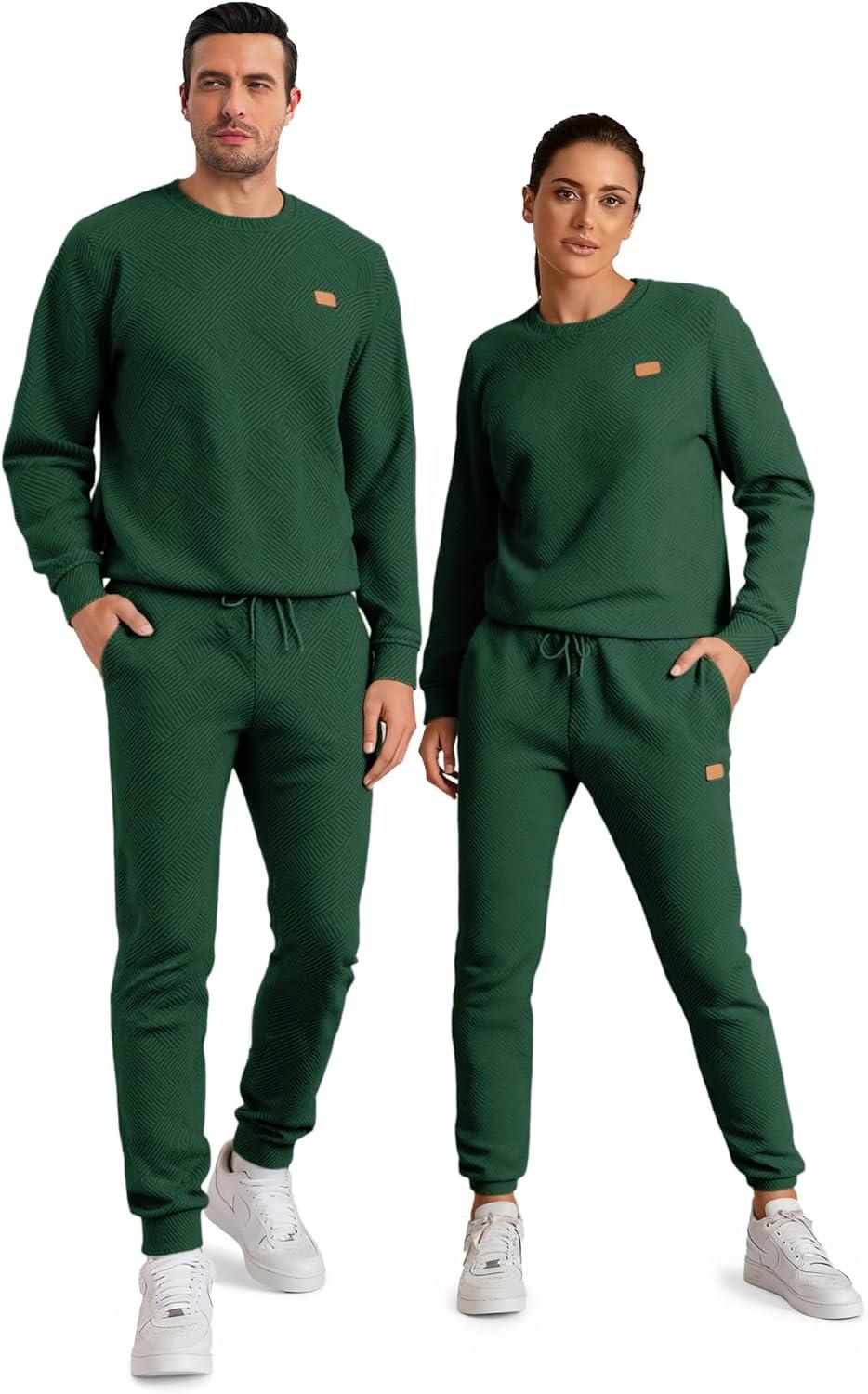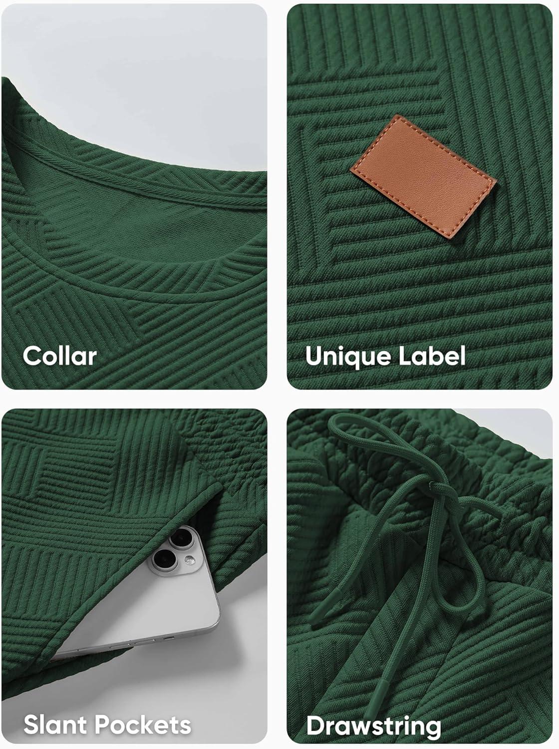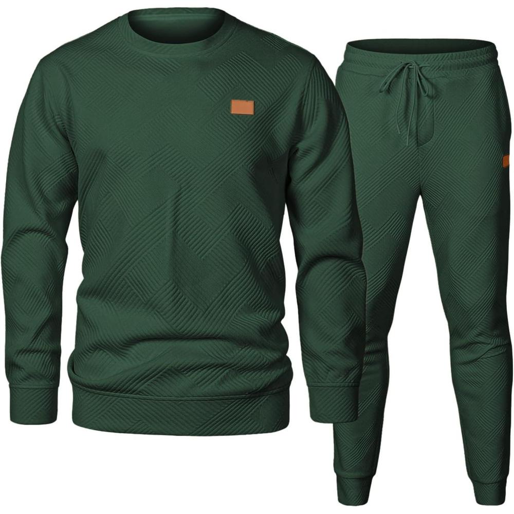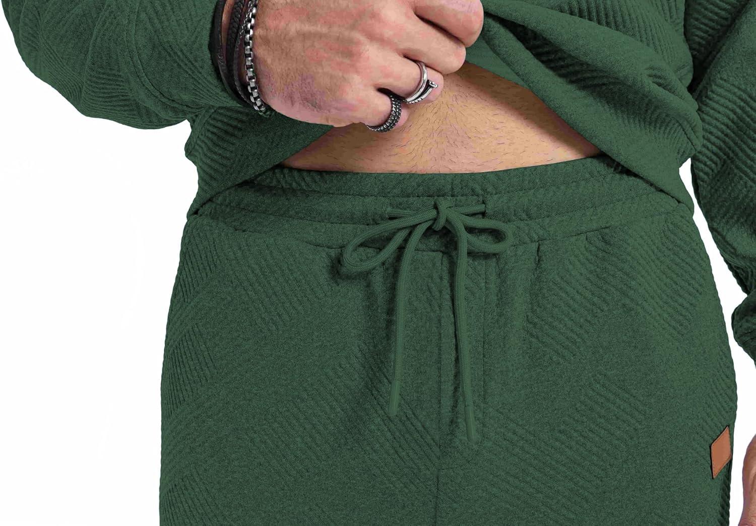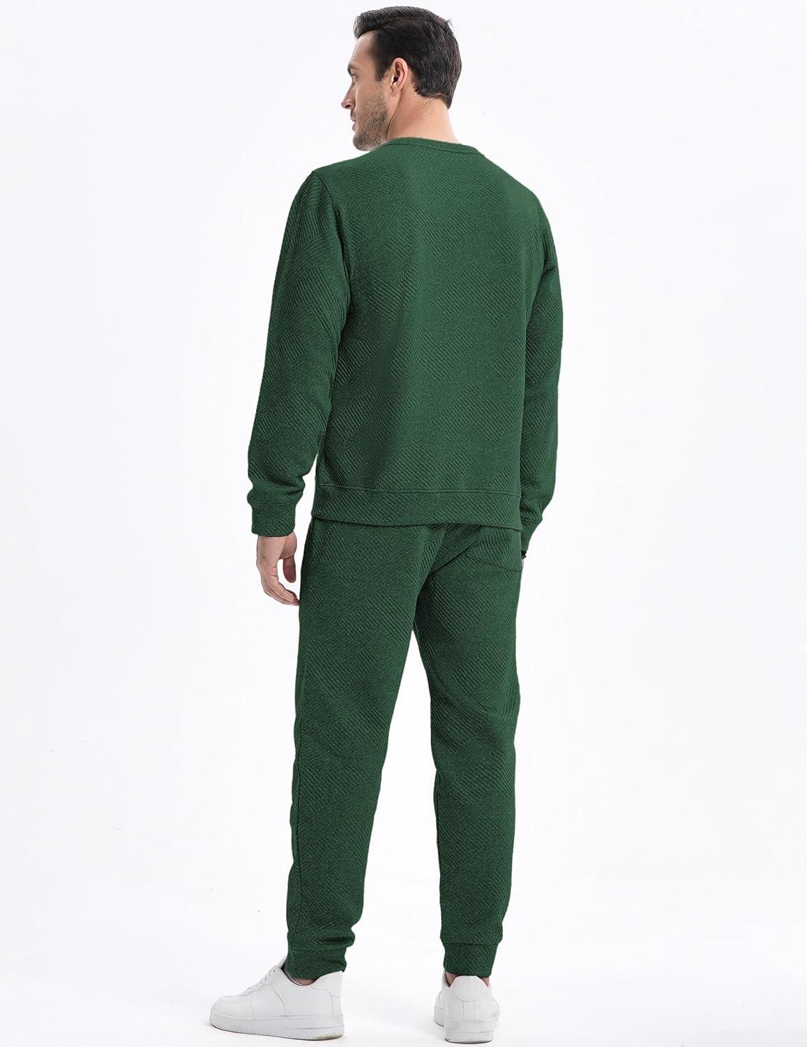 JMIERR Men’s 2 Piece Outfits Knit Jacquard Pullover Sweatshirt Tracksuit & Joggers Sweatpants Sweatsuit Sets with Pockets(Dark Green)