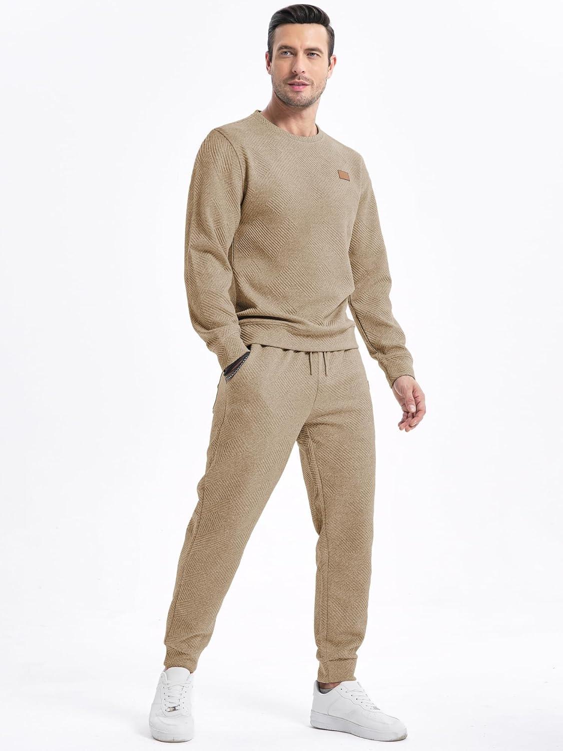 JMIERR Men’s 2 Piece Outfits Knit Jacquard Pullover Sweatshirt Tracksuit & Joggers Sweatpants Sweatsuit Sets with Pockets(Khaki)