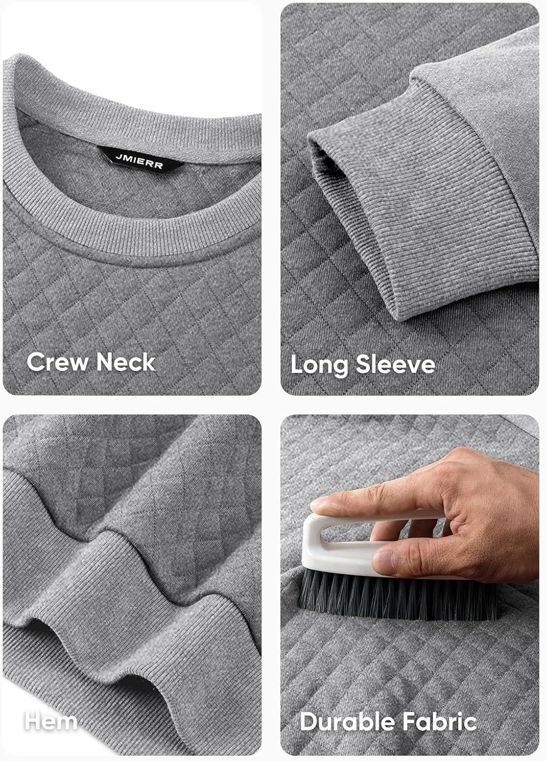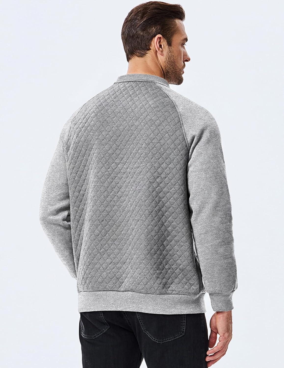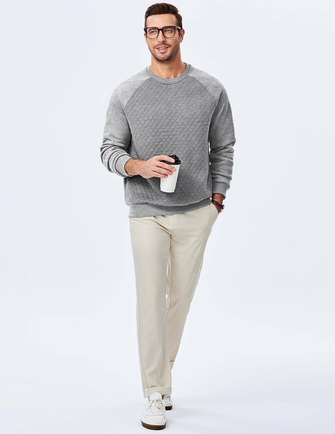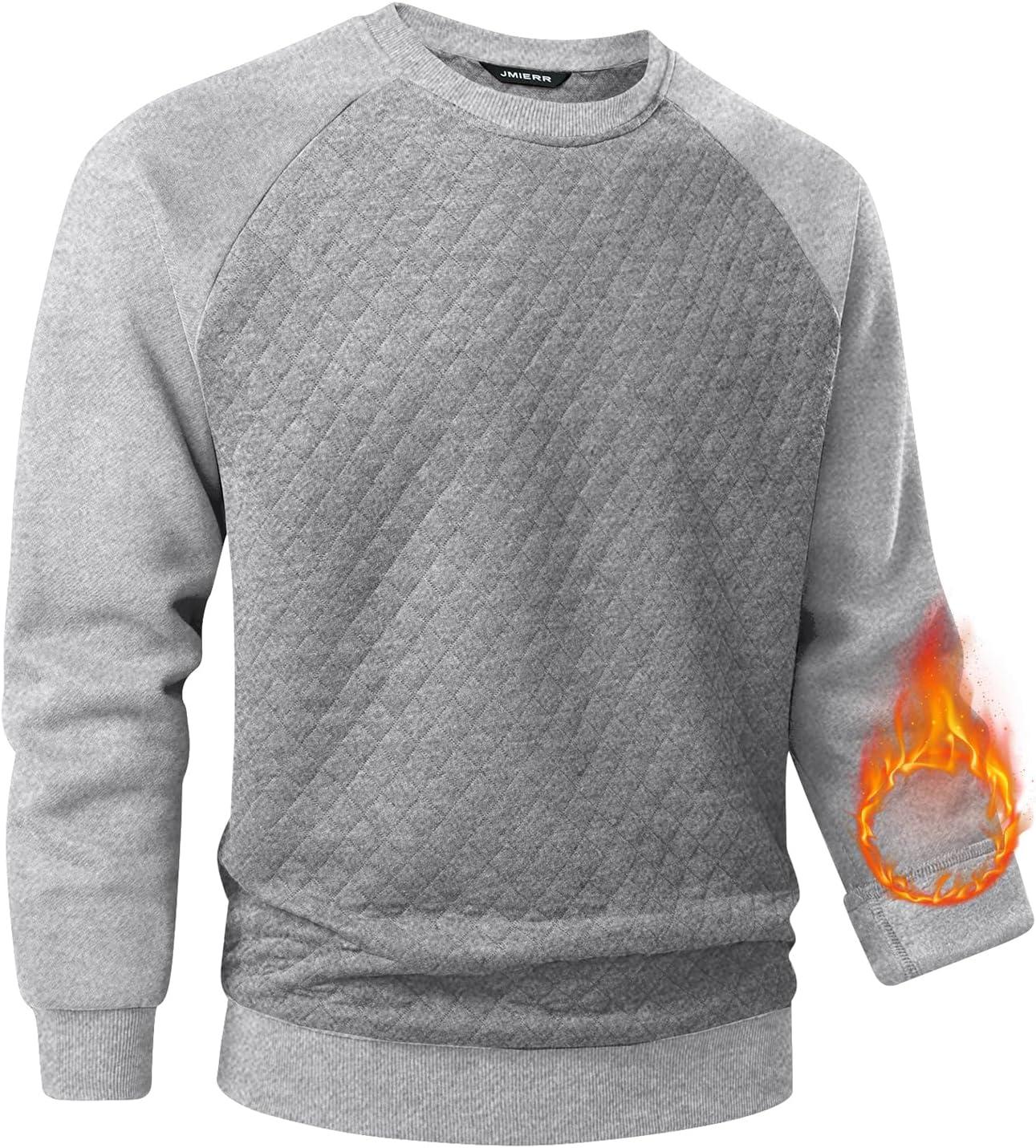 JMIERR Men’s 2025 Casual Crewneck Dress Sweatshirts Pullover Fall Fleece Diamond Texture Warm Winter Comfy Long Sleeve(A Grey)