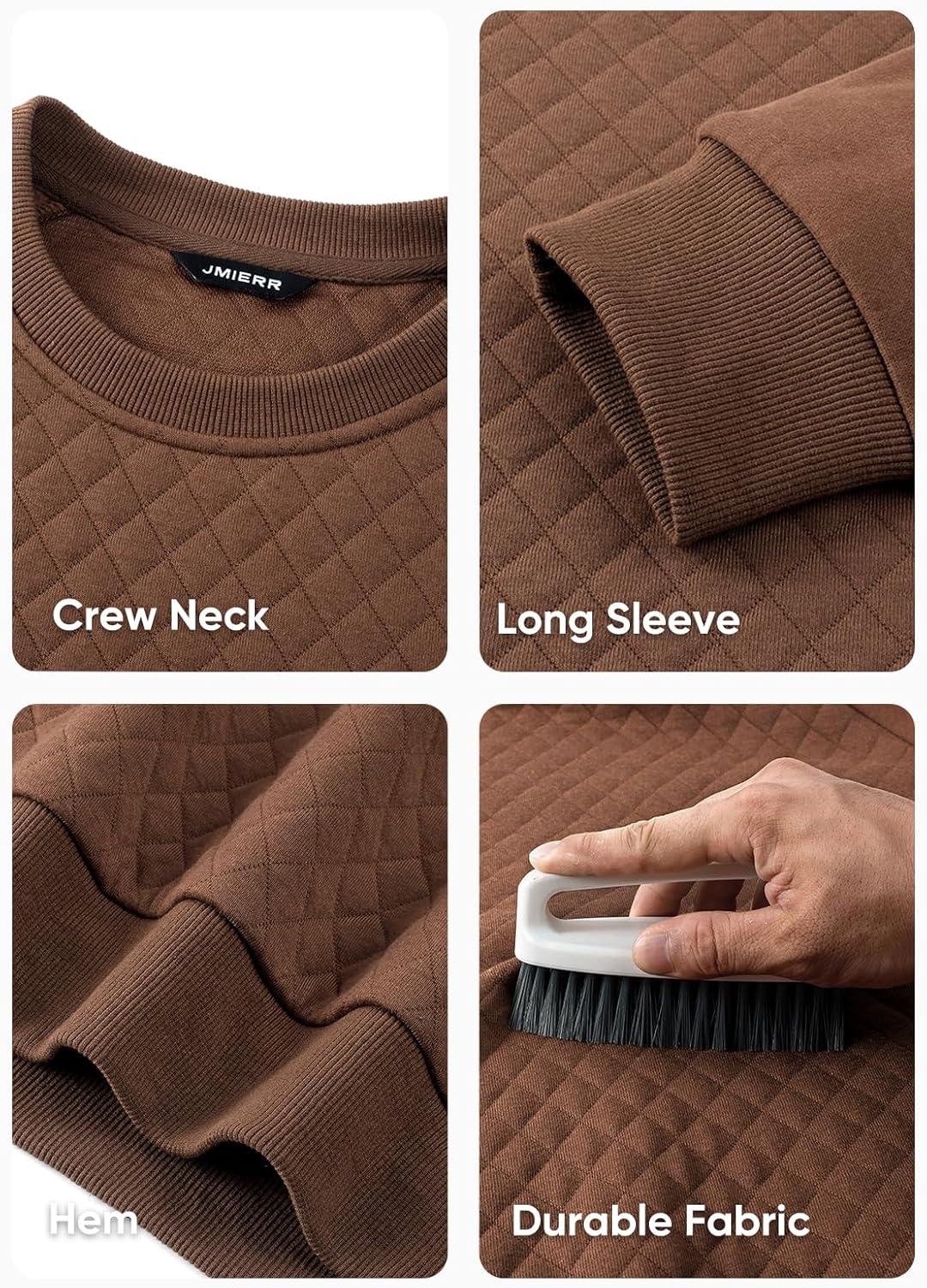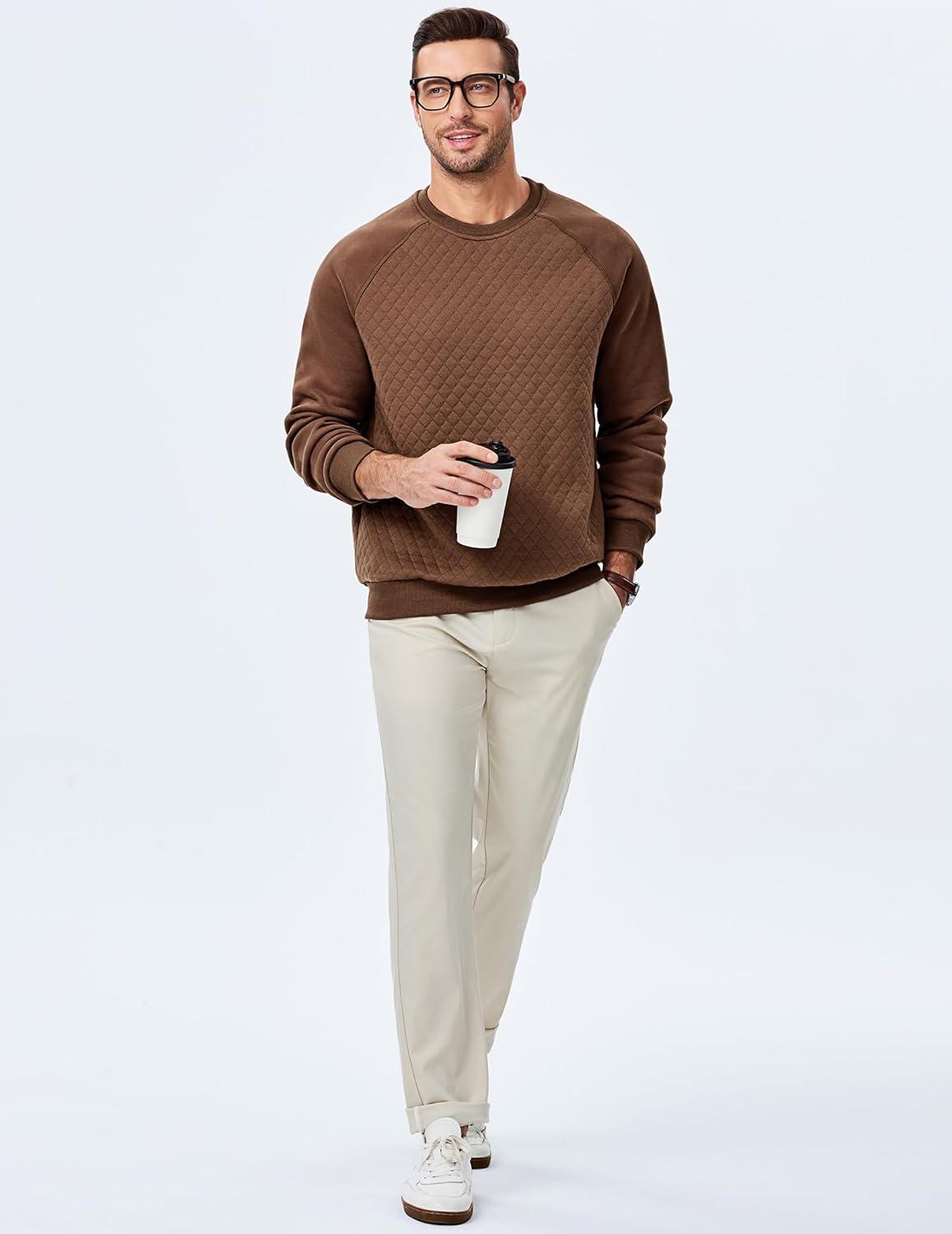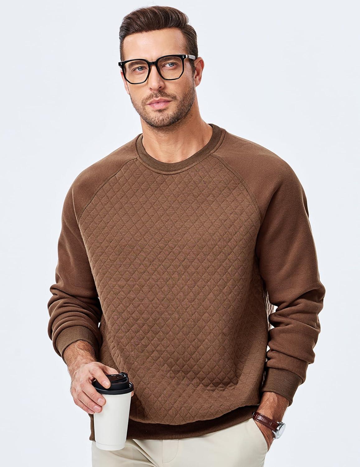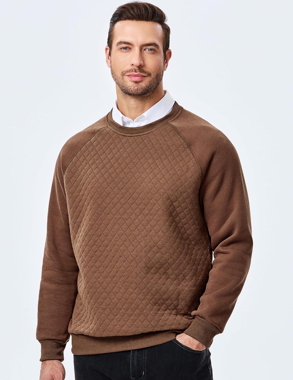 JMIERR Men’s 2025 Casual Crewneck Dress Sweatshirts Pullover Fall Fleece Diamond Texture Warm Winter Comfy Long Sleeve(Brown)
