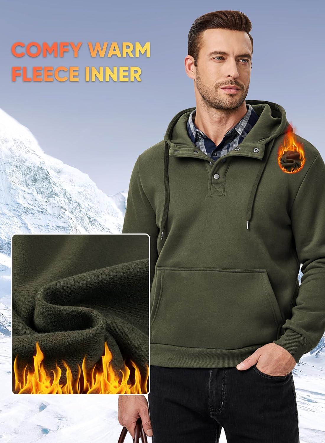 JMIERR Mens 2025 Casual Fahsion Fall Hoodie Pullover Quarter Drawstring Fleece Winter Button Hooded Shirt with Pocket(A Green)