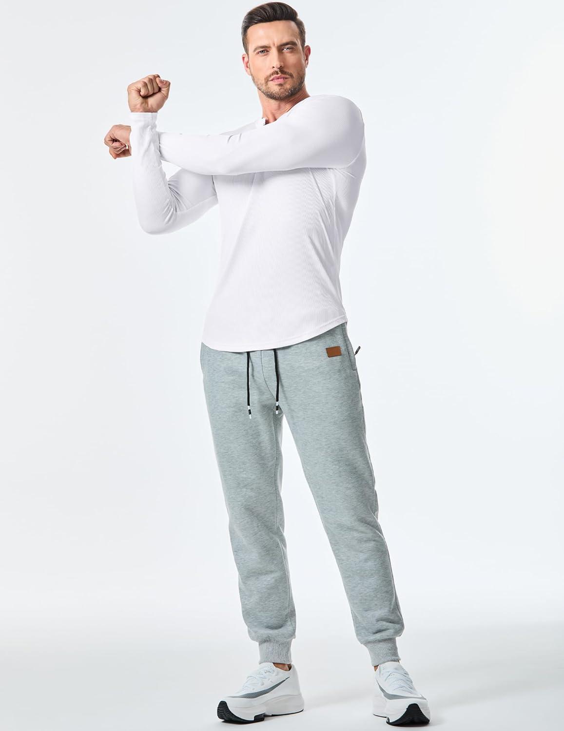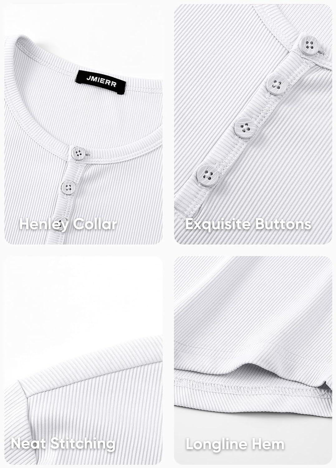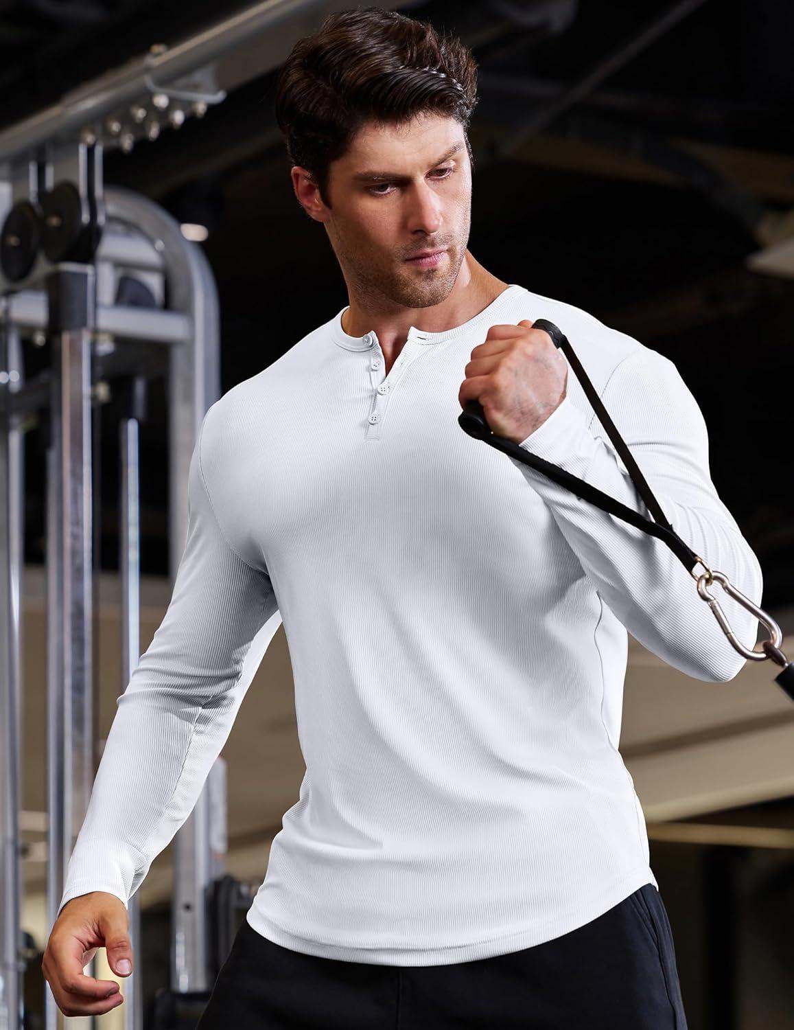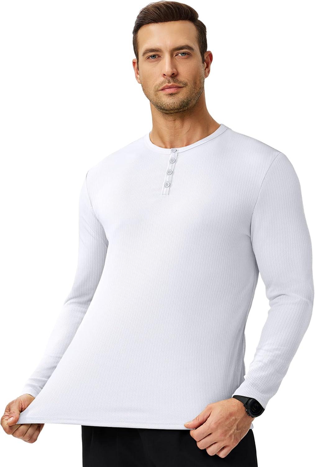 JMIERR Mens 2025 Fall Fashion Casual Henley Shirt Long Sleeve Slim Fitted Shirts Curved Hem for Athletic Gym Workout(0 White)