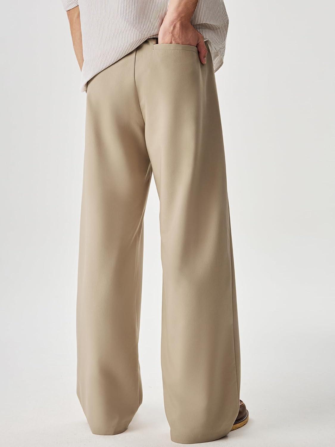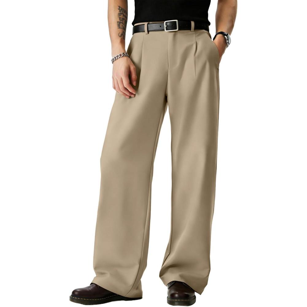JMIERR Mens Baggy Casual Dress Pants Pleated Old Money Wide Leg Pants Loose Relaxed Fit Trousers(Khaki)