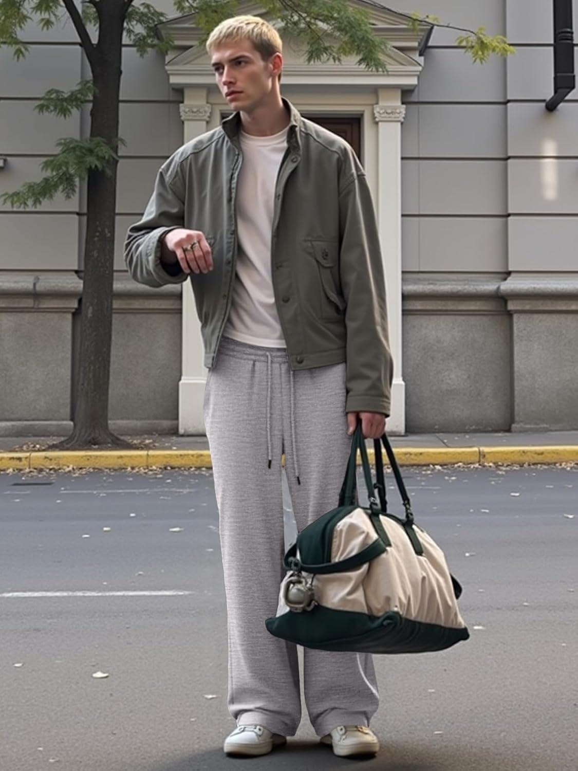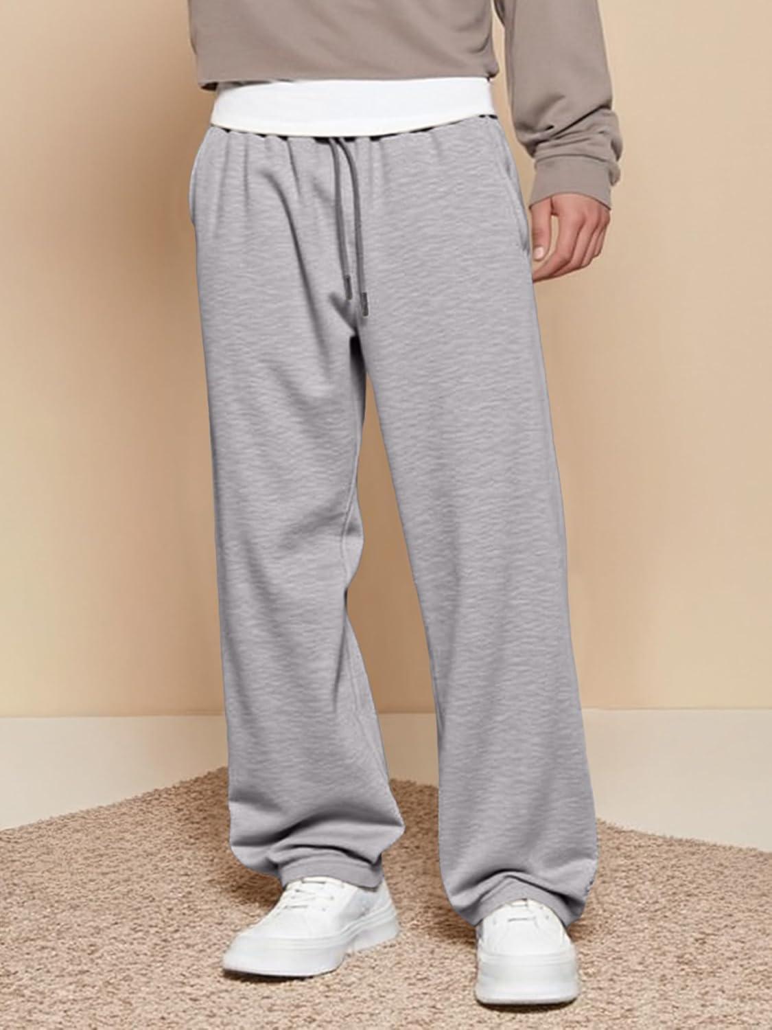 JMIERR Men’s Casual Baggy Pants Wide Leg Lounge Travel Pants with Pockets(Light Grey)