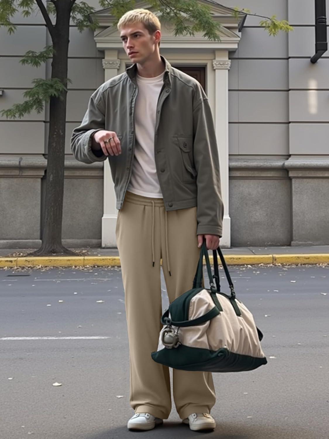 JMIERR Men’s Casual Baggy Pants Wide Leg Lounge Travel Pants with Pockets(Green Grey)