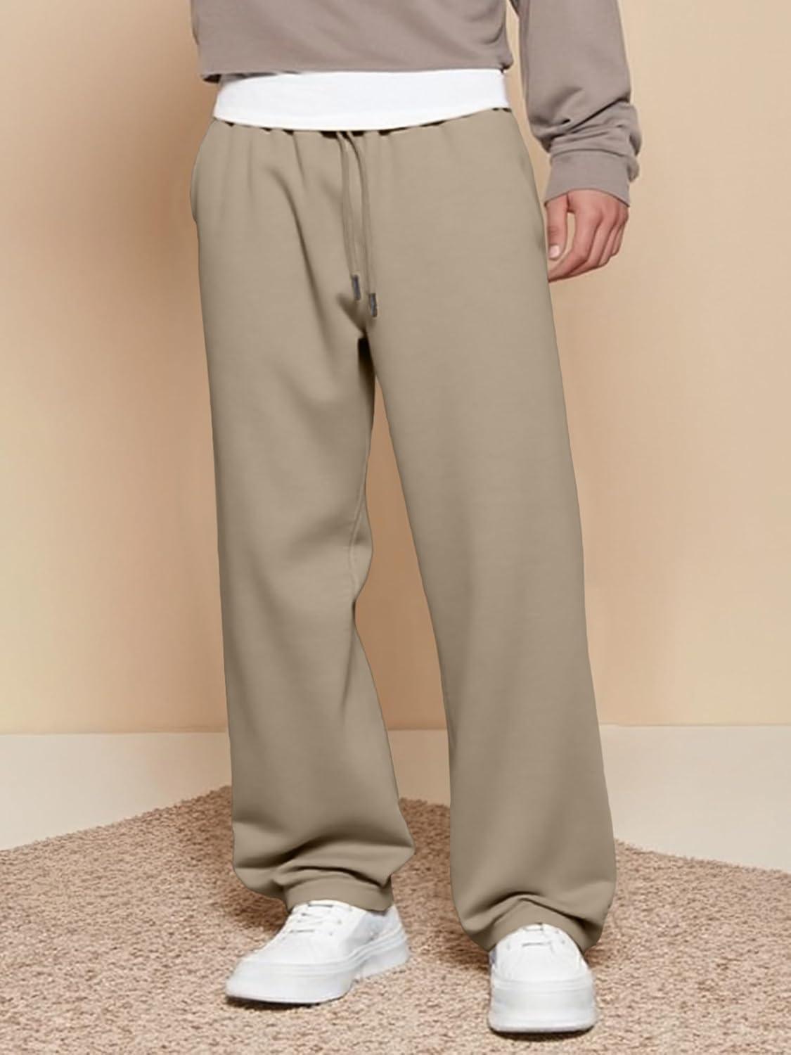 JMIERR Men’s Casual Baggy Pants Wide Leg Lounge Travel Pants with Pockets(Simply Taupe)
