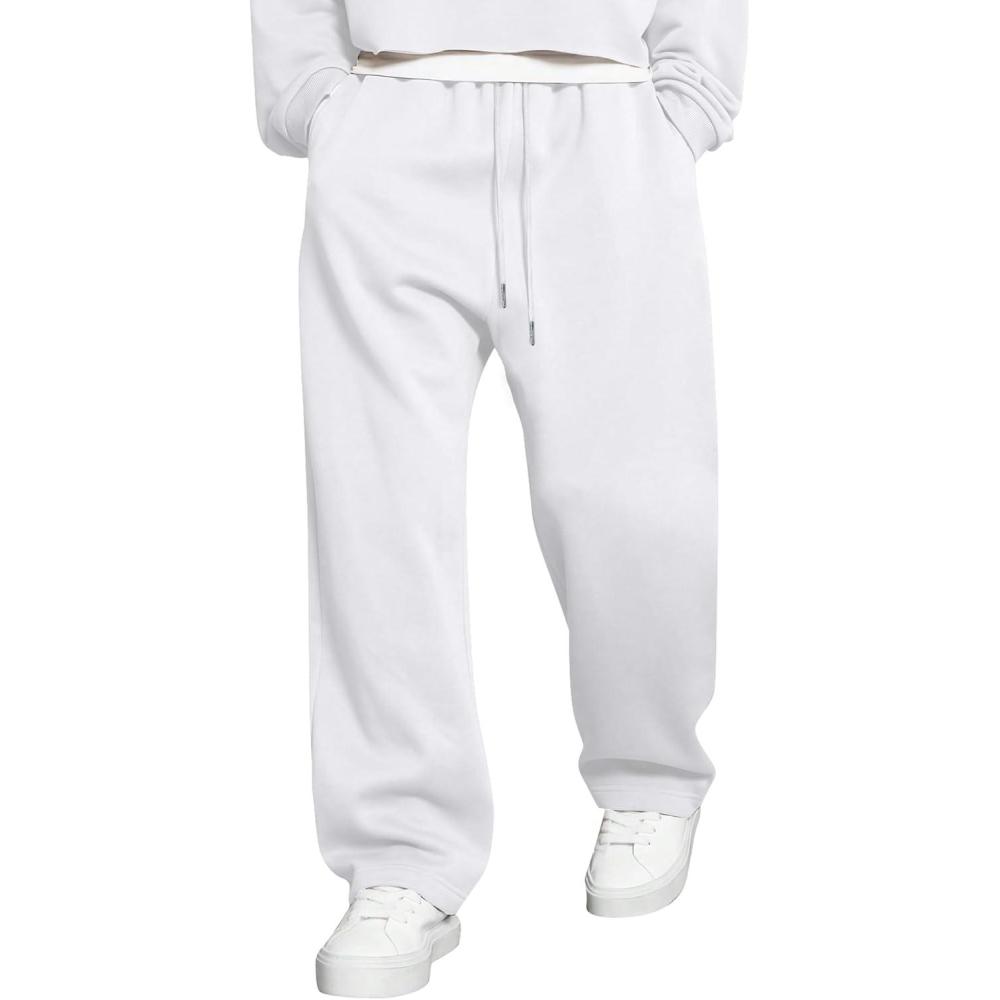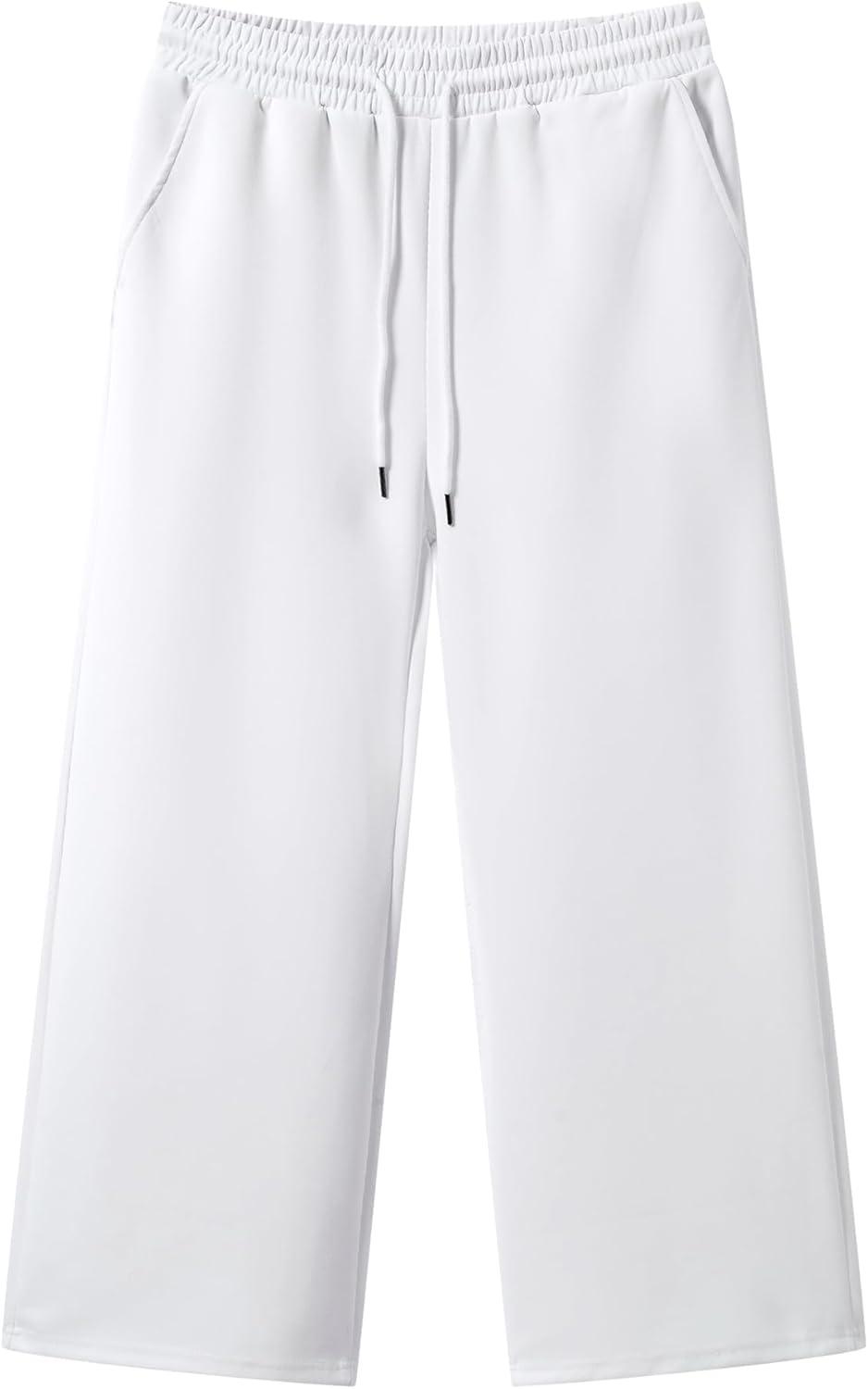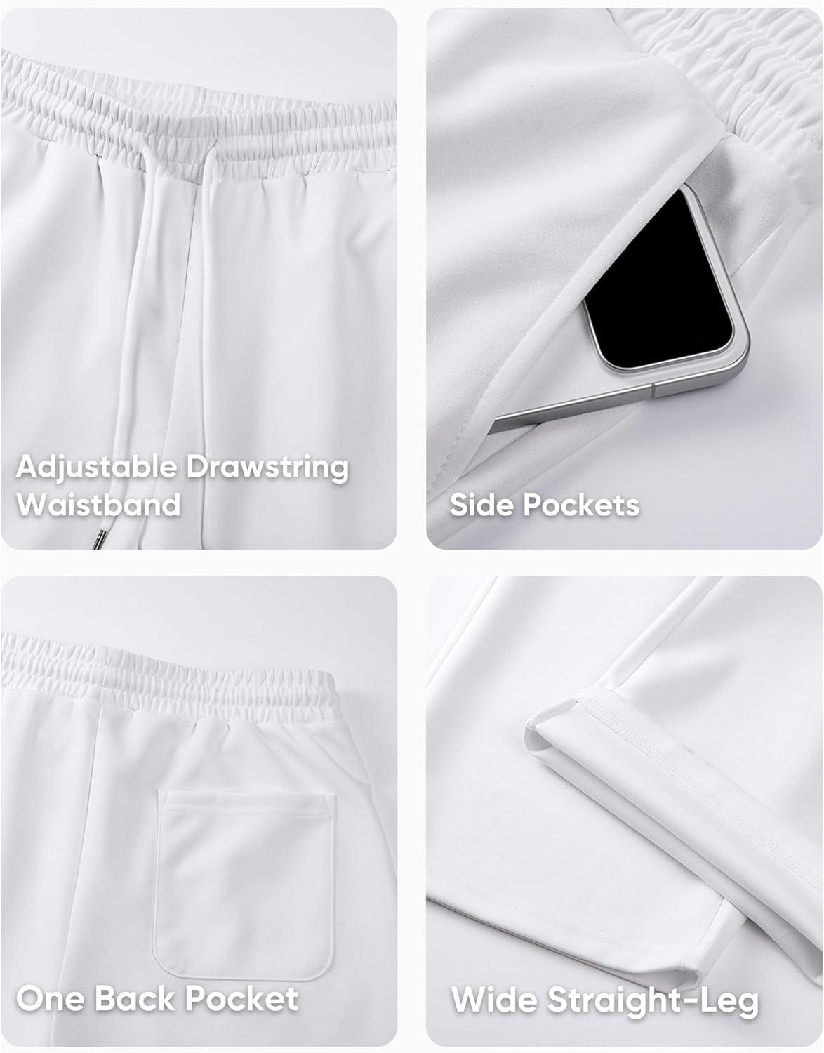 JMIERR Men’s Casual Baggy Pants Wide Leg Lounge Travel Pants with Pockets(White)