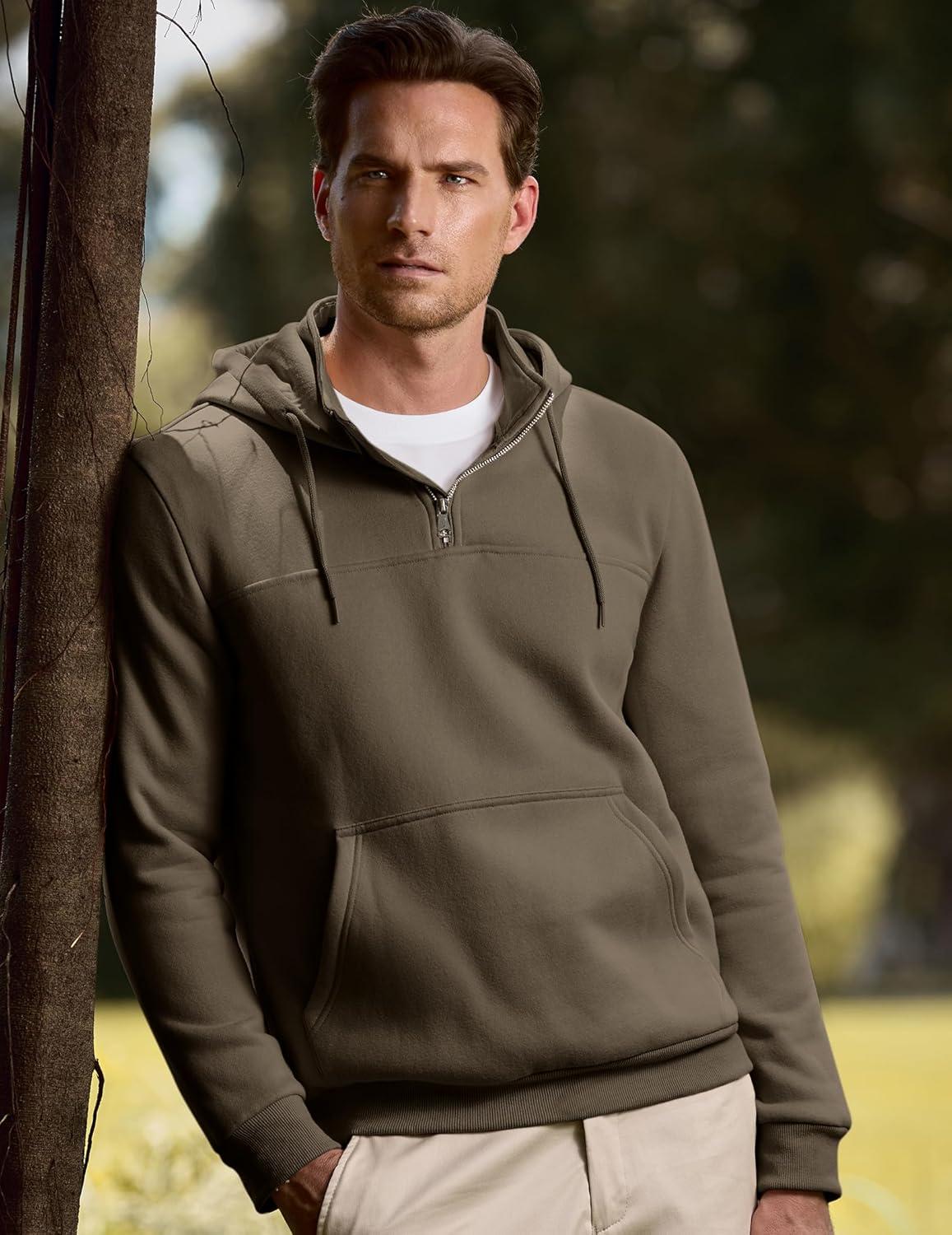 JMIERR Mens Casual Cotton Hoodies Drawstring Quarter Zip Pullover Sweatshirts(07 Dusty Olive)