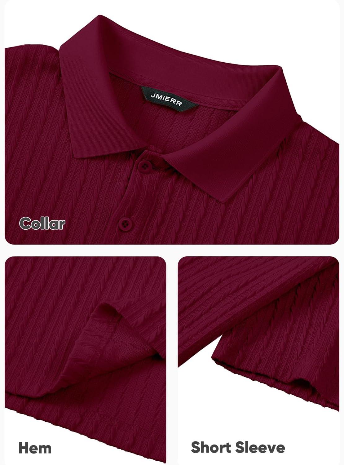 JMIERR Mens Casual Polo Shirt Summer Short Sleeve Vacation Button Beach Knit Stretchy Golf Shirts(P Red)