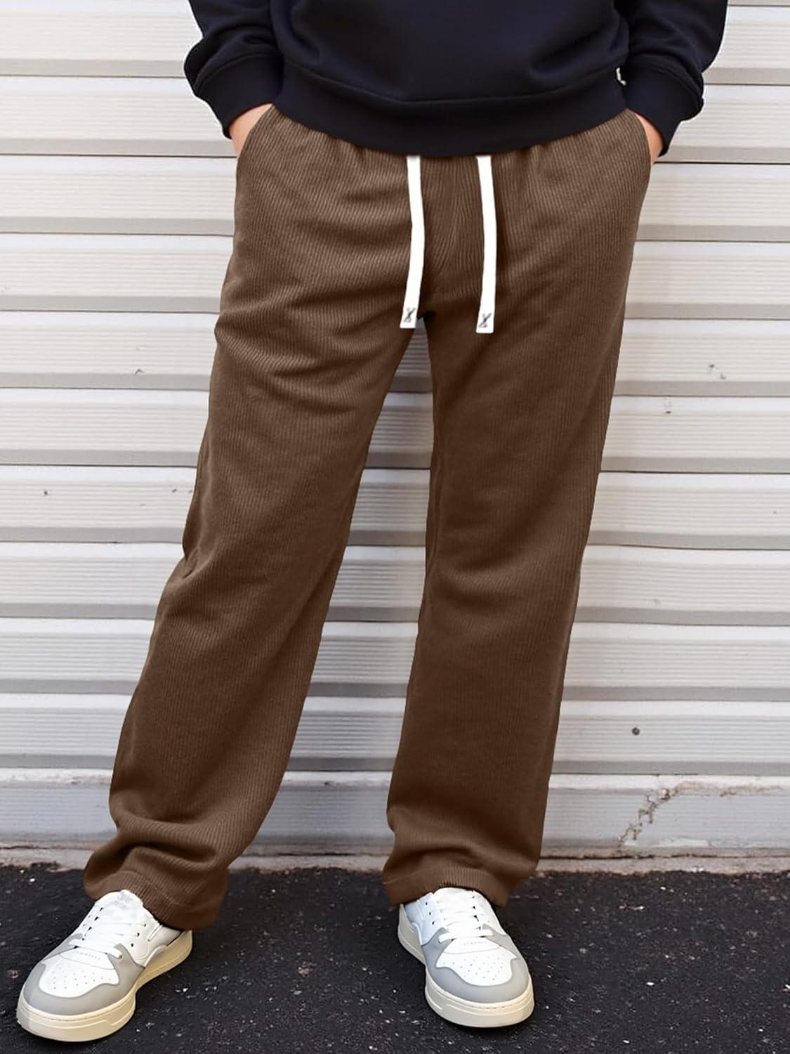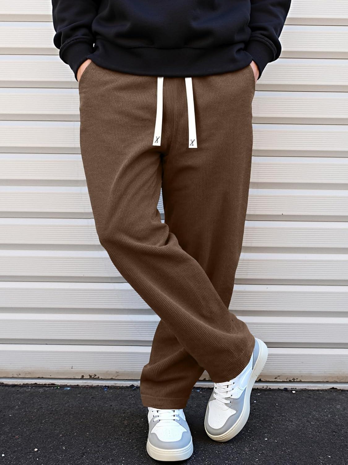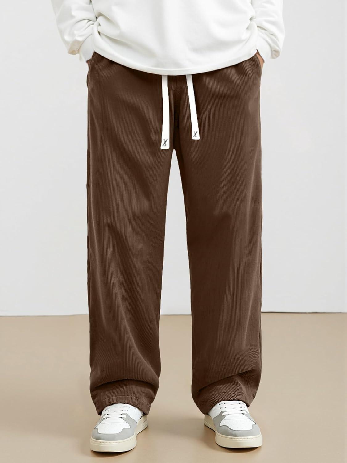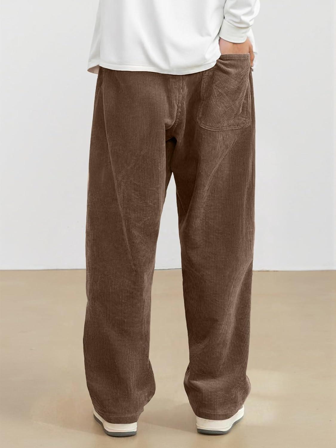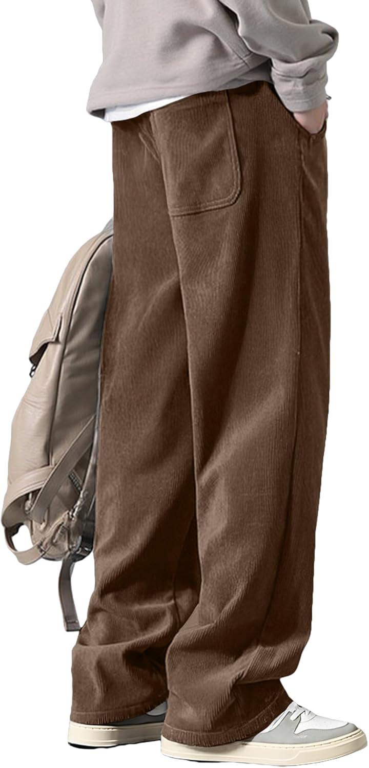 JMIERR Mens Corduroy Pants Casual Baggy Pants Wide Leg Loose Fit Joggers Sweatpants Elastic Waist Drawstring with Pockets(Brown)