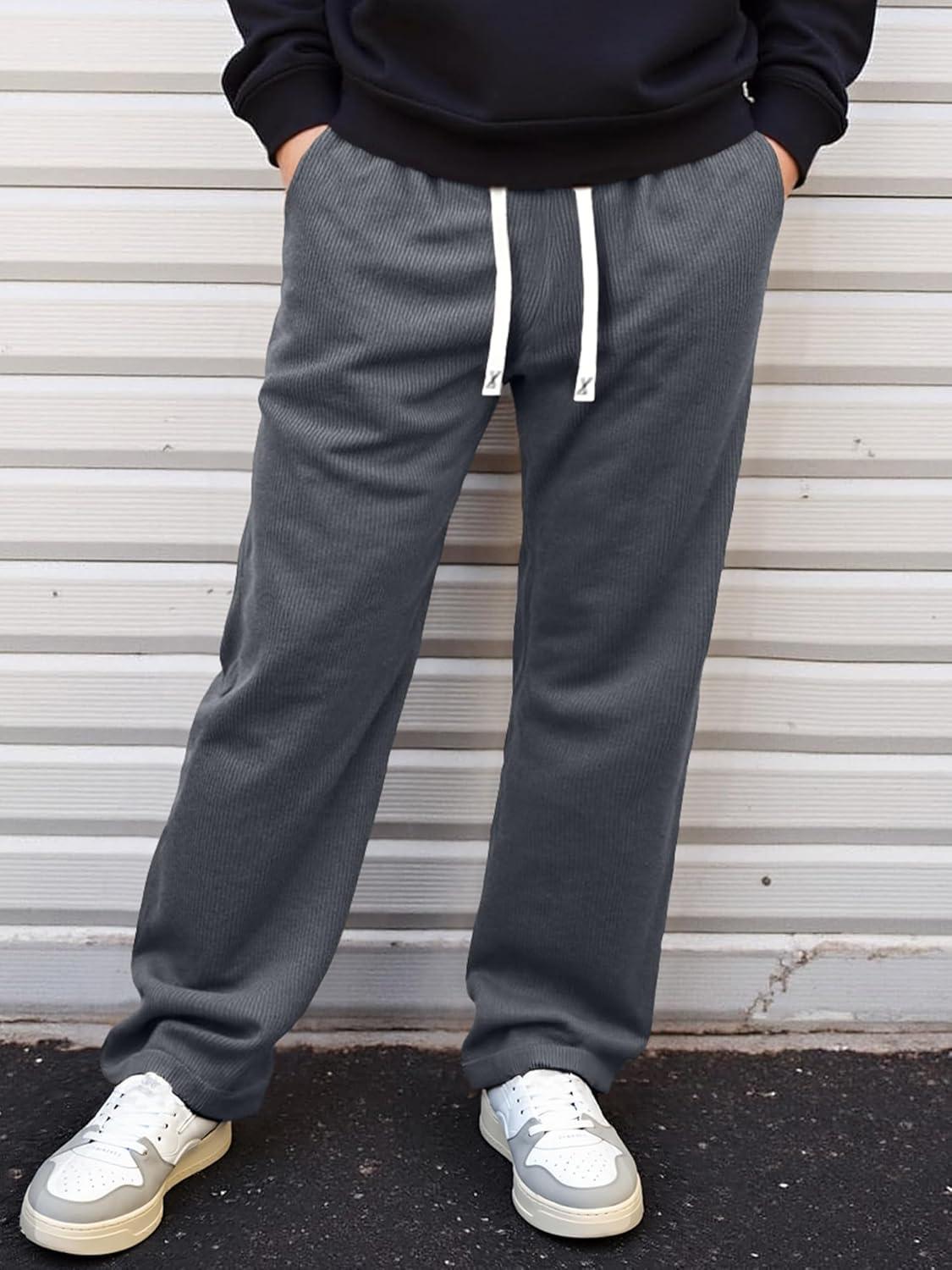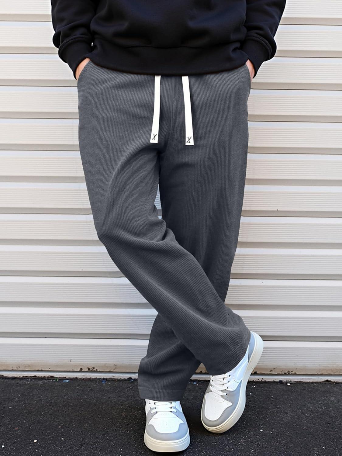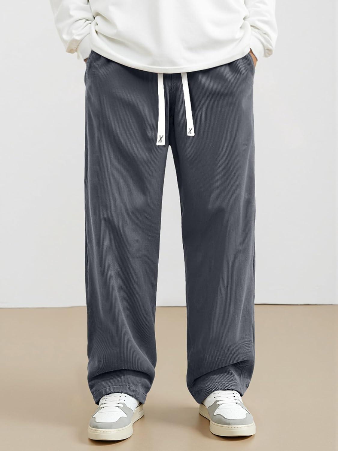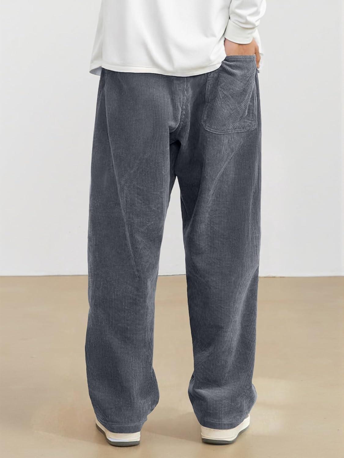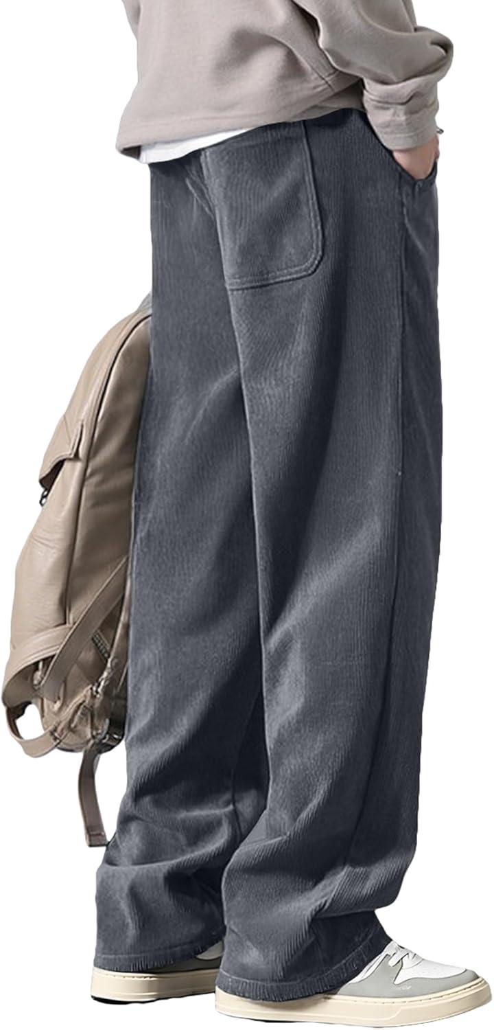 JMIERR Mens Corduroy Pants Casual Baggy Pants Wide Leg Loose Fit Joggers Sweatpants Elastic Waist Drawstring with Pockets(Grey)
