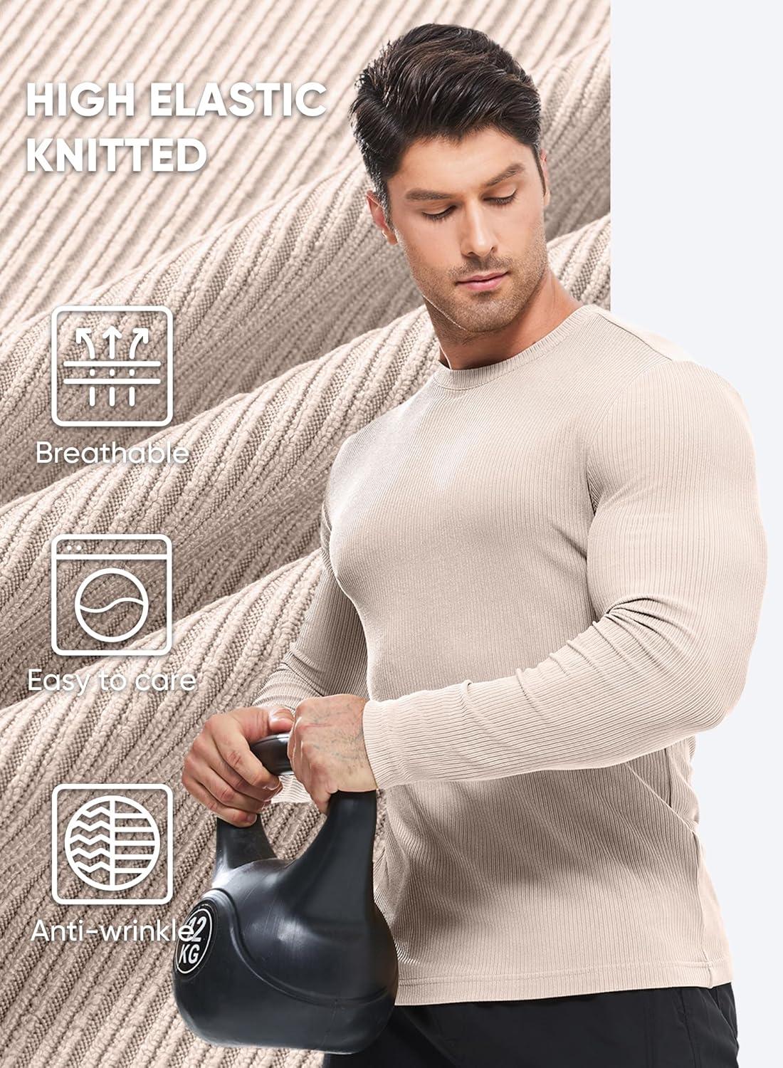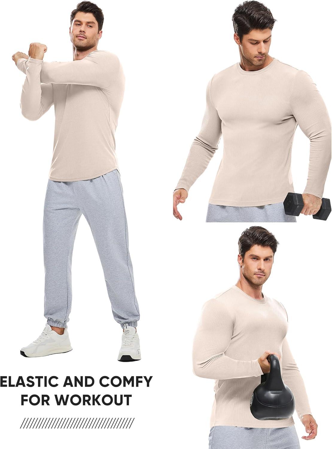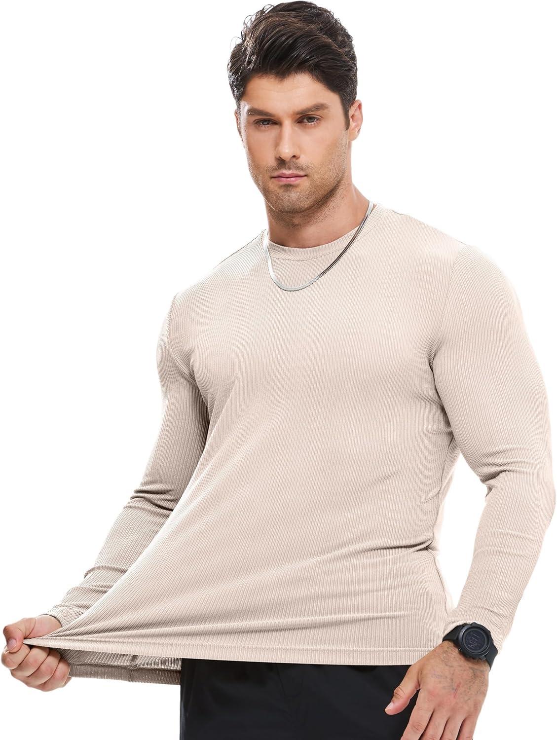 JMIERR Mens Fall Crewneck Shirt Long Sleeve Anti-Wrinkle Casual Muscle T Shirts Workout Slim Fitted(A Beige)
