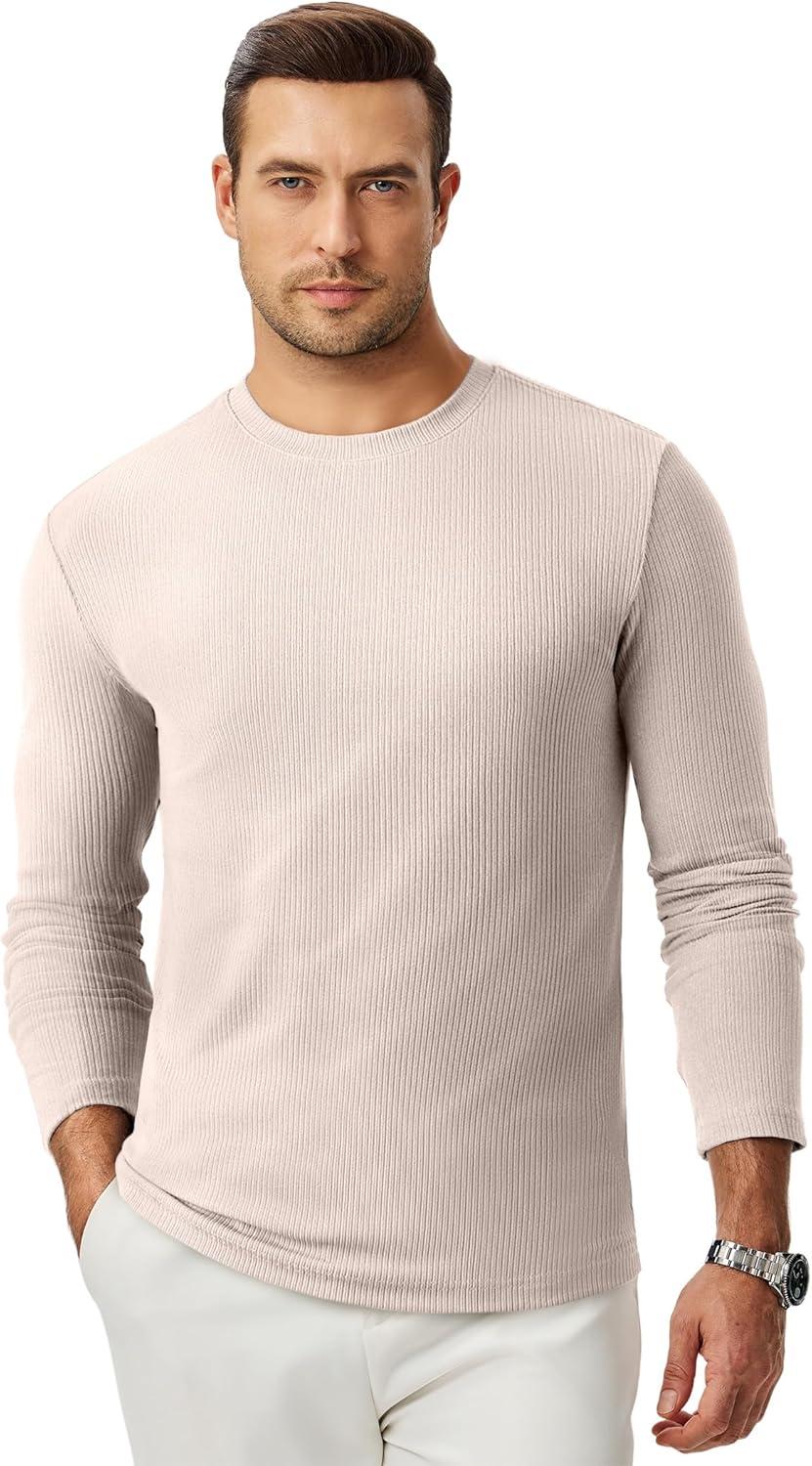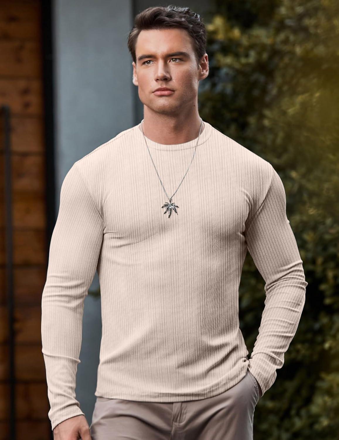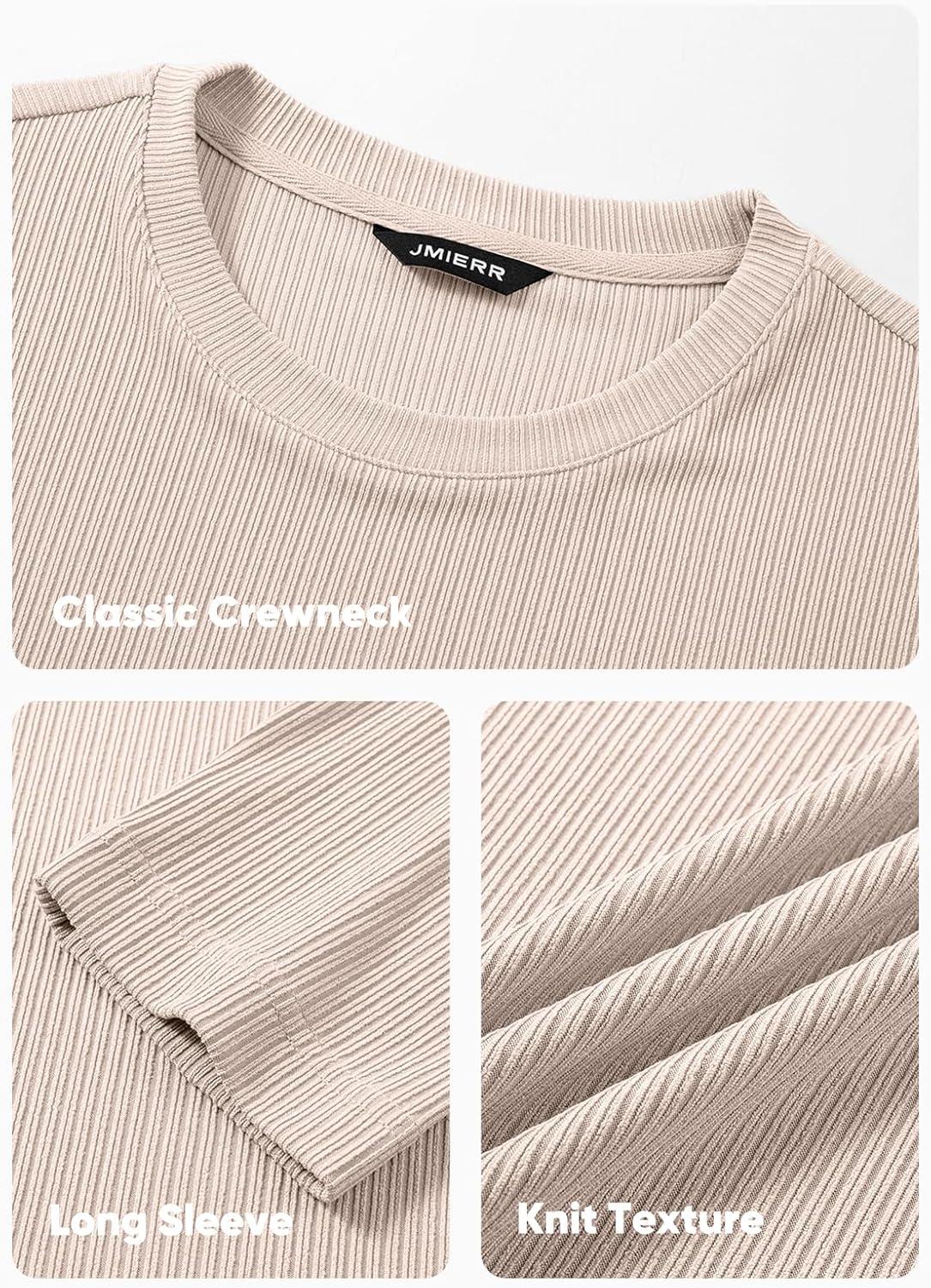 JMIERR Mens Fall Crewneck Shirt Long Sleeve Anti-Wrinkle Casual Muscle T Shirts Workout Slim Fitted(A Beige)