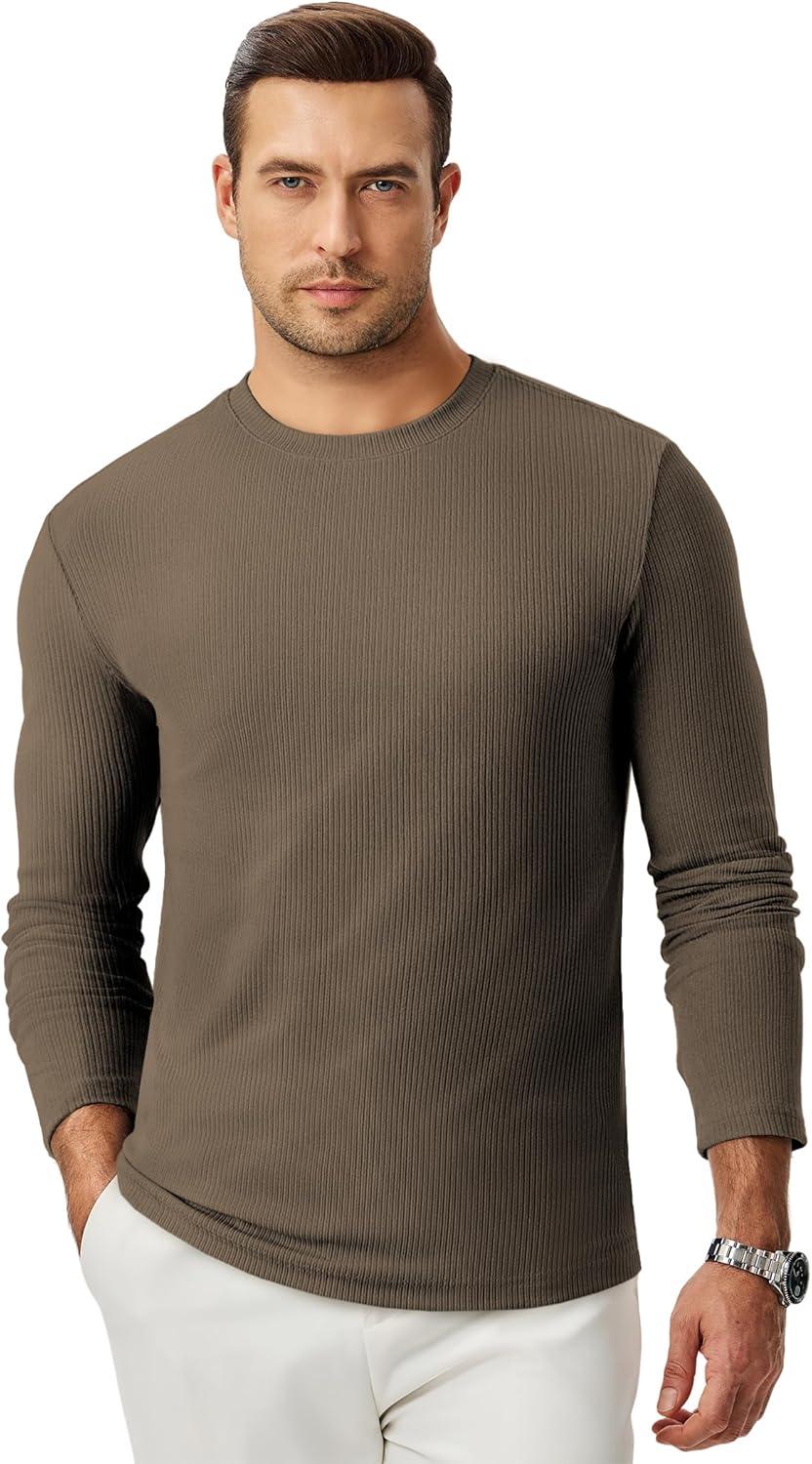 JMIERR Mens Fall Crewneck Shirt Long Sleeve Anti-Wrinkle Casual Muscle T Shirts Workout Slim Fitted(F Cocoa Brown)
