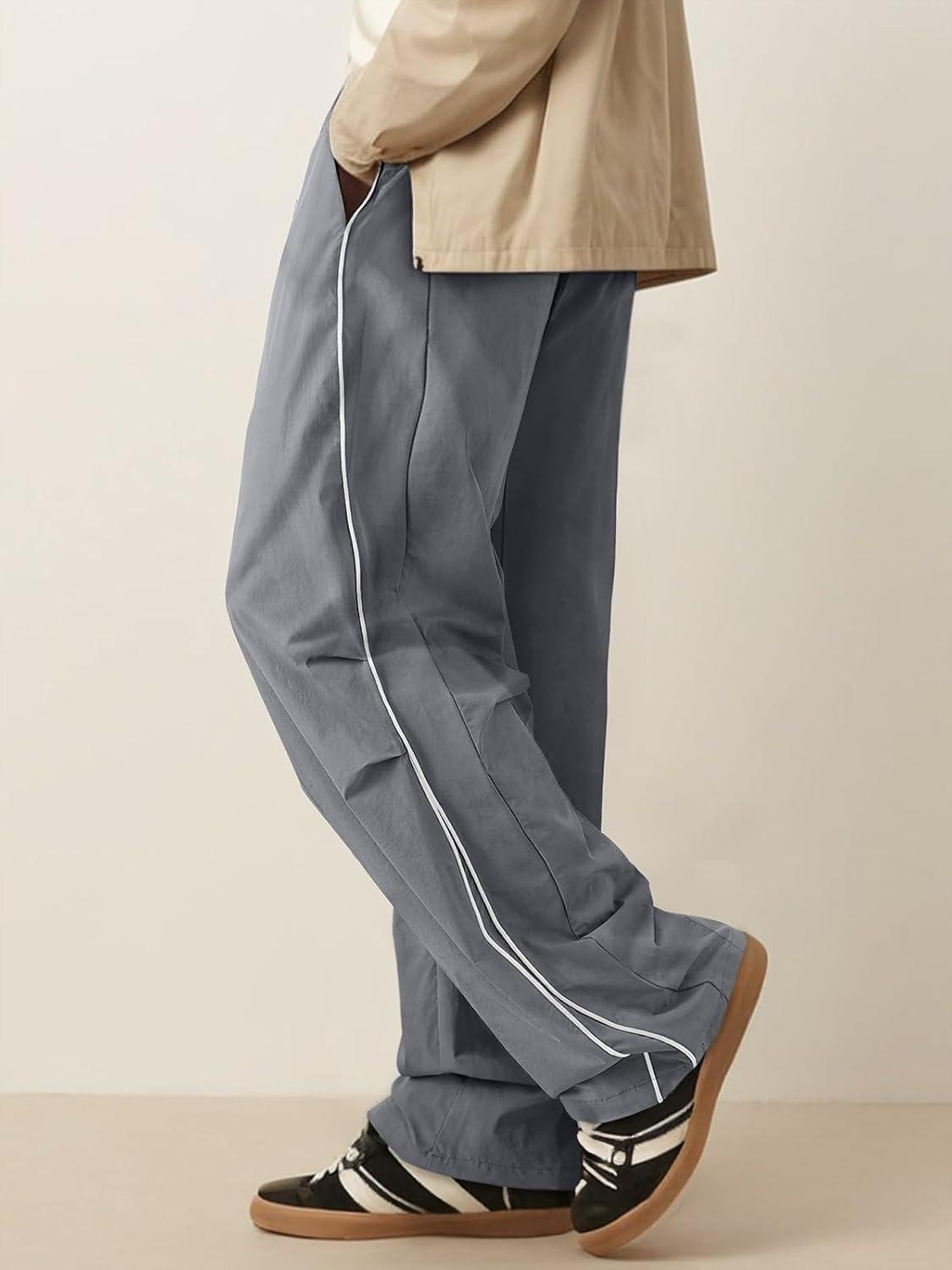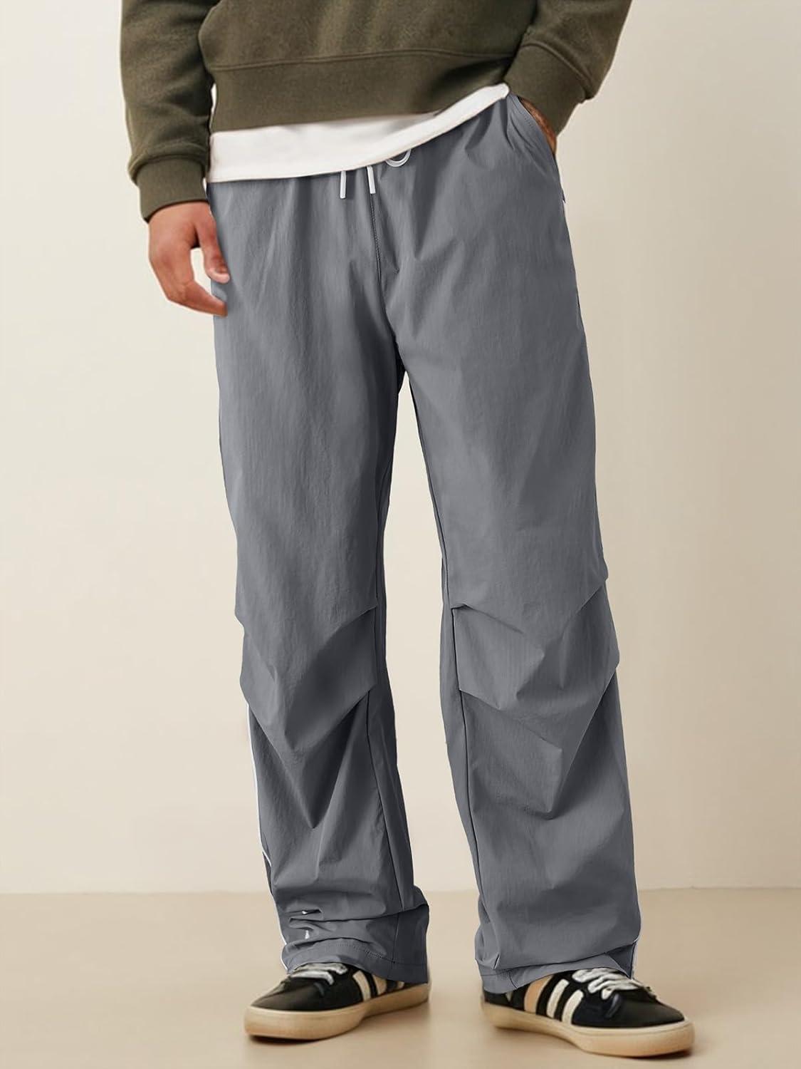 JMIERR Men’s Fashion Baggy Pants Parachute Pants Casual Wide Leg Y2K Lightweight Joggers Deep Pockets Side Seam(A2 Grey)