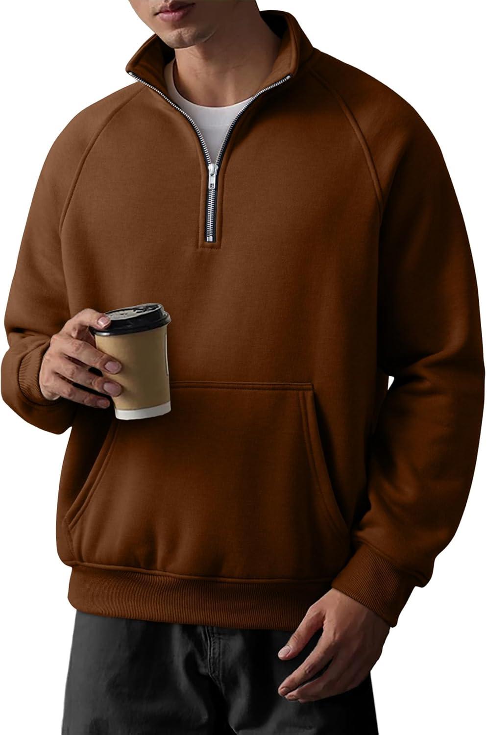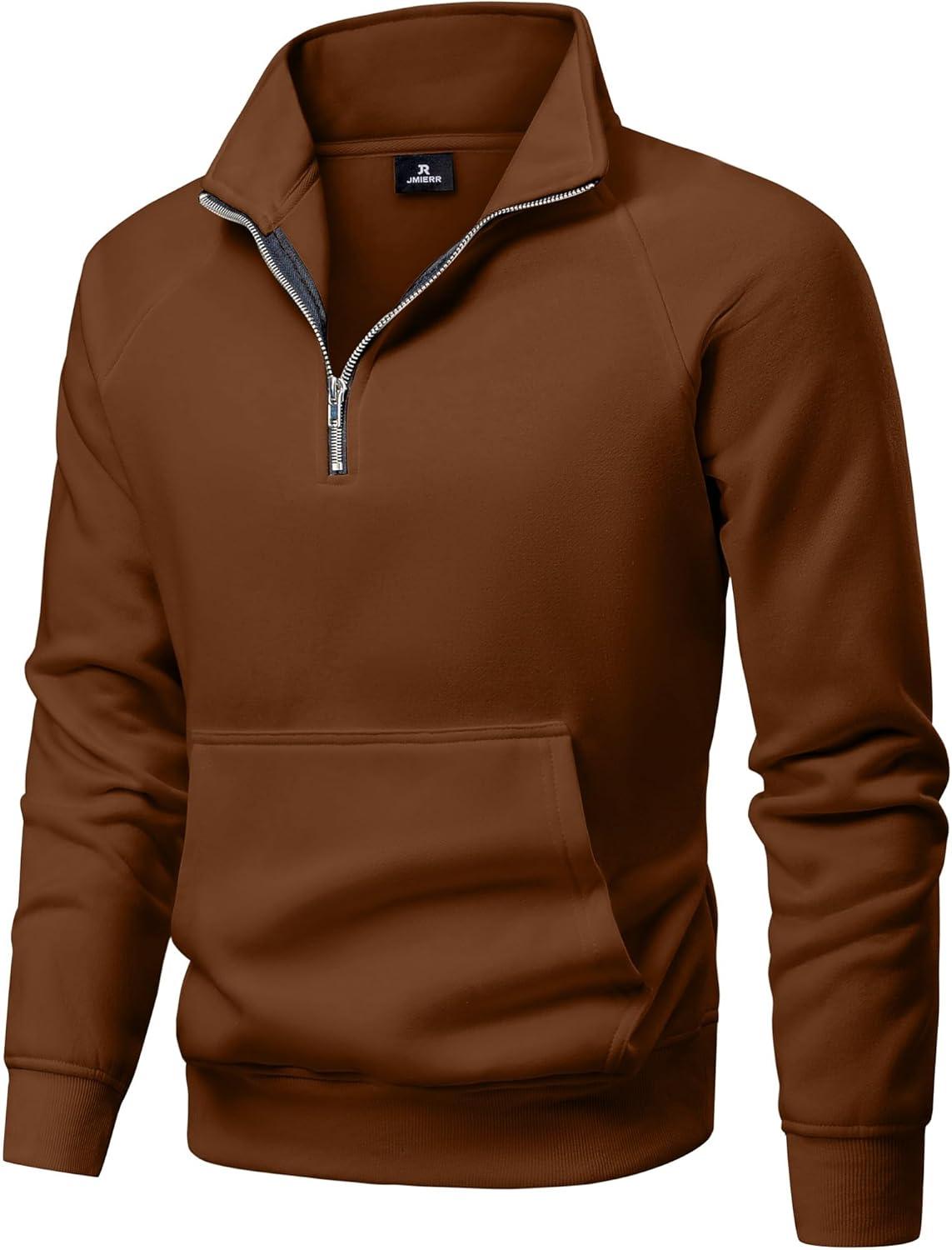 JMIERR Men’s Fleece Quarter Zip Pullover Sweater Casual Cotton Fall Winter Family Outfit Warm Mock Neck with Pockets(D Brown)