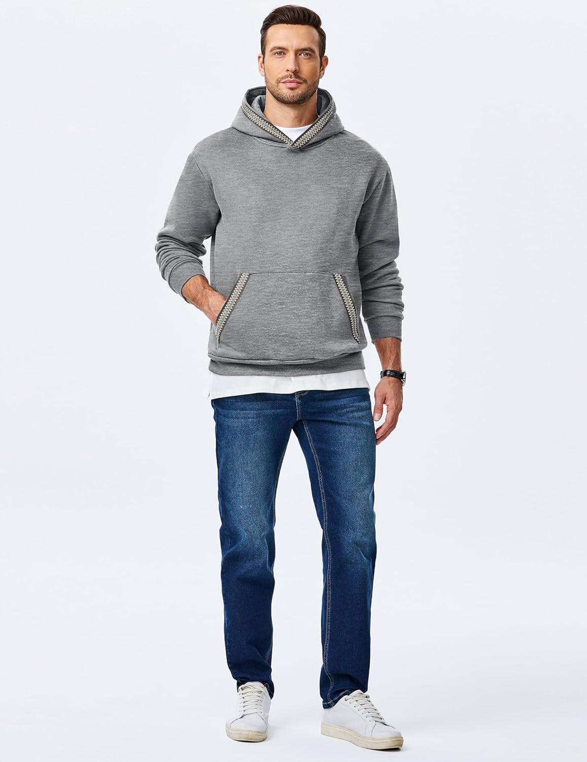 JMIERR Mens Hoodies Pullover Casual Cotton Fleece Hooded Sweatshirts Long Sleeve Shirts(Grey)