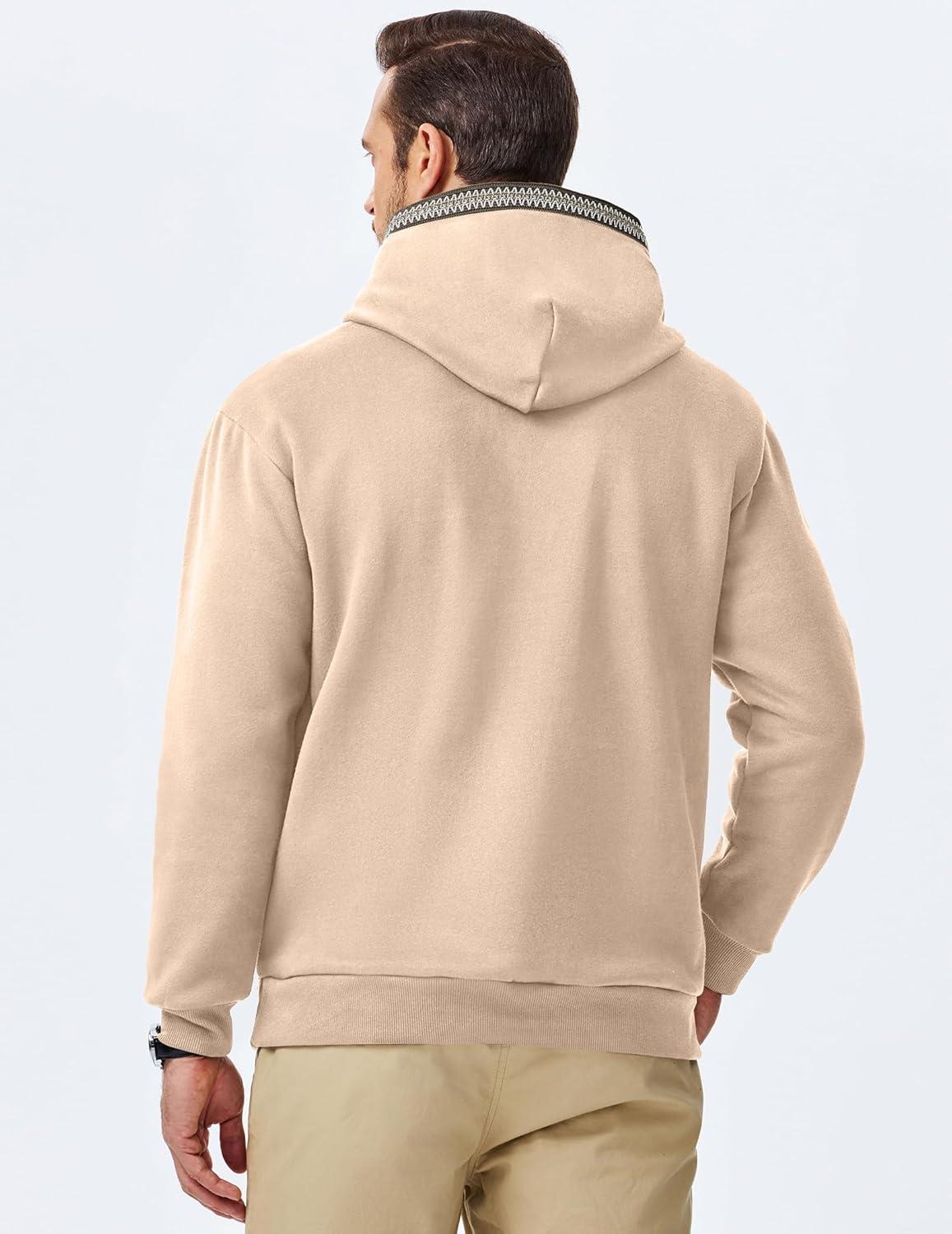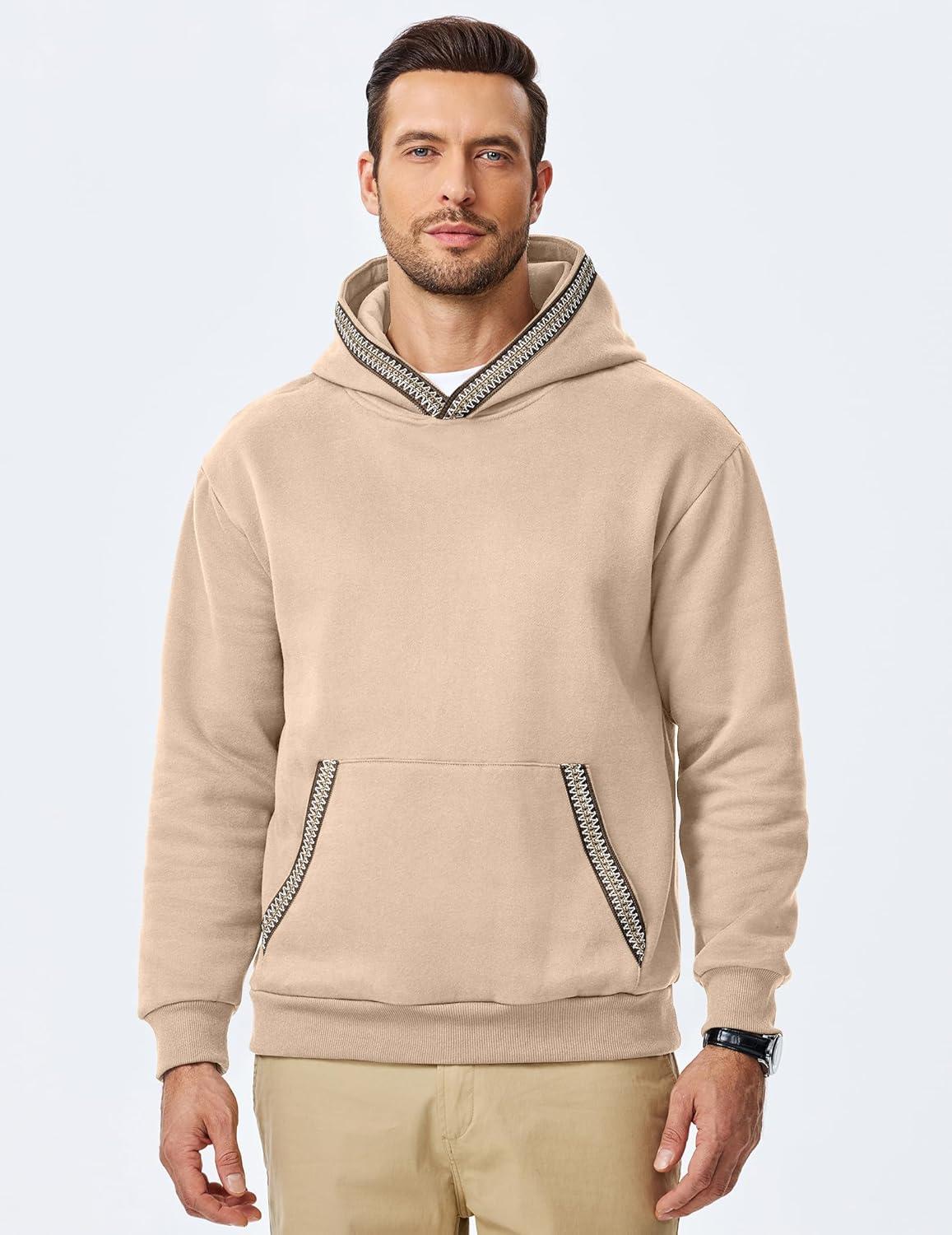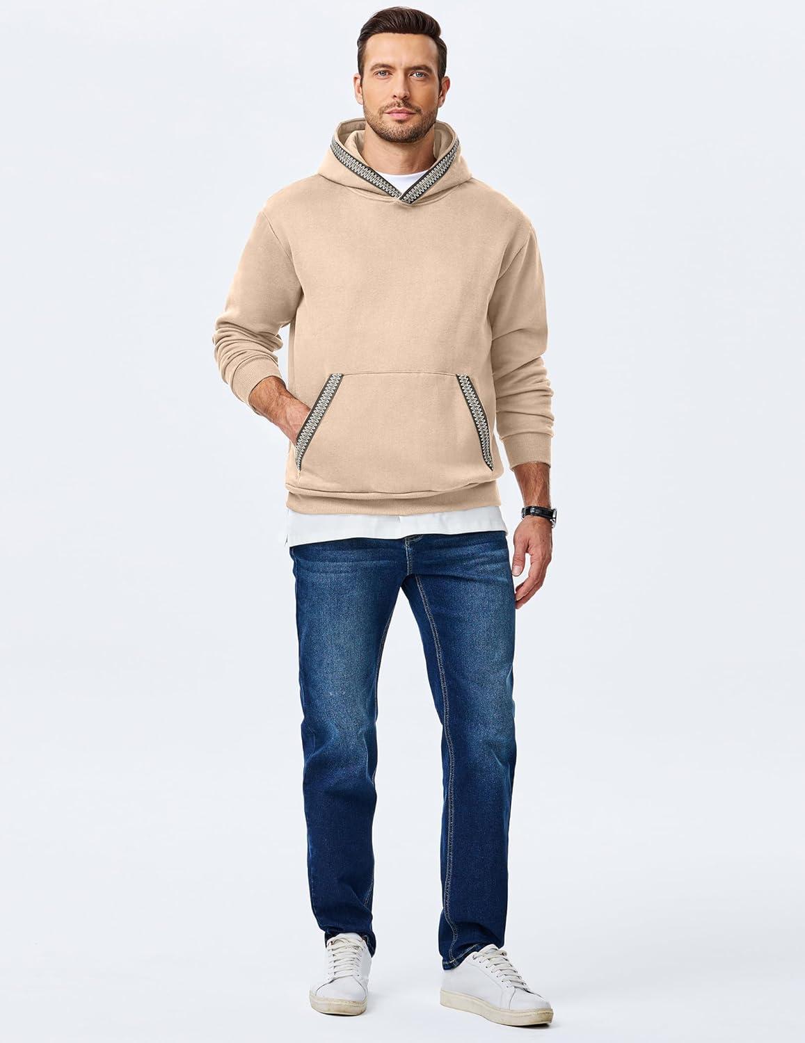 JMIERR Mens Hoodies Pullover Casual Cotton Fleece Hooded Sweatshirts Long Sleeve Shirts(Khaki)