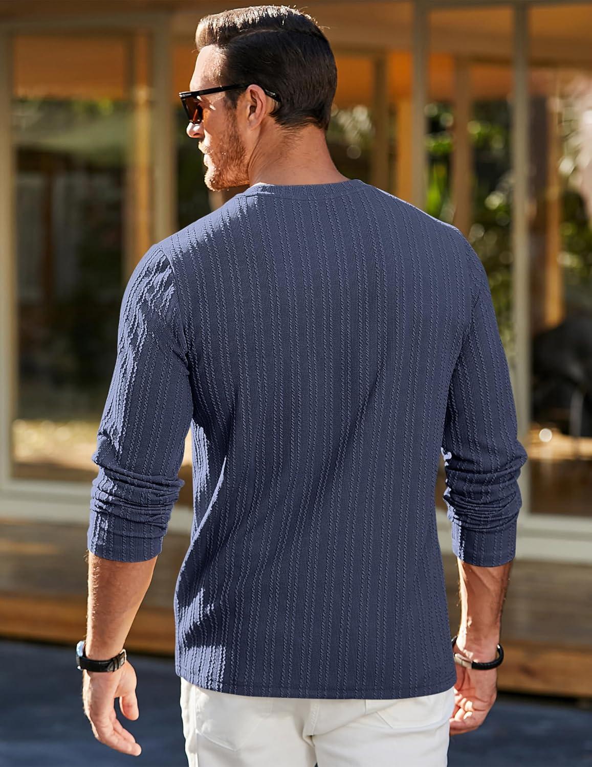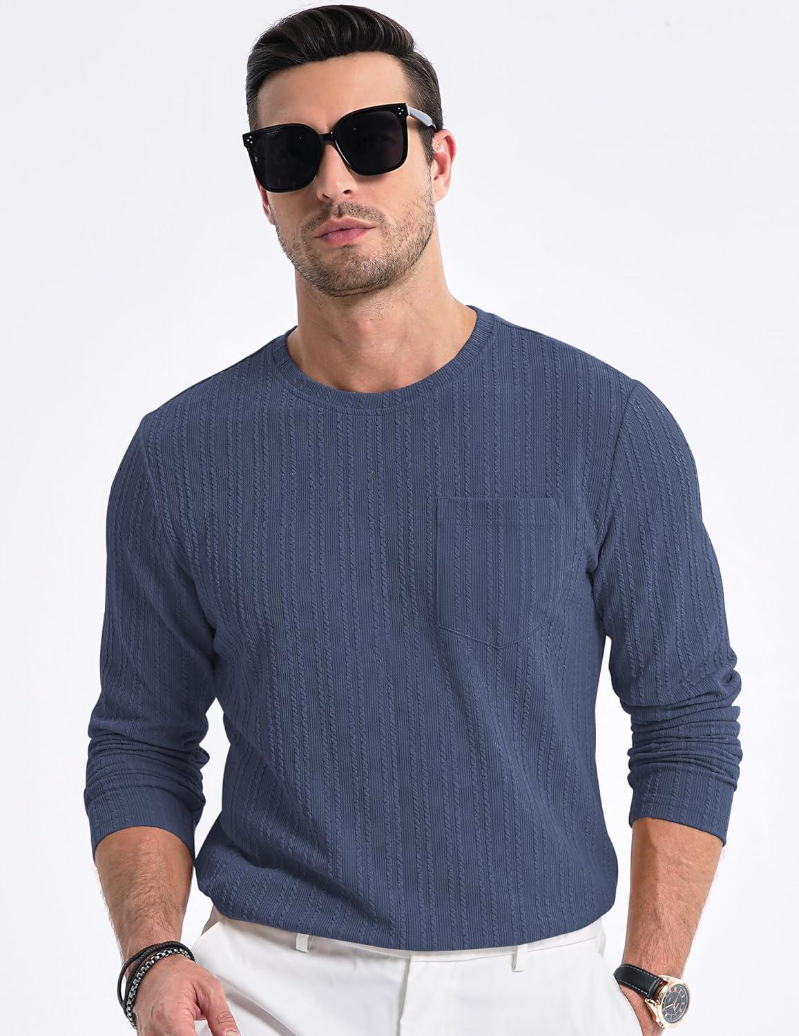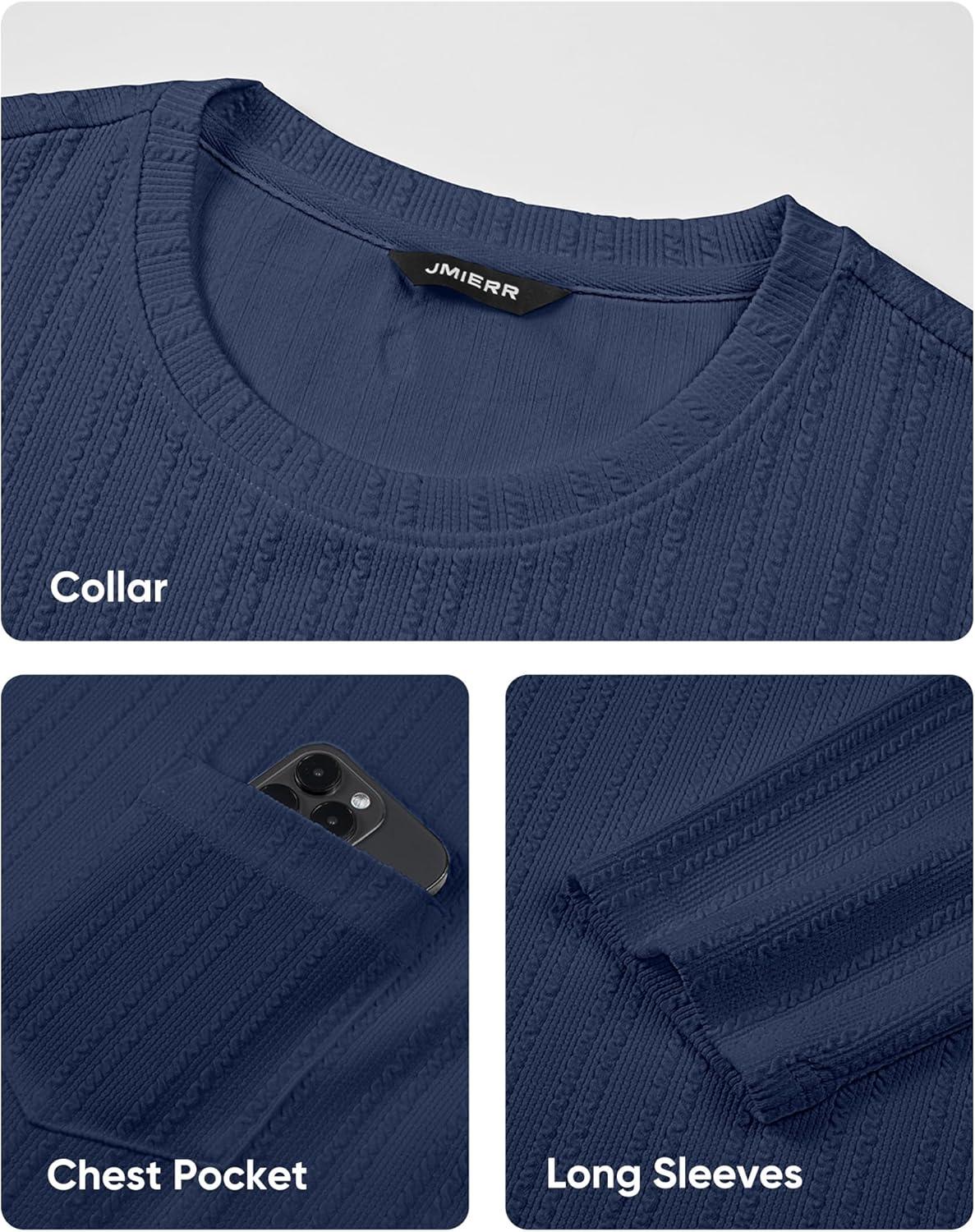 JMIERR Men’s Long Sleeve Shirts Casual Crewneck Pullover T-Shirt Stretch Textured Knit Tee with Pocket(07 Blue)