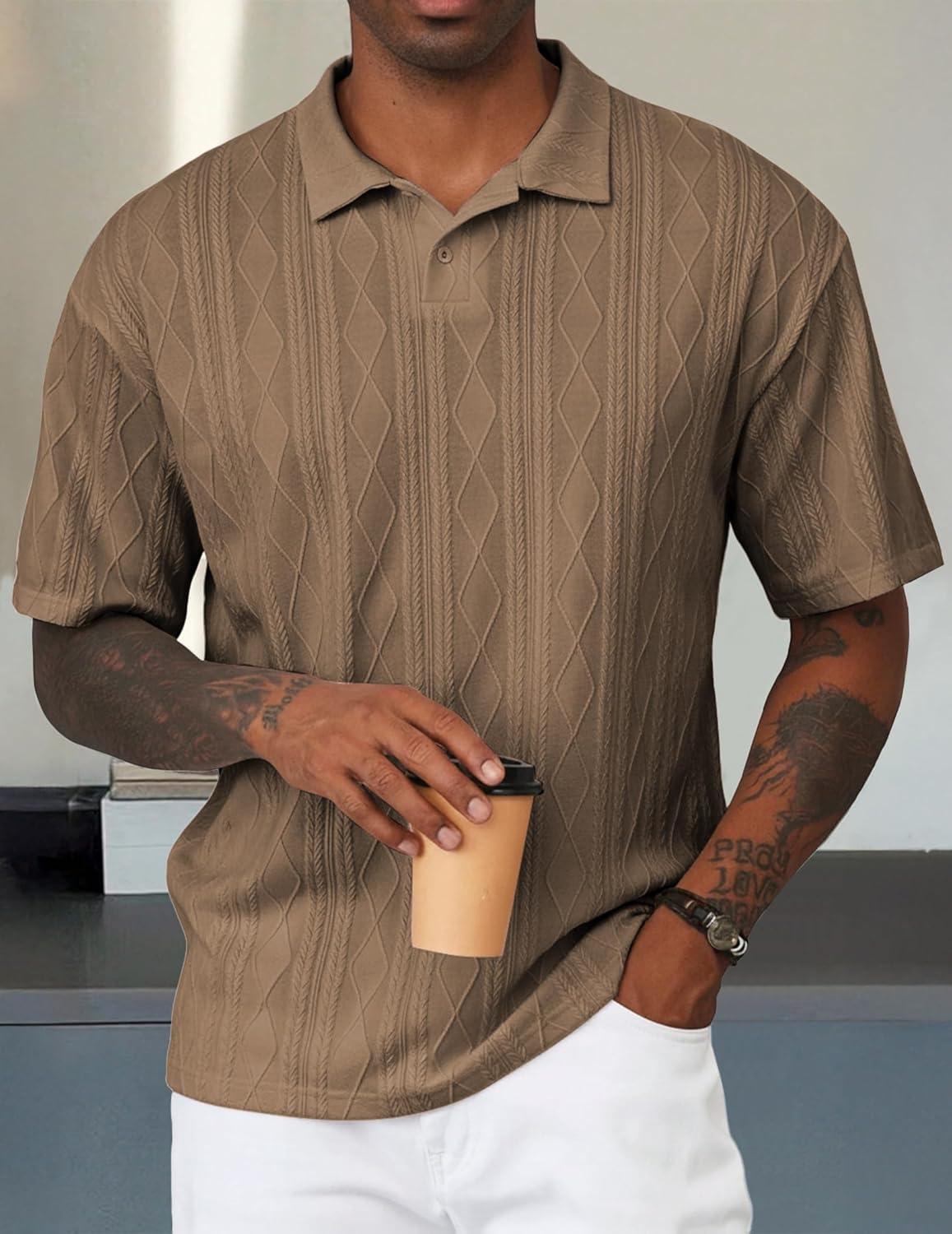 JMIERR Mens Polo Shirt Knit Button Casual Short Sleeve Summer Vacation Beach Stretchy Golf Shirts(Khaki)