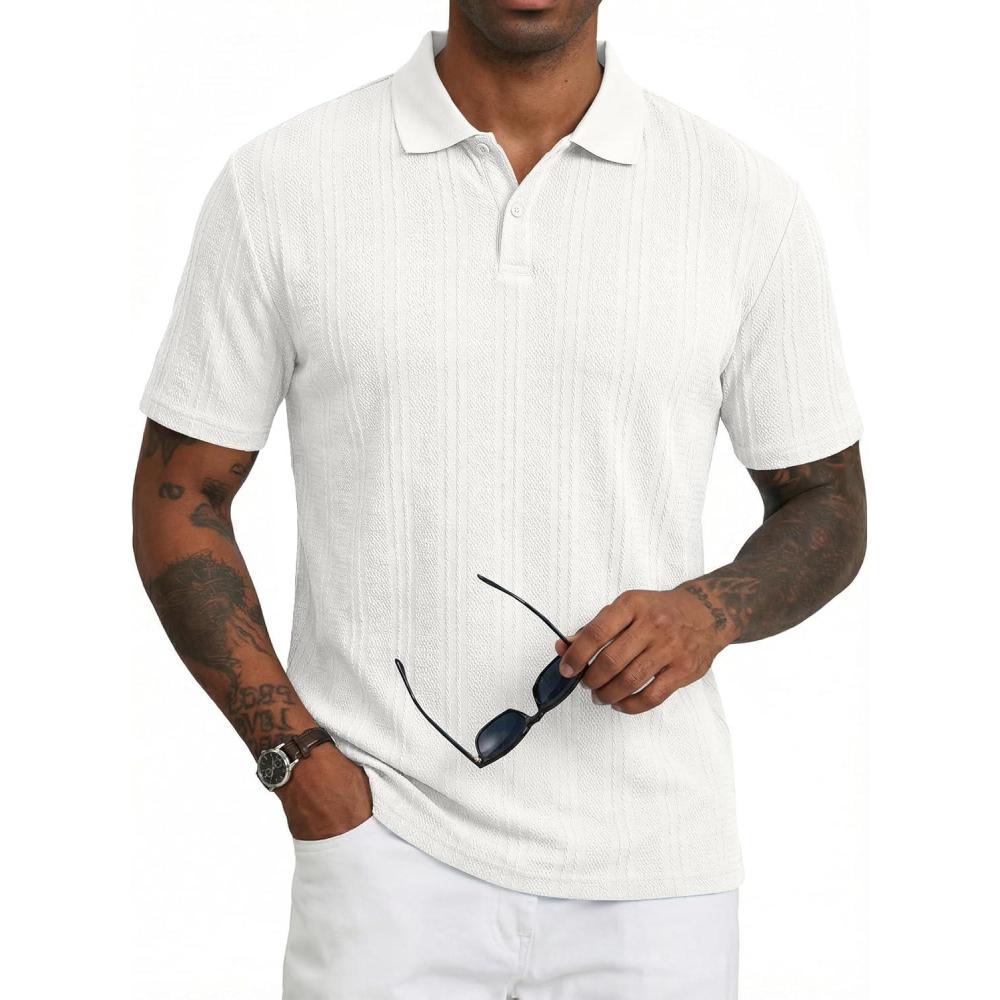JMIERR Mens Polo Shirt Textured Short Sleeve Summer Button Collar Knitted Golf Polos(White)