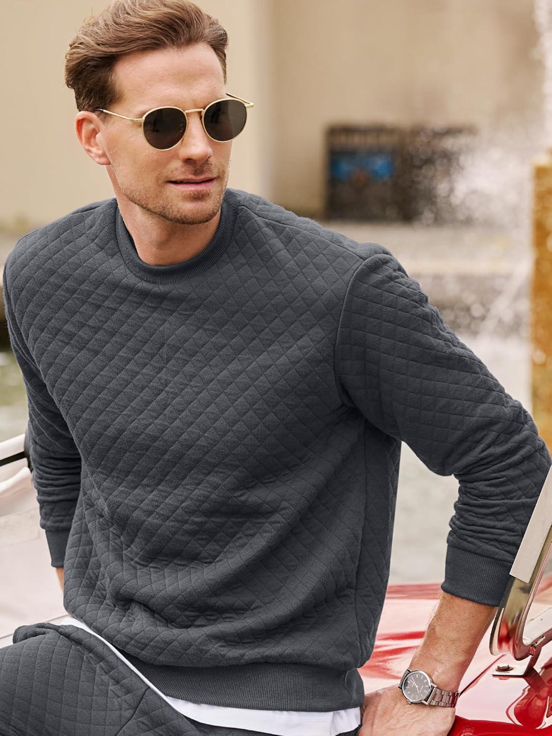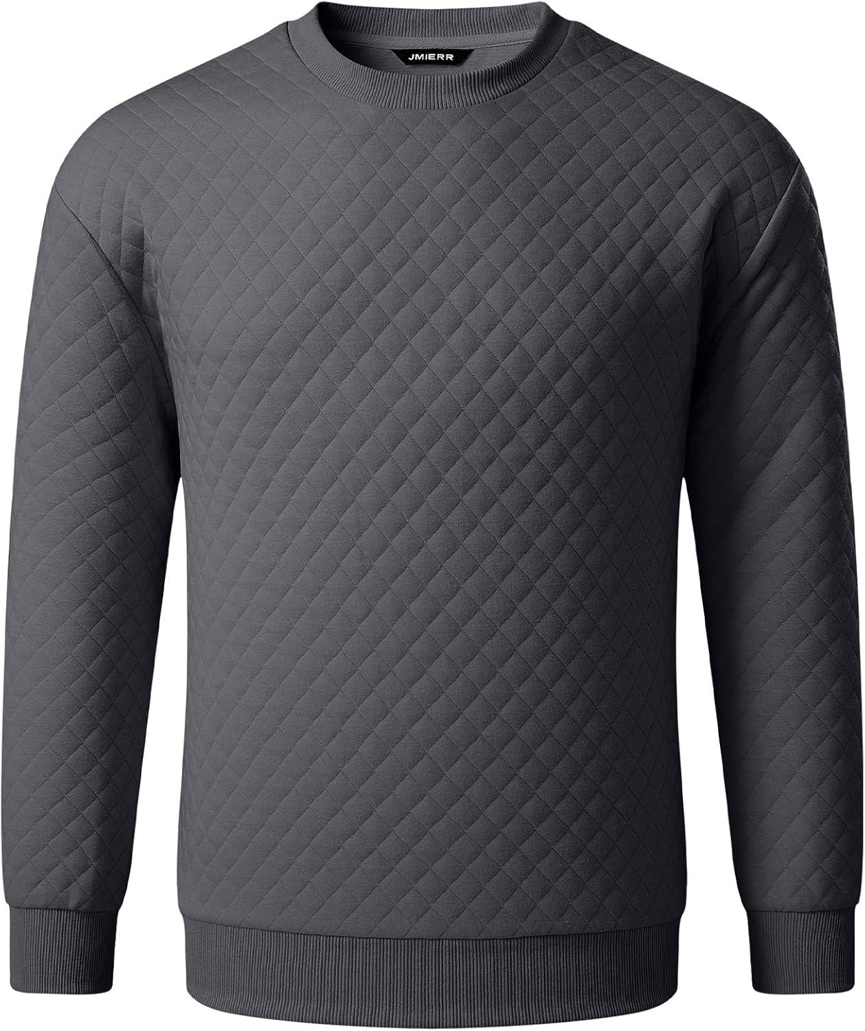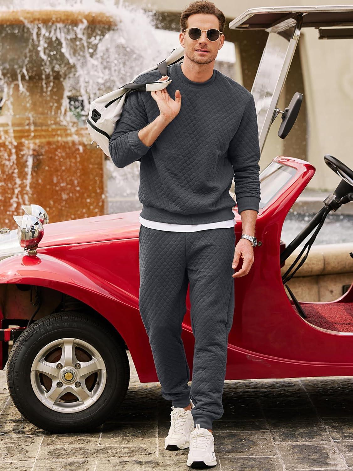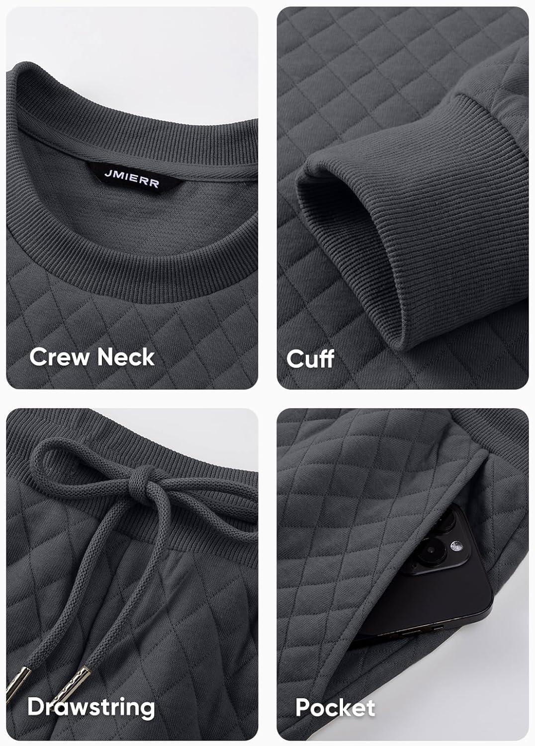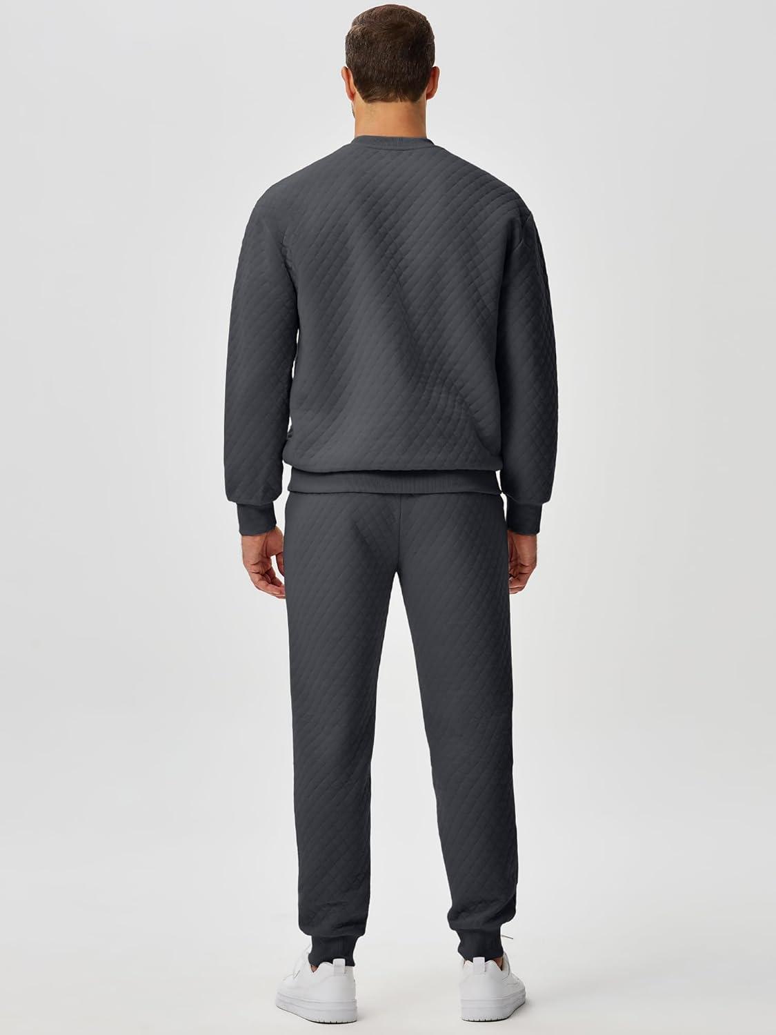 JMIERR Men’s Quilted 2 Piece Casual Outfits Crewneck Sweatshirt Tracksuit & Joggers Sweatpants Sweatsuit Set(Dark Grey)