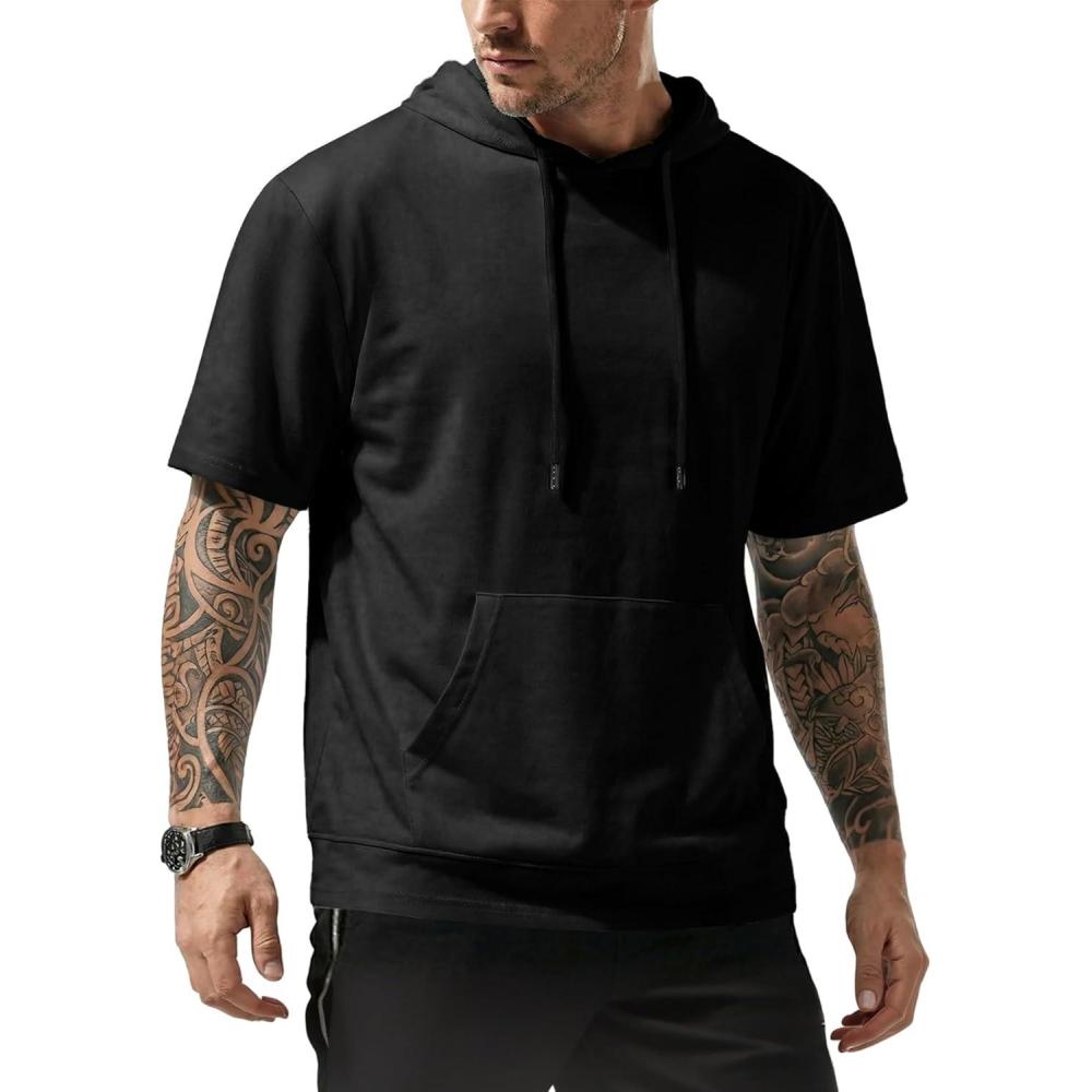 JMIERR Mens Short Sleeve Hoodie Cotton Hooded T-shirts Lightweight Solid Sweatshirts with Pocket(01 Black)