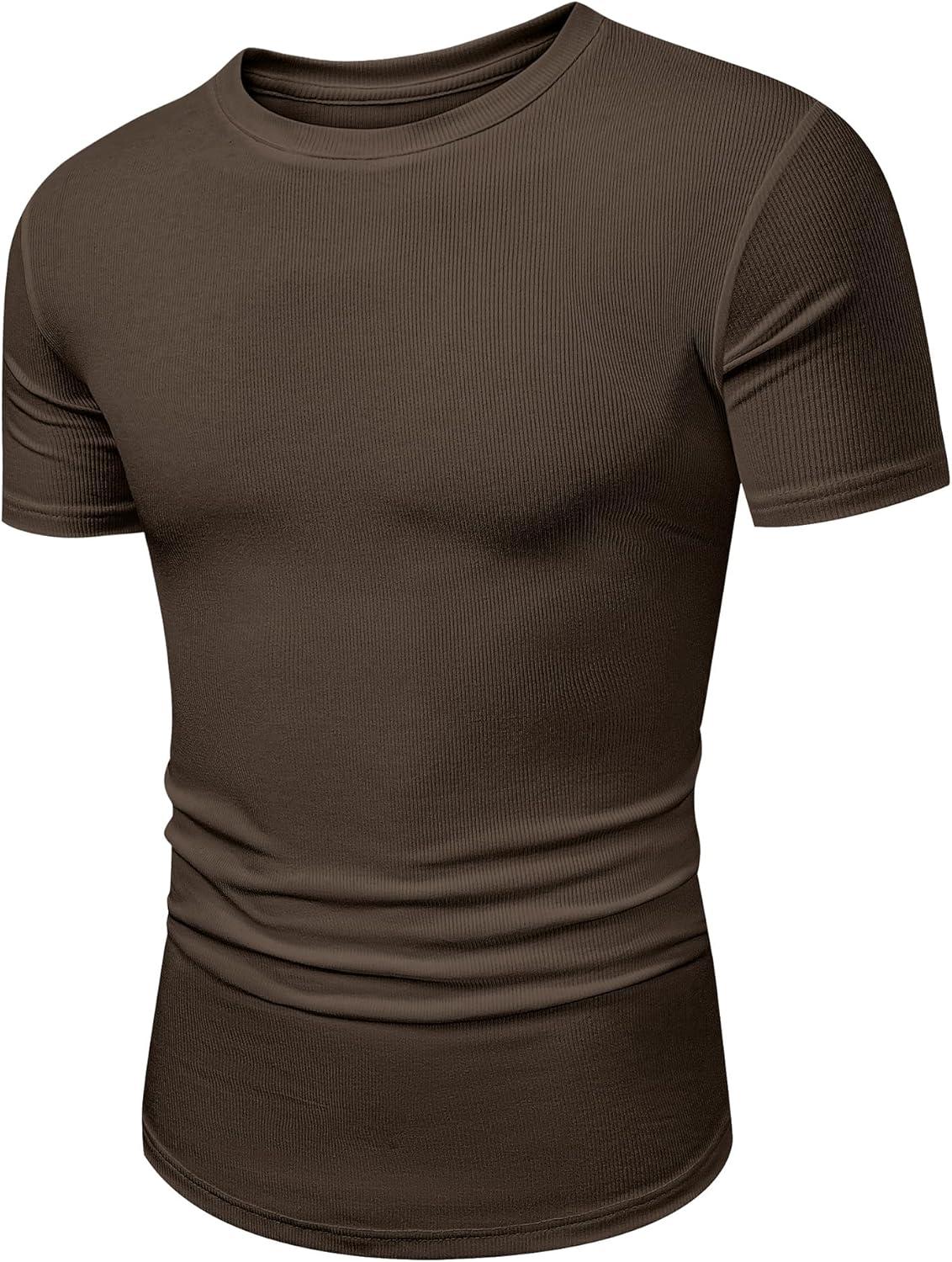 JMIERR Mens Short Sleeve T Shirt Summer Muscle Slim Fitted Crewneck Longline Tees Shirts for Gym Workout(E Brown)