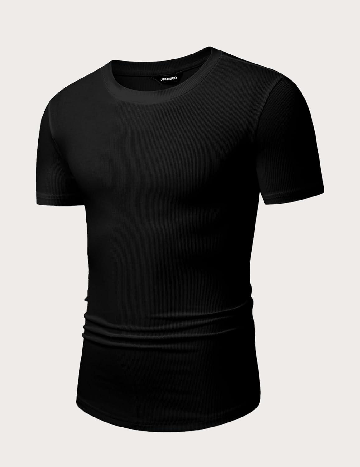JMIERR Mens Short Sleeve T Shirt Summer Muscle Slim Fitted Crewneck Longline Tees Shirts for Gym Workout(Pack Black)