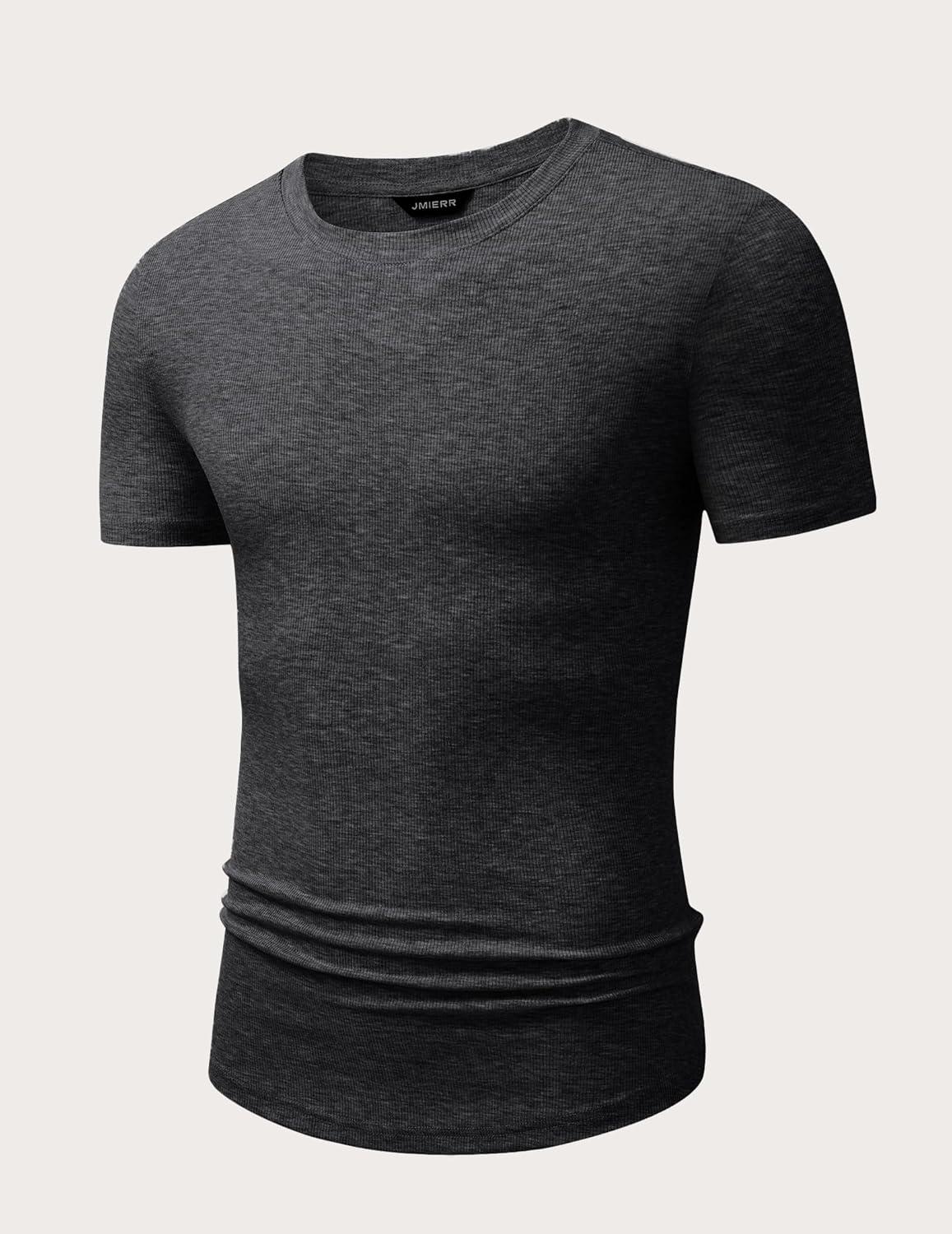 JMIERR Mens Short Sleeve T Shirt Summer Muscle Slim Fitted Crewneck Longline Tees Shirts for Gym Workout(Pack Black&dark Grey)