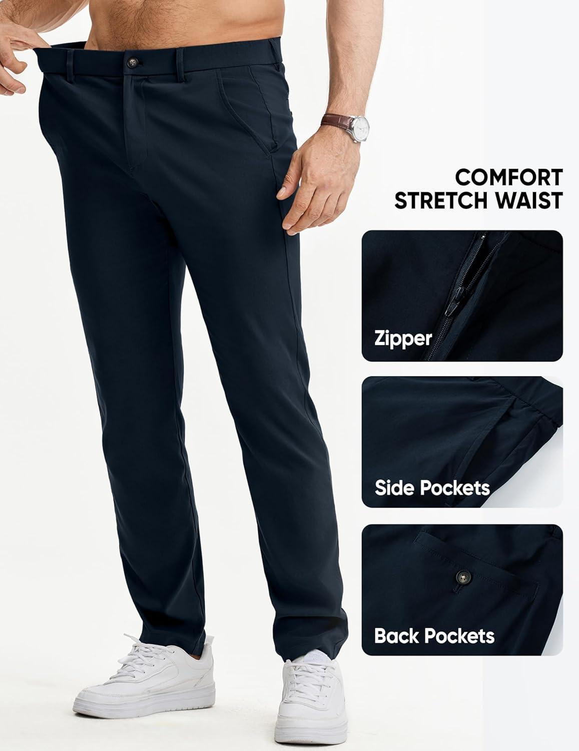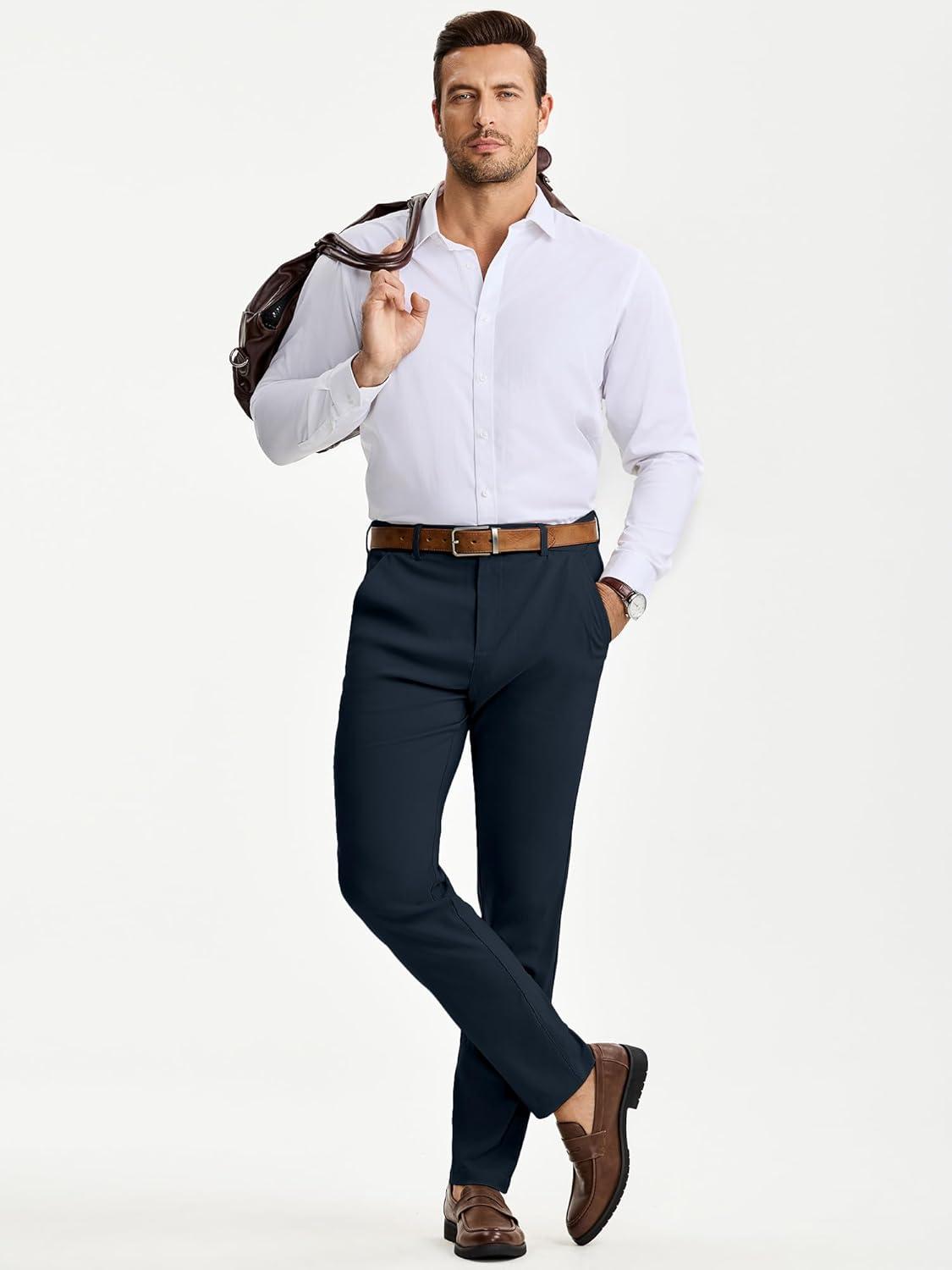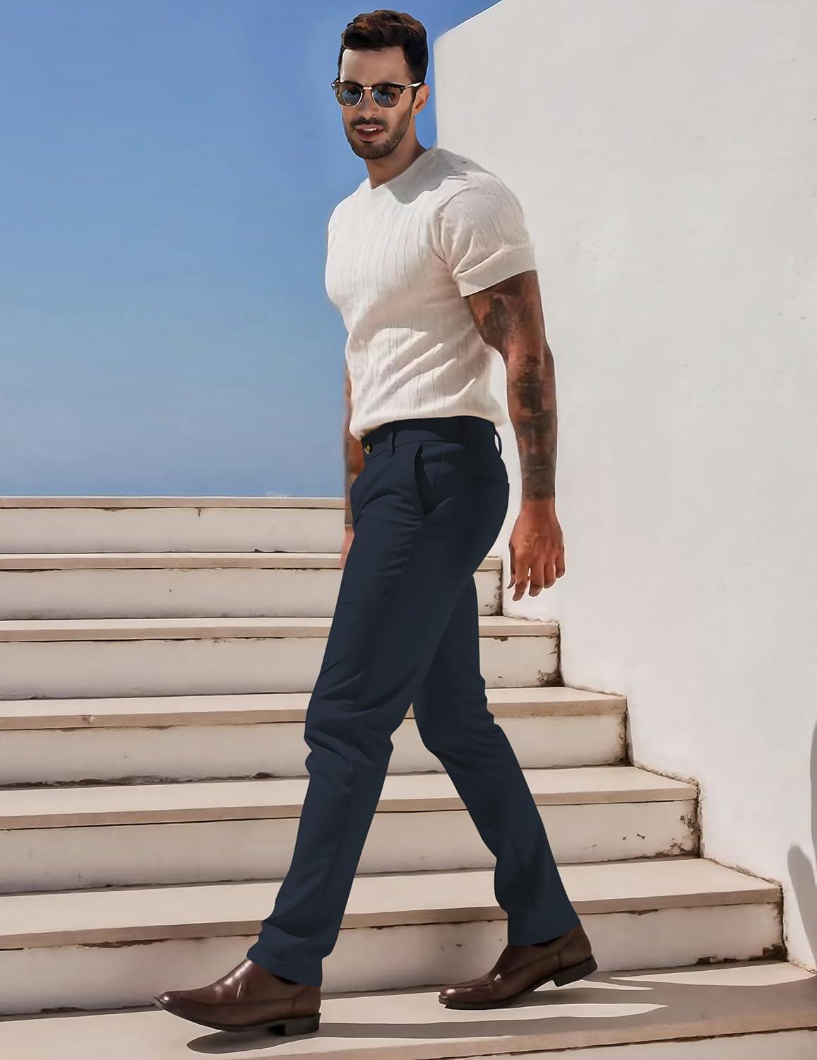 JMIERR Men’s Skinny Stretchy Suit Pants Slim Fit Slacks Tapered Trousers(Navy Blue)