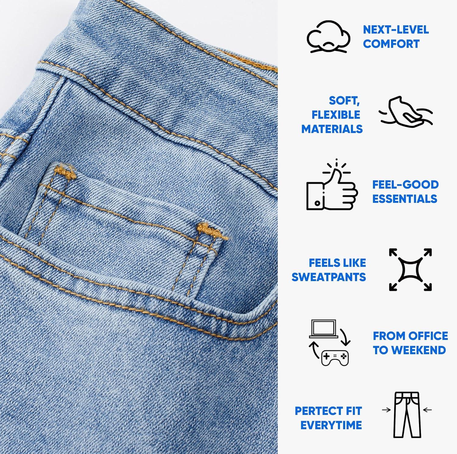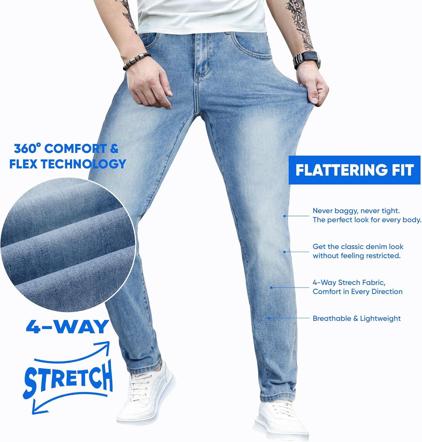 JMIERR Men’s Slim Fit Stretch Tapered Leg Skinny Jeans, Comfort Flexible Denim Pants for Men with 5 Pockets(Beau Blue)