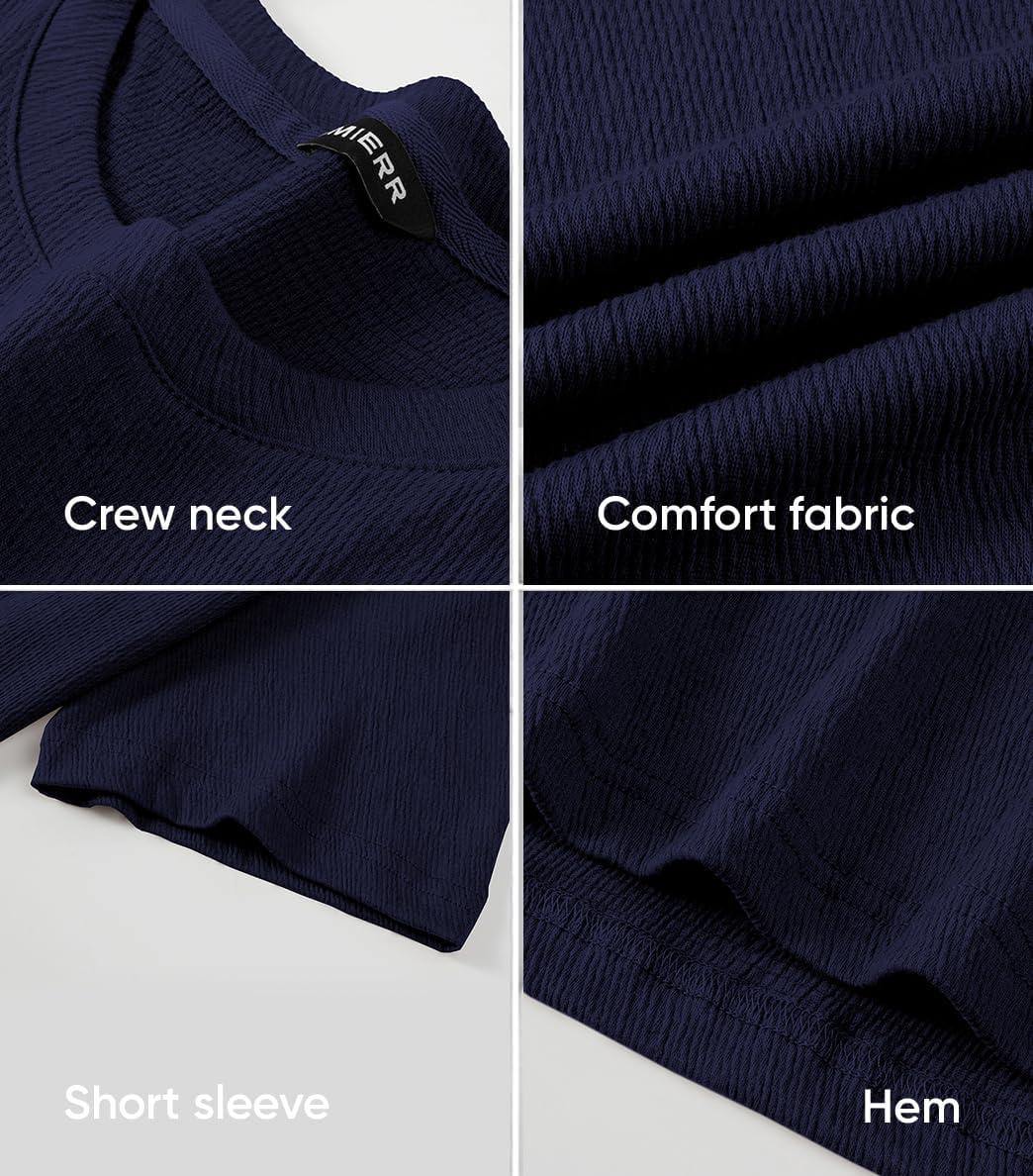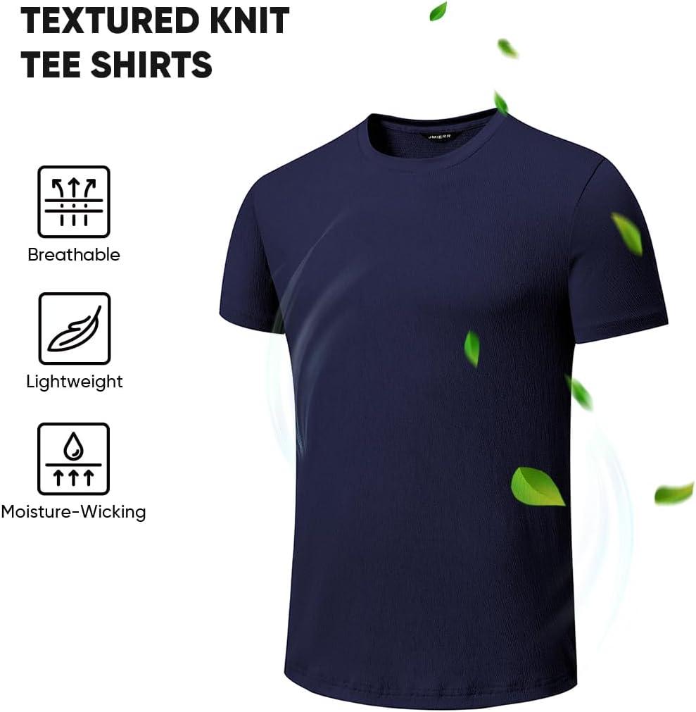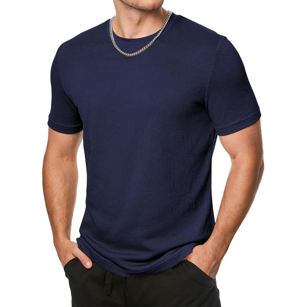 JMIERR Mens T-Shirt Short Sleeve Muscle Textured Knit Crewneck Slim T Shirt Gym Workout Athletic Tee Shirts(A Navy Blue)