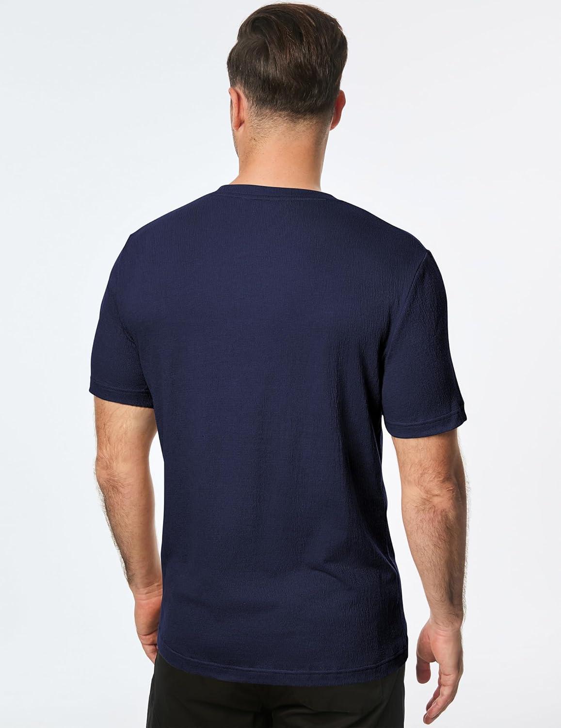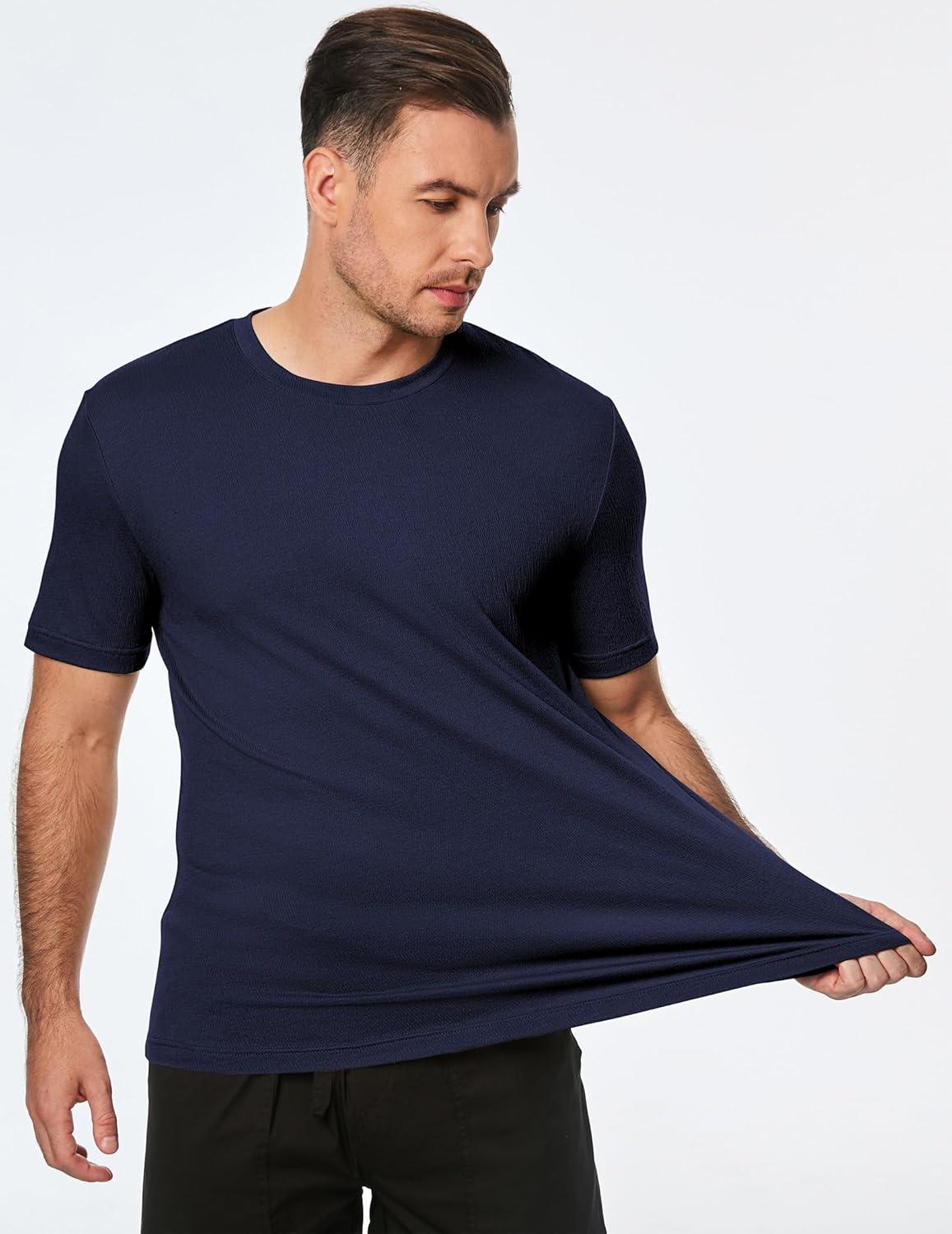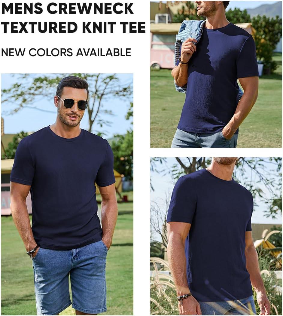 JMIERR Mens T-Shirt Short Sleeve Muscle Textured Knit Crewneck Slim T Shirt Gym Workout Athletic Tee Shirts(A Navy Blue)