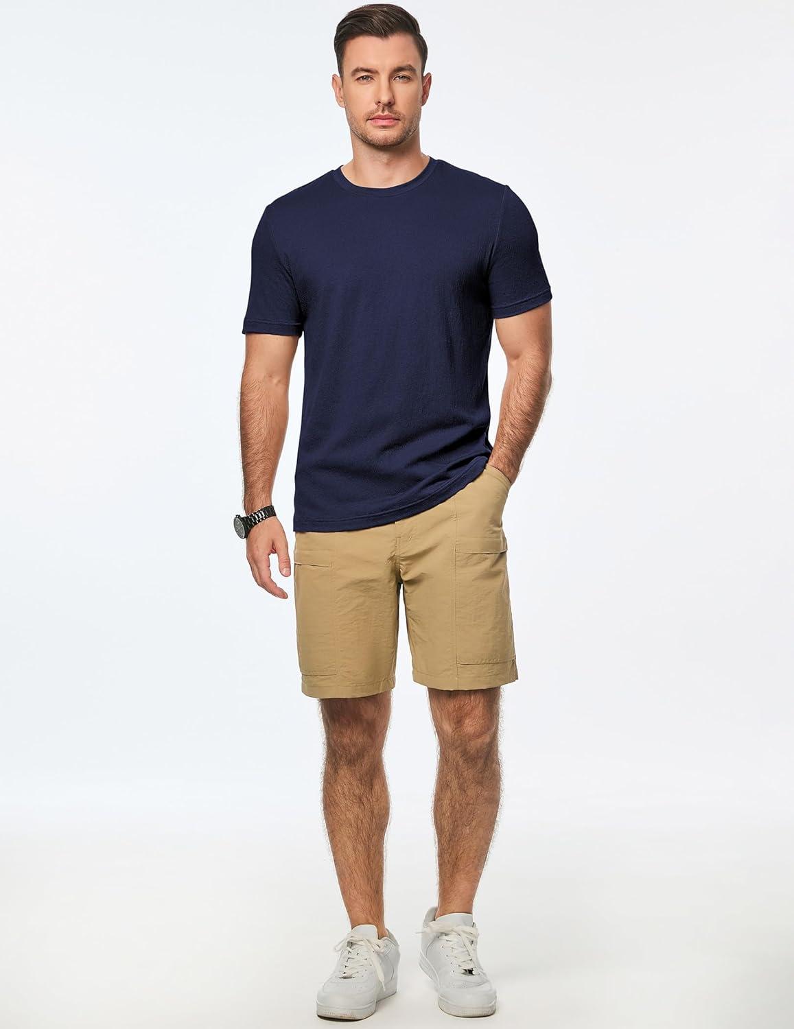 JMIERR Mens T-Shirt Short Sleeve Muscle Textured Knit Crewneck Slim T Shirt Gym Workout Athletic Tee Shirts(A Light French Beige)