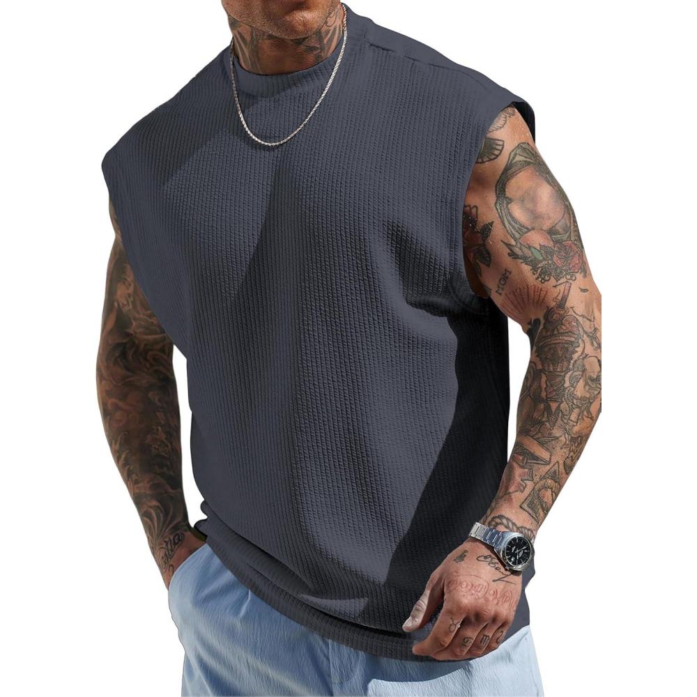 JMIERR Mens Tank Tops Textured Sleeveless Streetwear T Shirts Workout Muscle Gym Shirt(Dark Grey)