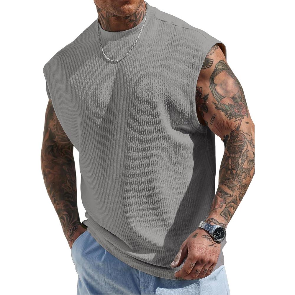 JMIERR Mens Tank Tops Textured Sleeveless Streetwear T Shirts Workout Muscle Gym Shirt(Gray)