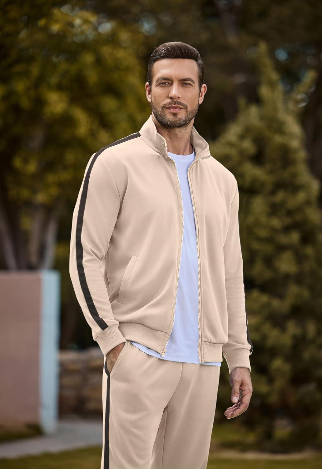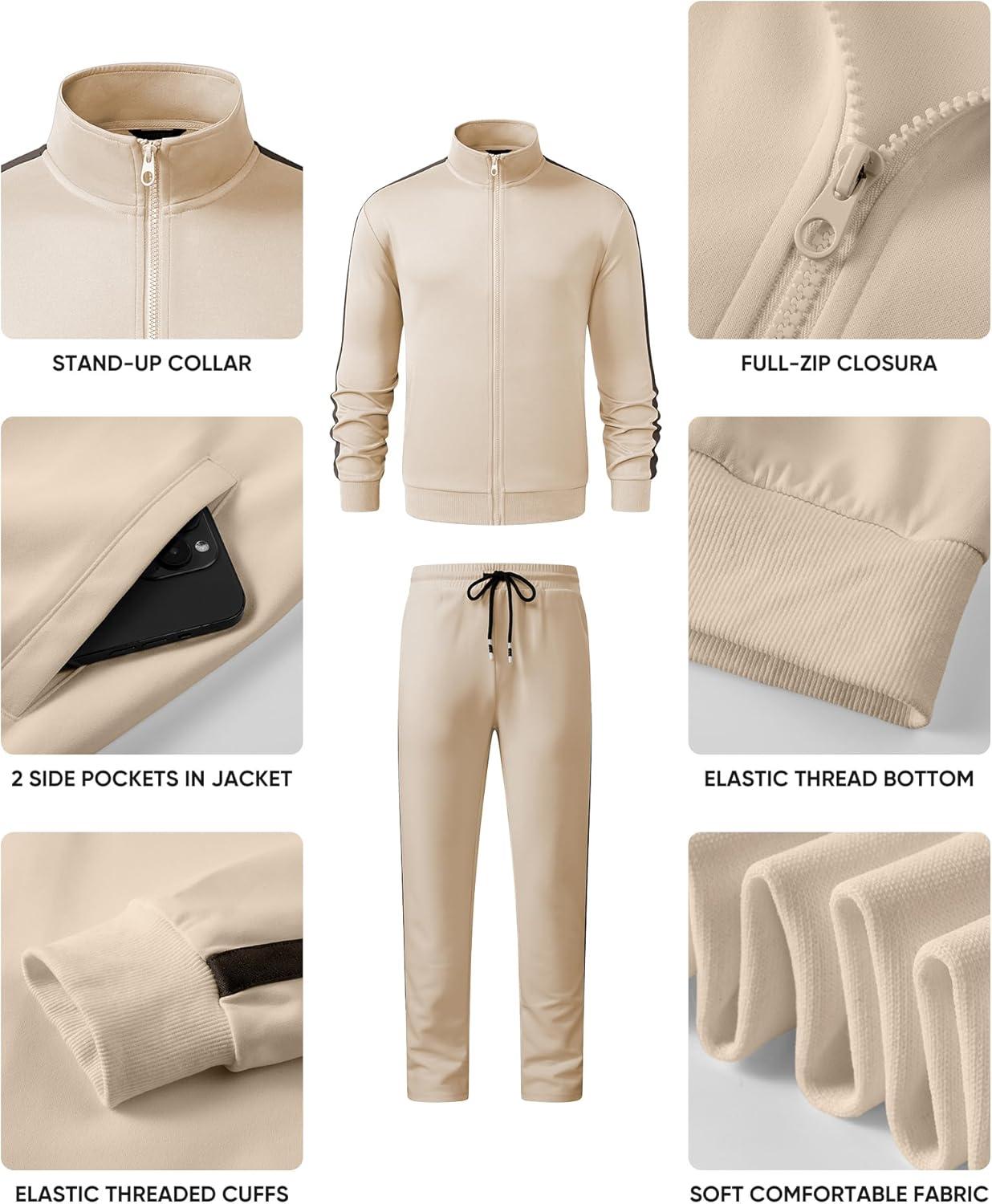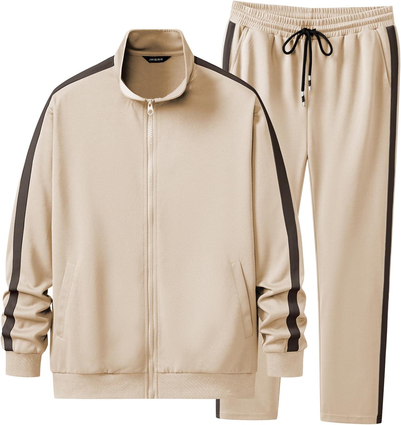 JMIERR Men’s Track Suits 2 Piece Full Zip Sports Outfits Set Sweatshirt and Joggers Sweatpants(Beige)
