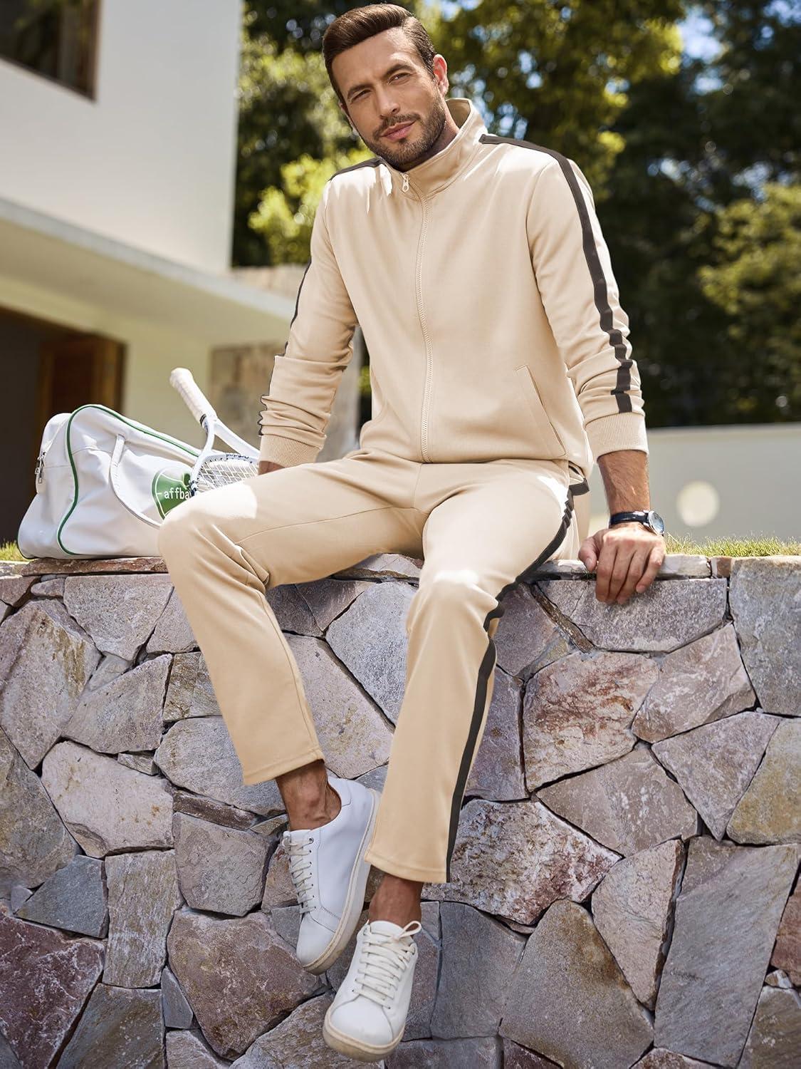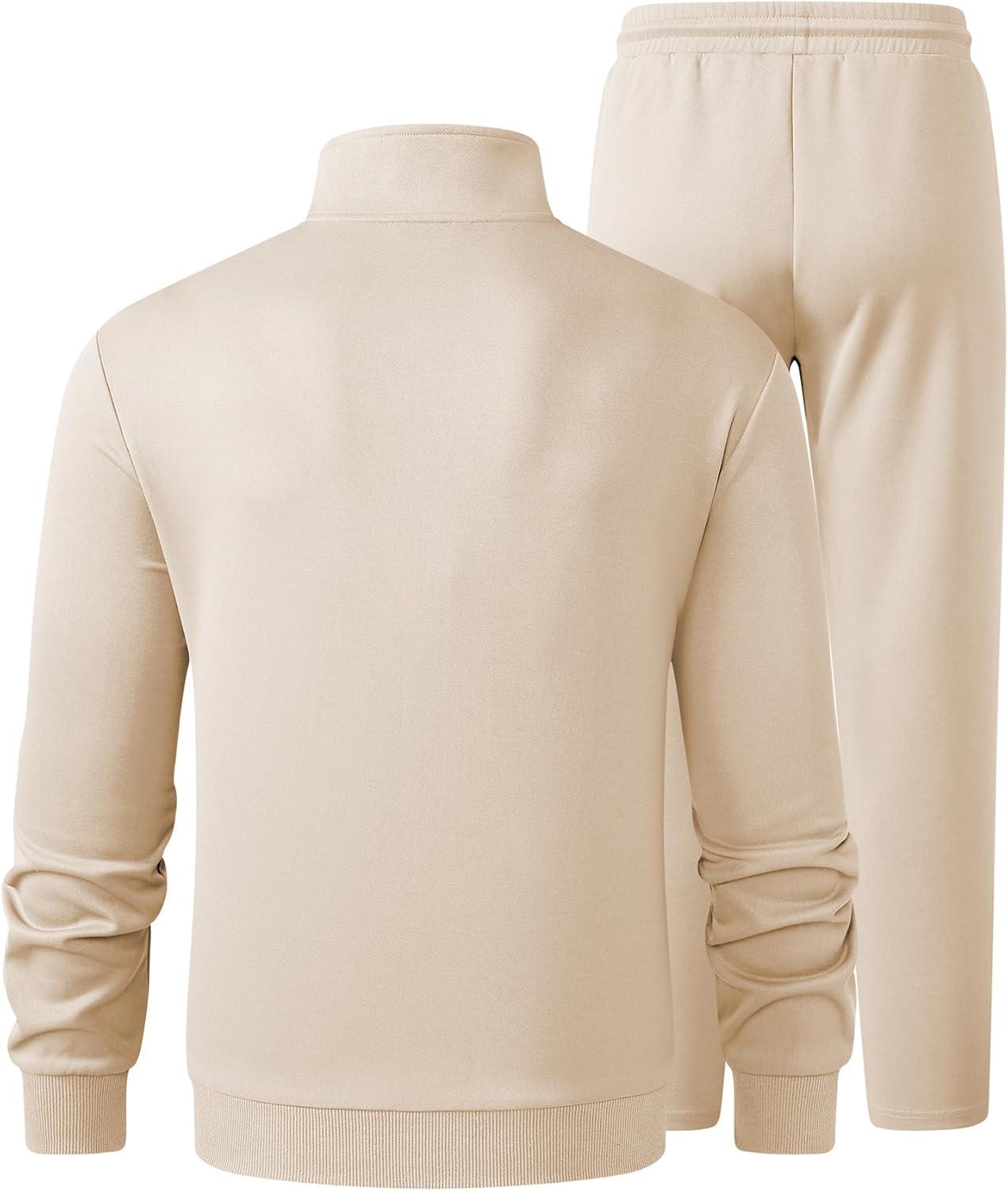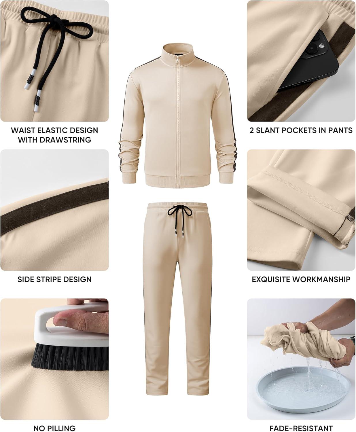 JMIERR Men’s Track Suits 2 Piece Full Zip Sports Outfits Set Sweatshirt and Joggers Sweatpants(Beige)