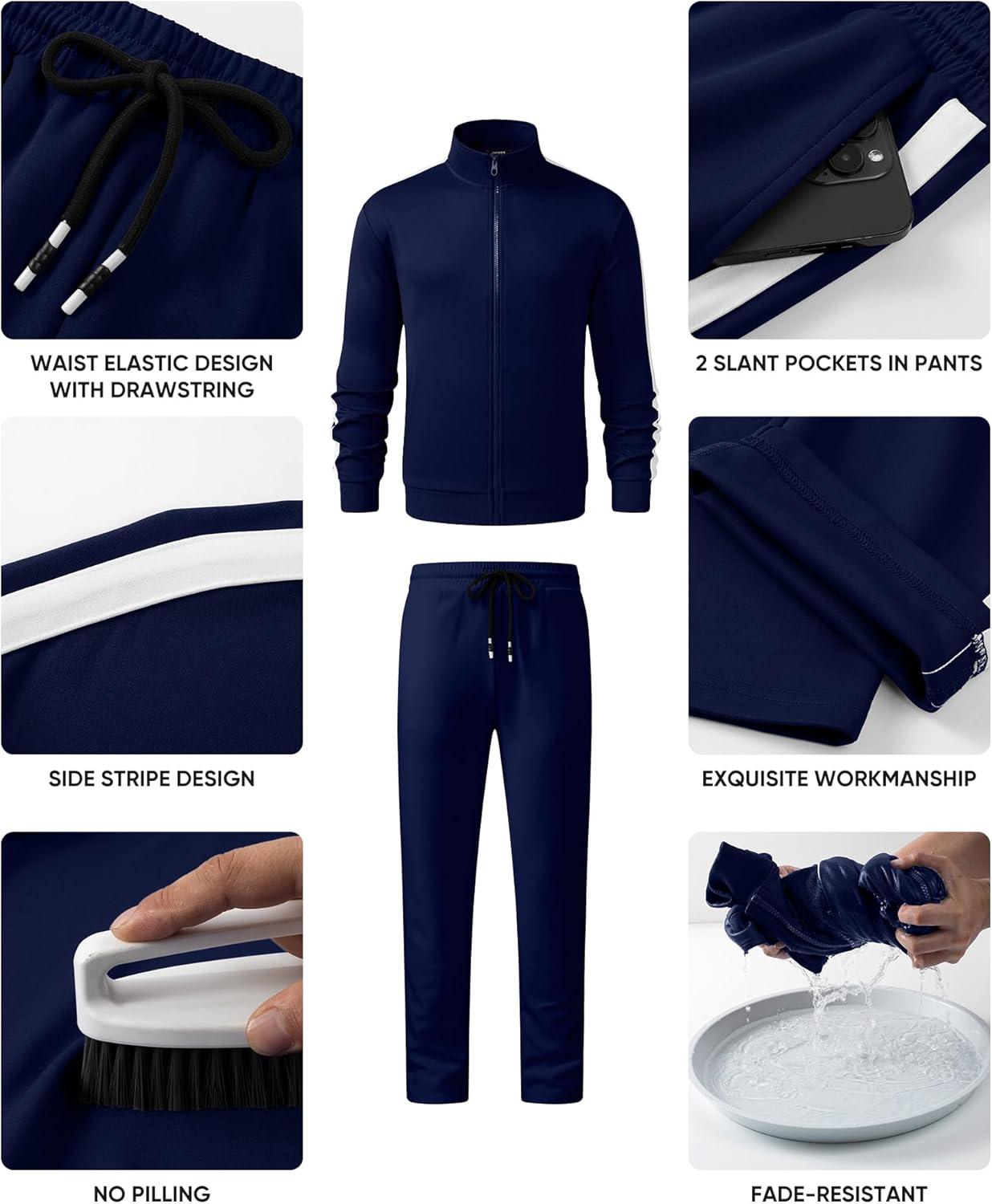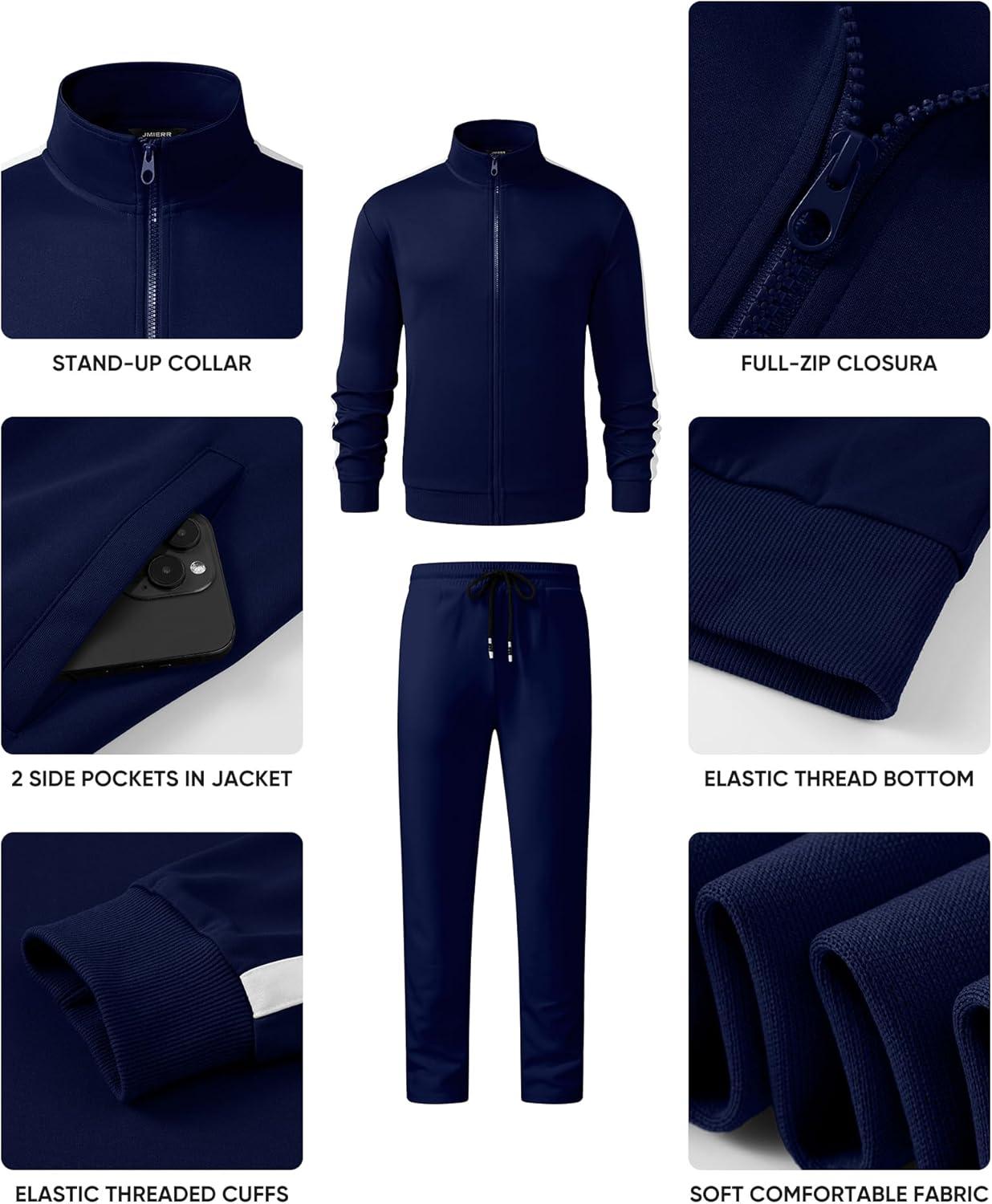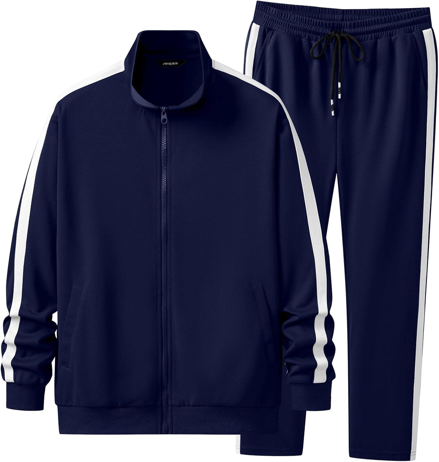 JMIERR Men’s Track Suits 2 Piece Full Zip Sports Outfits Set Sweatshirt and Joggers Sweatpants(Navy Blue)