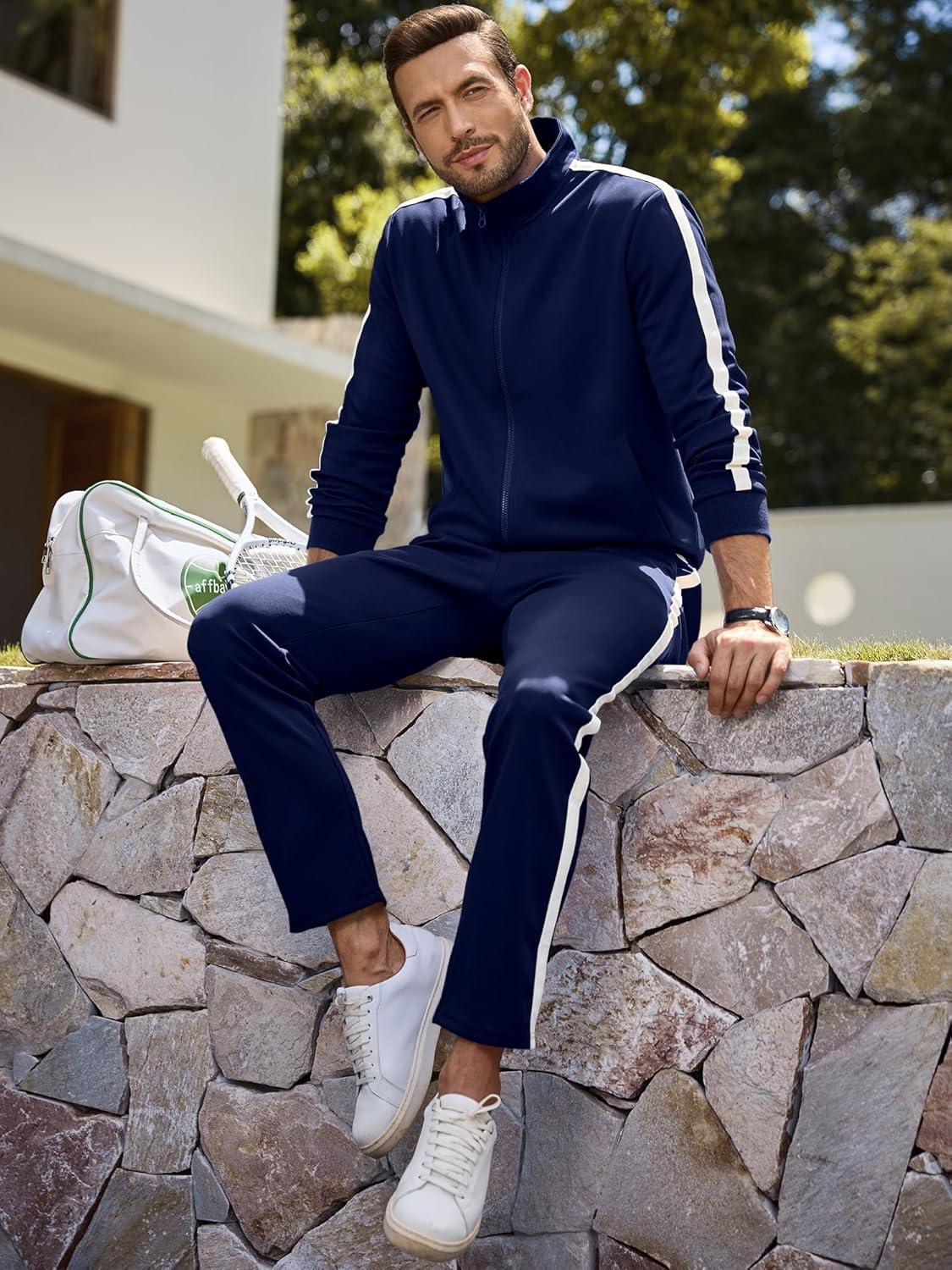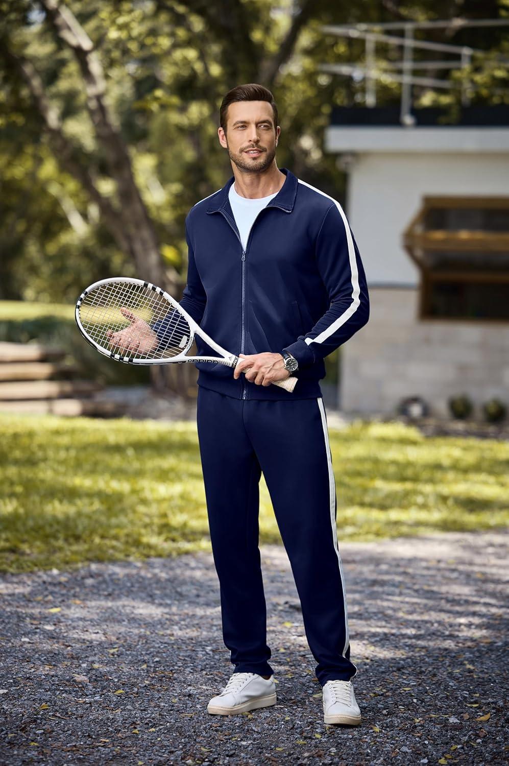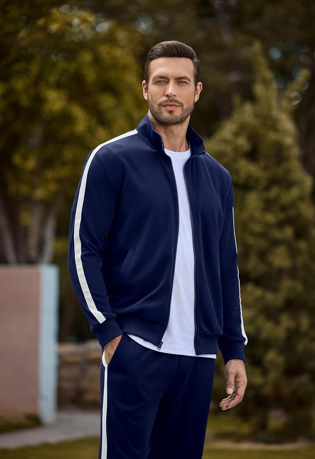 JMIERR Men’s Track Suits 2 Piece Full Zip Sports Outfits Set Sweatshirt and Joggers Sweatpants(Navy Blue)