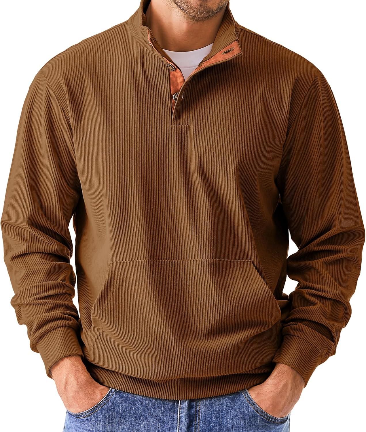 Our holiday sale features the best deals on JMIERR Mens Warm Corduroy Sweatshirt Casual Stand Collar Quarter Fall Metal Button Pullover Sweaters Long Sleeve with Pockets(F Chestnut Brown) and accessories. Shop now and save!