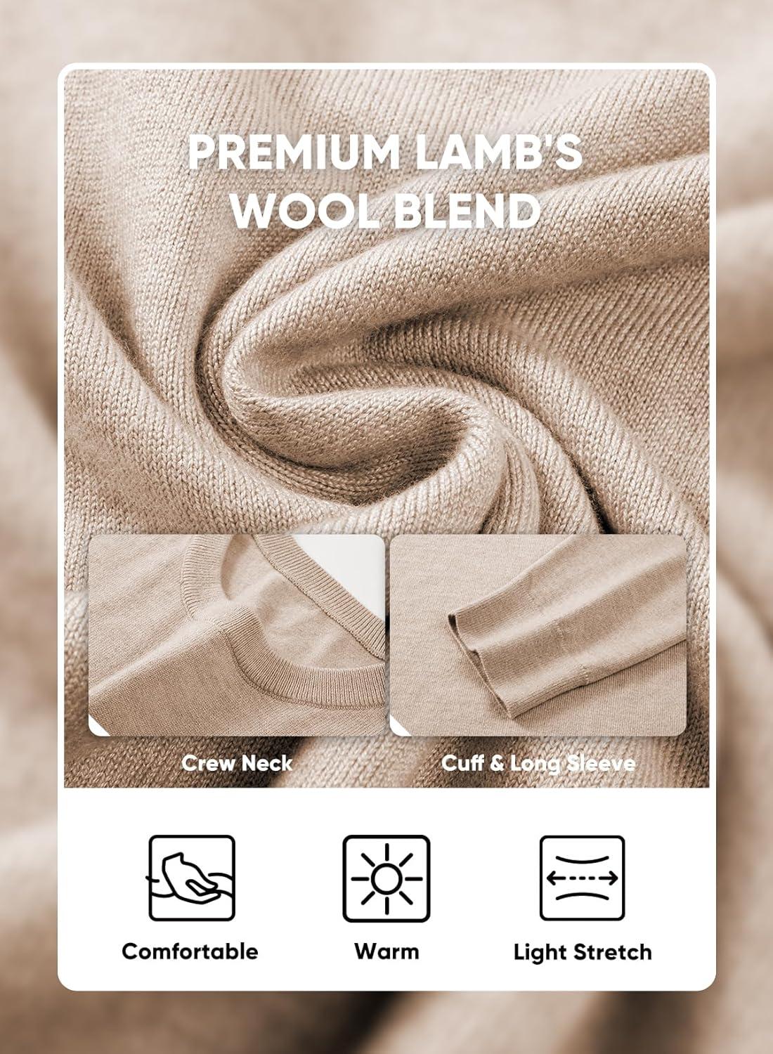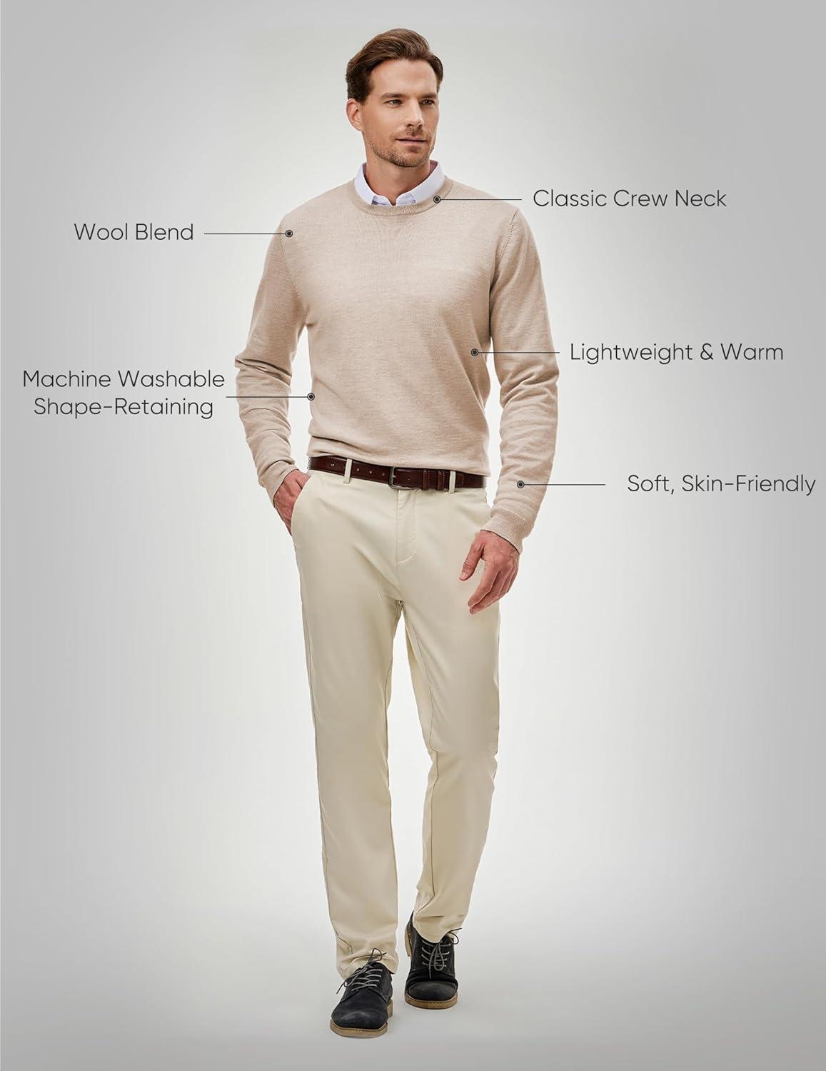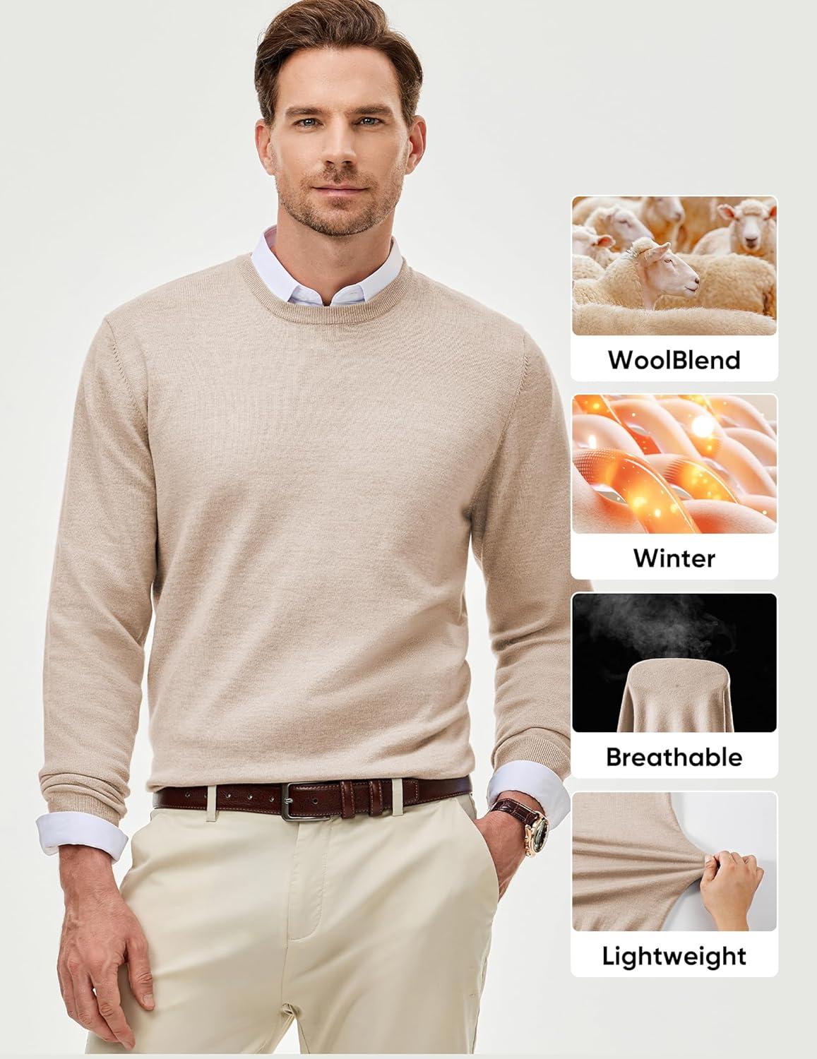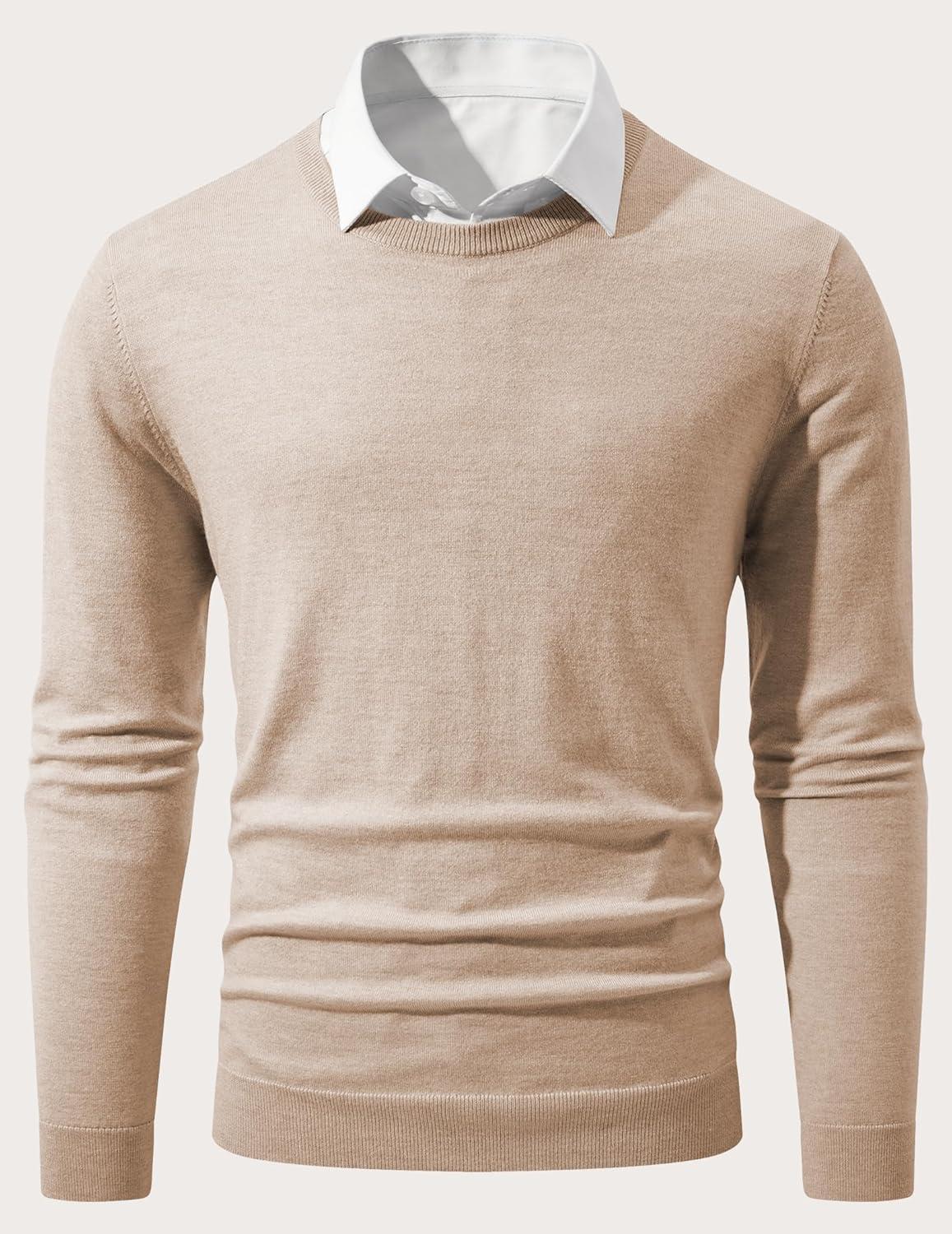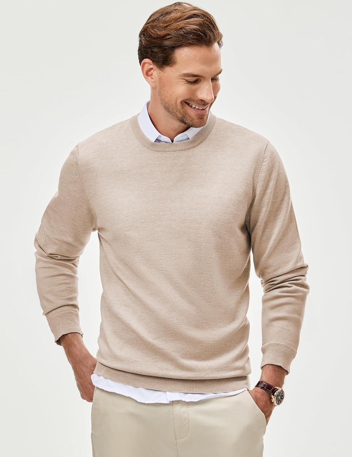 JMIERR Men’s Wool Blend Classic Crew Neck Casual Fall Sweaters(Beige)